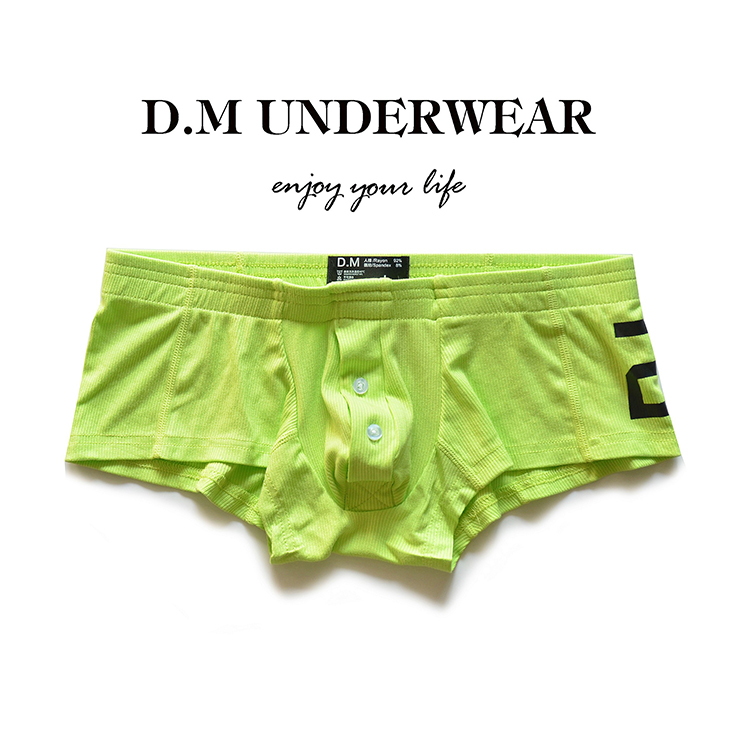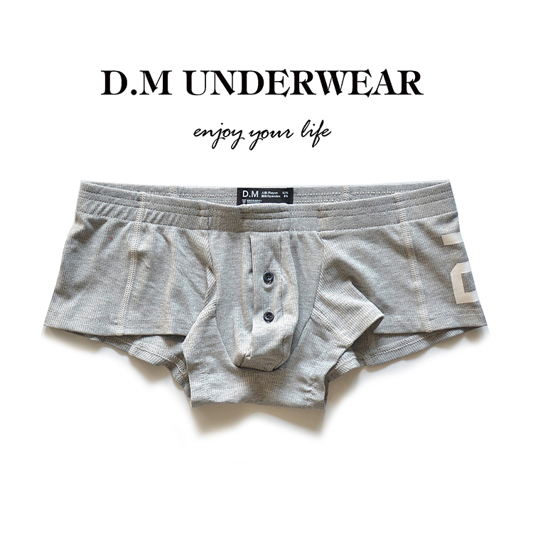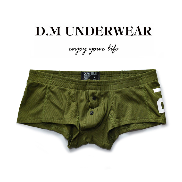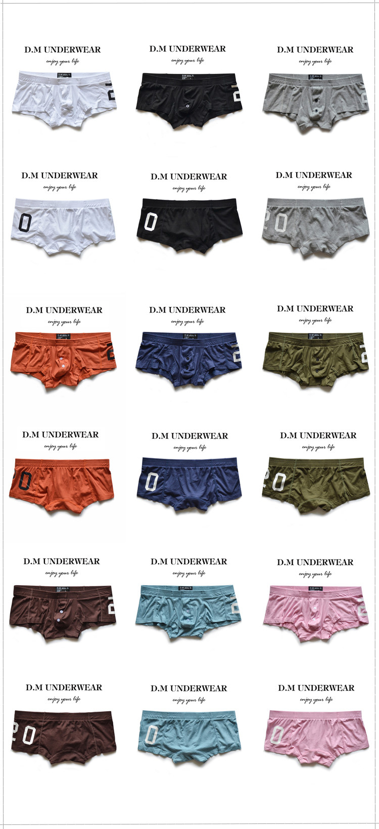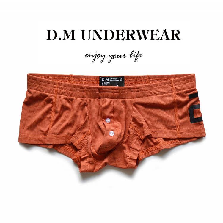 D.M男の下着のセクシーな純色のモーダル人の綿の平角の四角のズボンのボタンの激凸の袋のアルファベットの20ねじ
