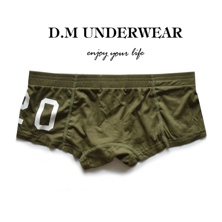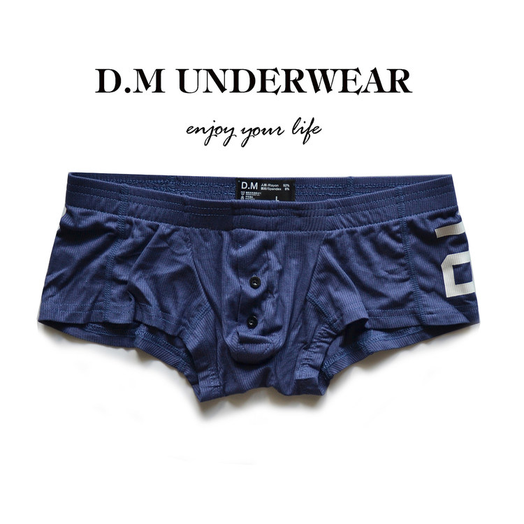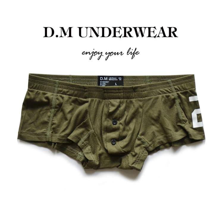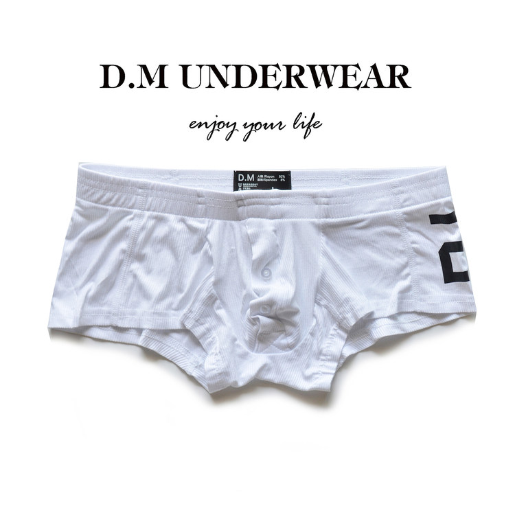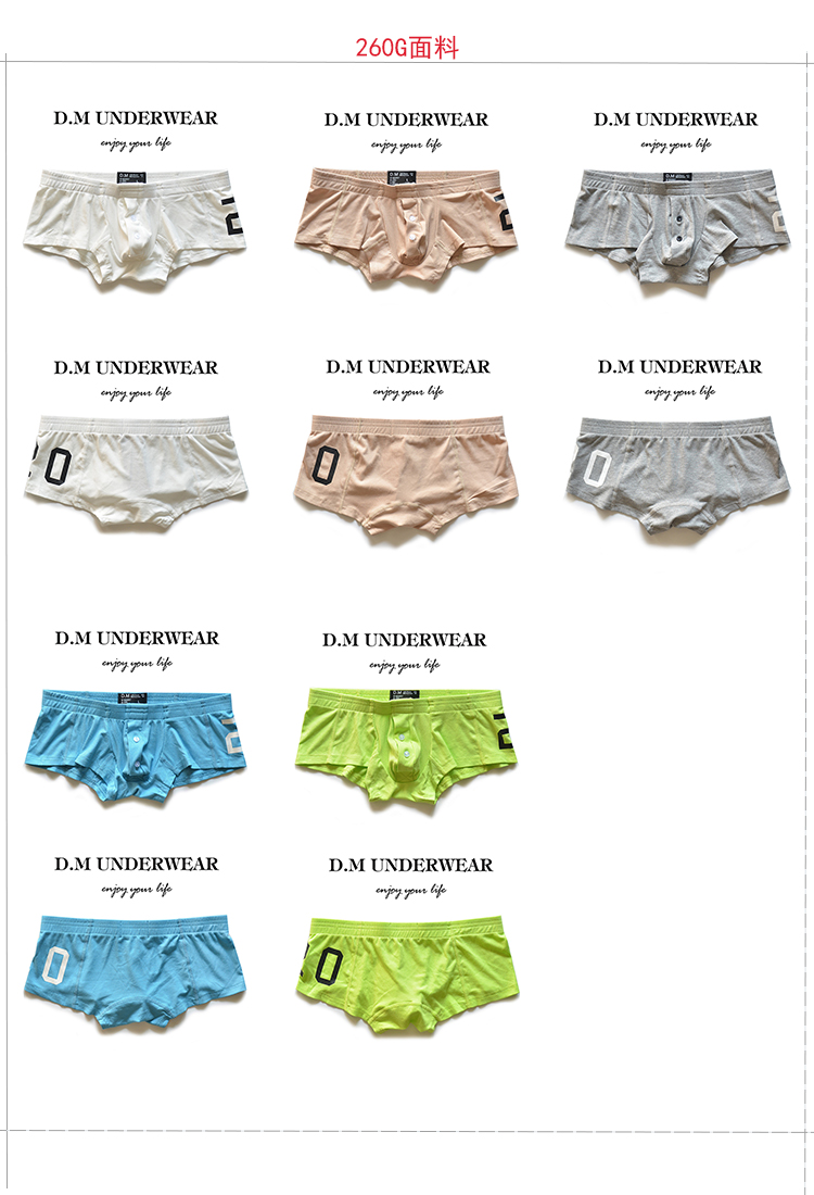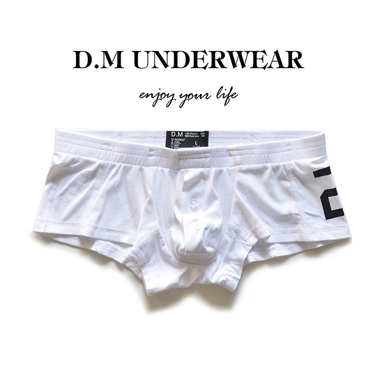 D.M男の下着のセクシーな純色のモーダル人の綿の平角の四角のズボンのボタンの激凸の袋のアルファベットの20ねじ