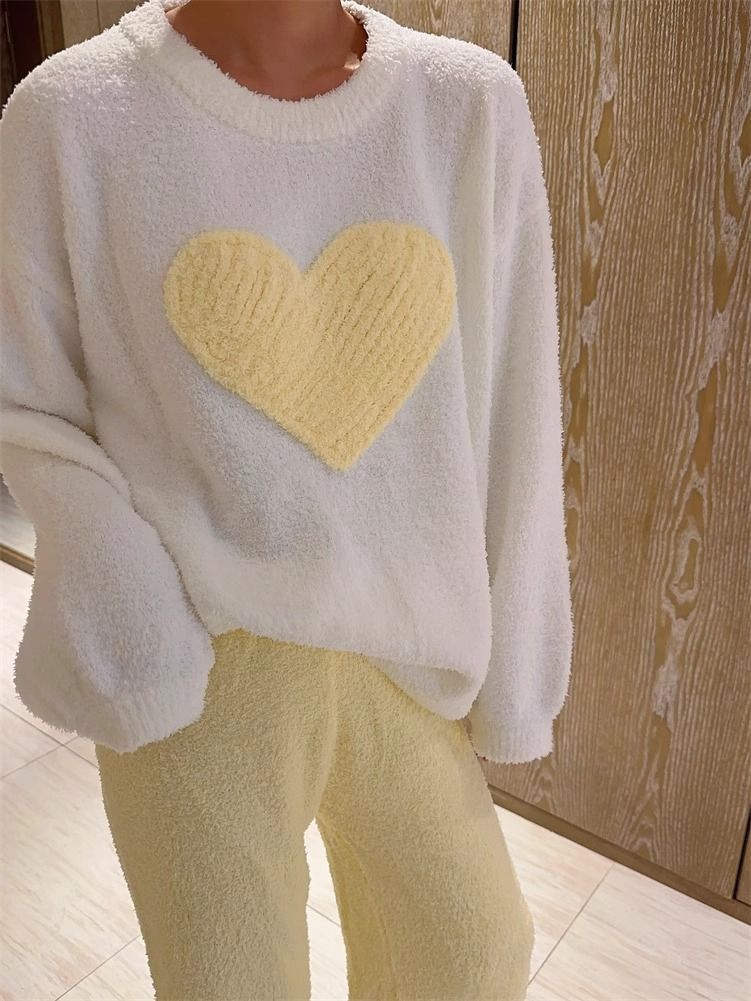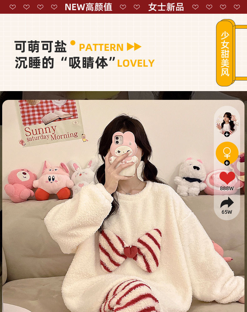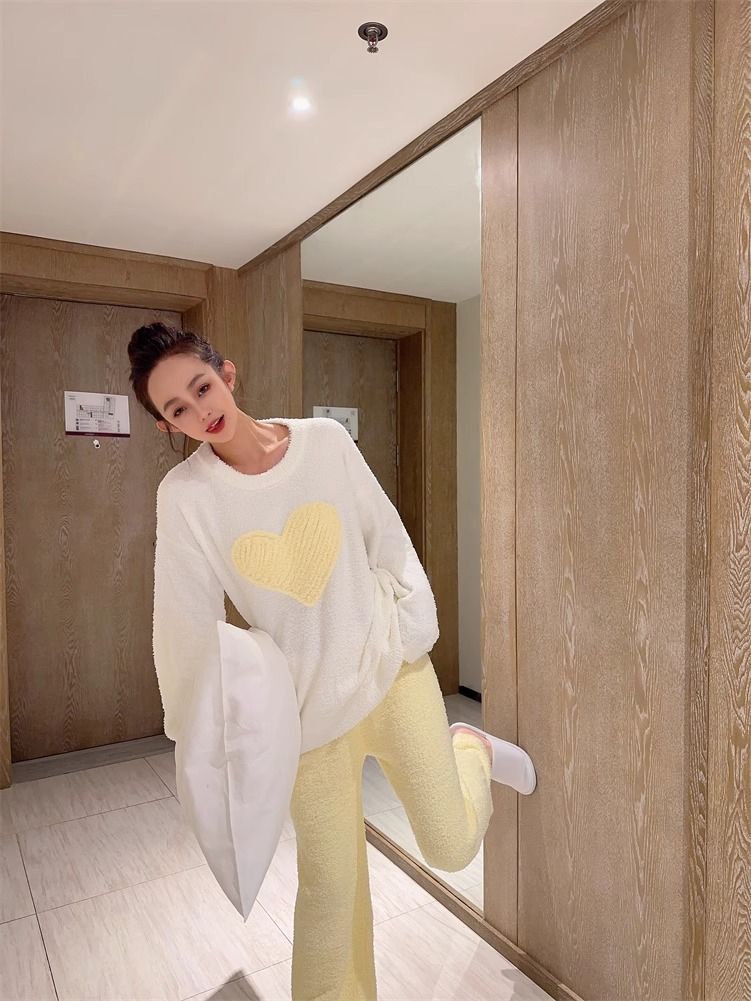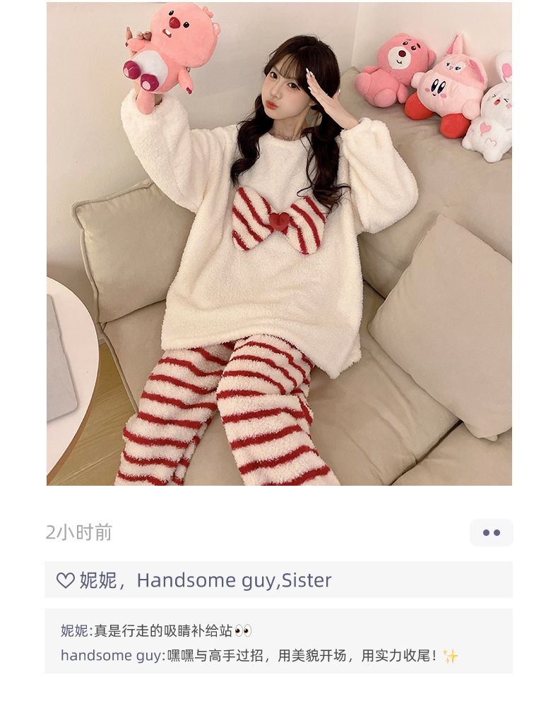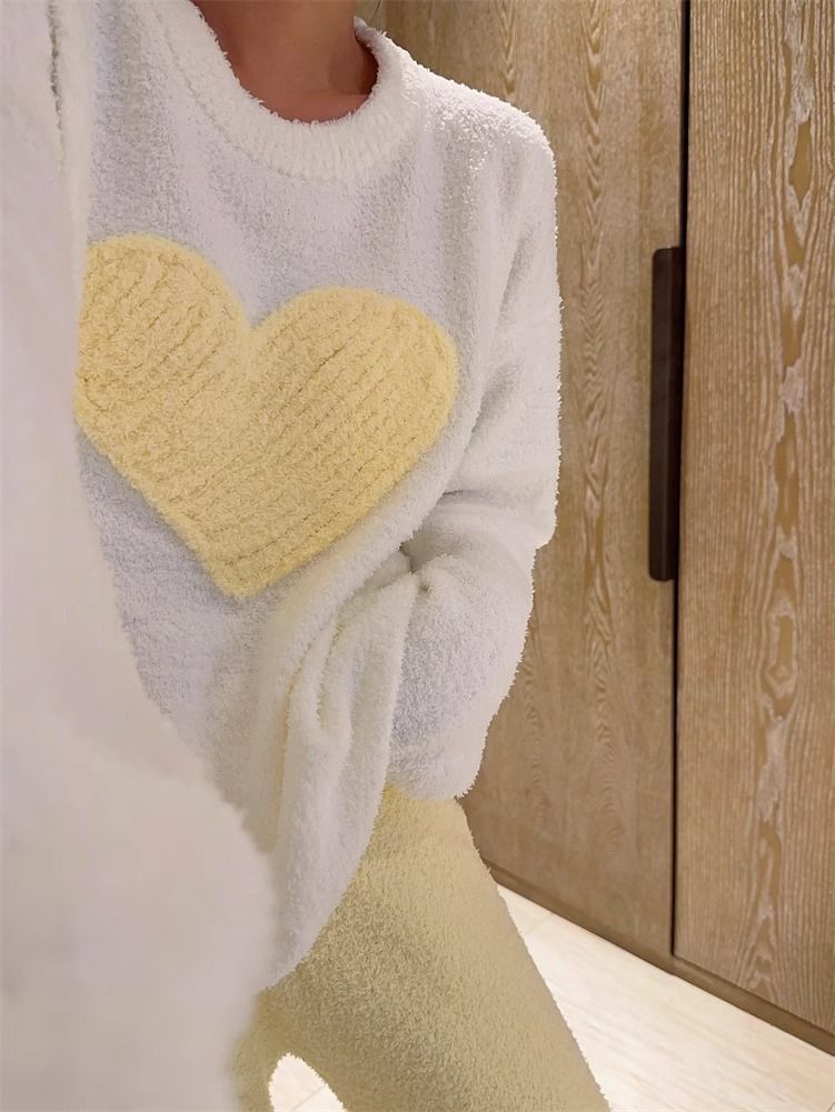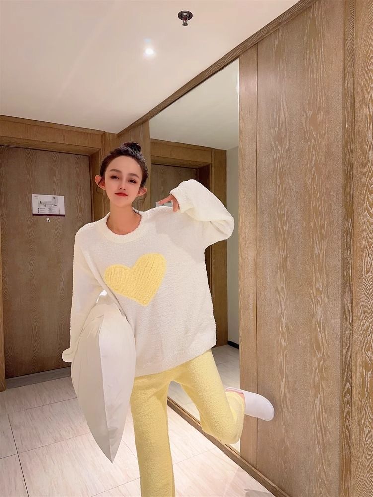 ハート型のサンゴのパジャマの女性の冬の厚いベルベットの保温の甘い愛の高級感の大きいサイズの家庭服のスーツ