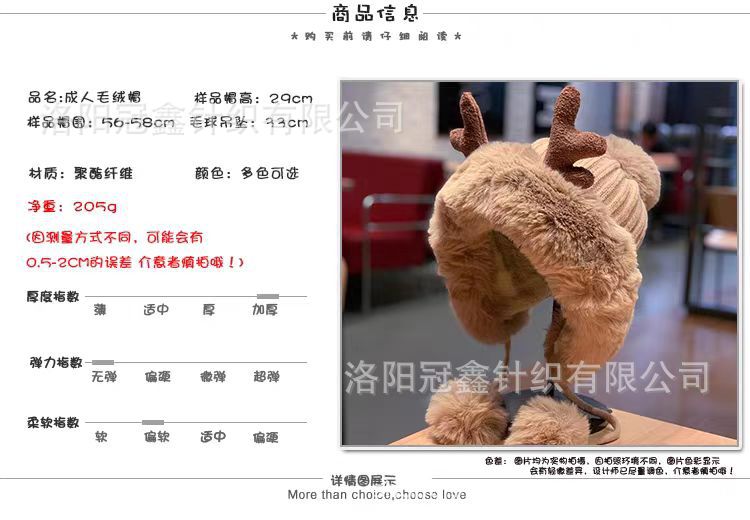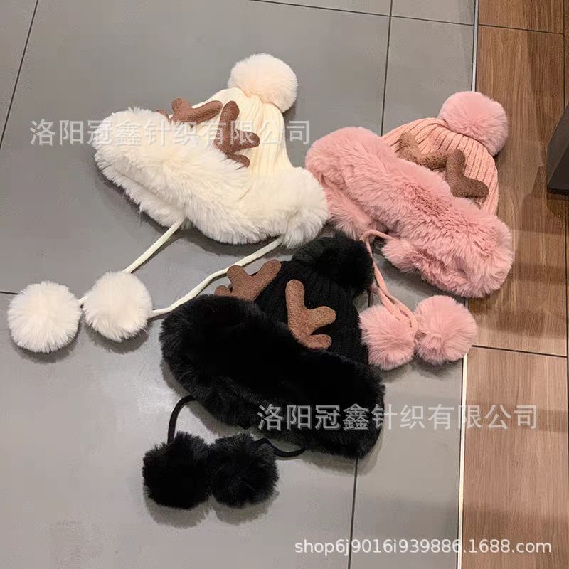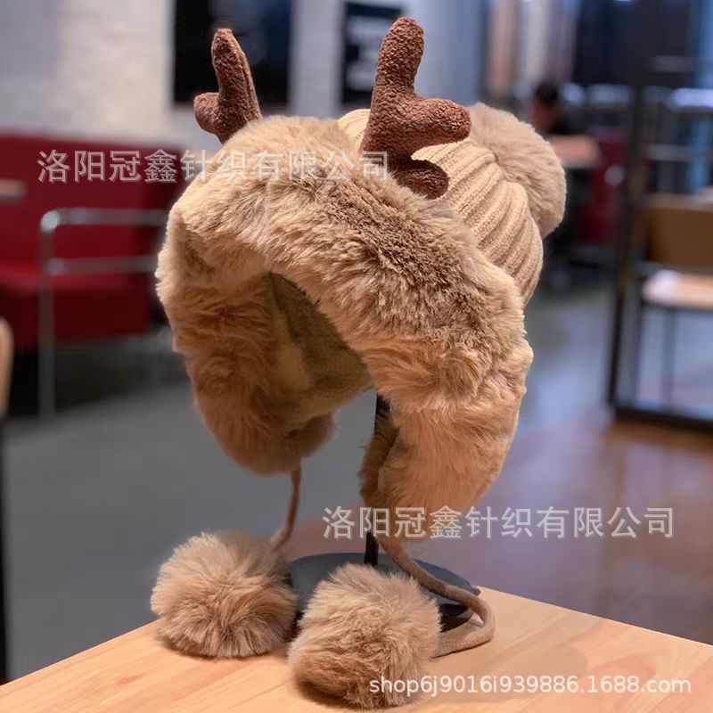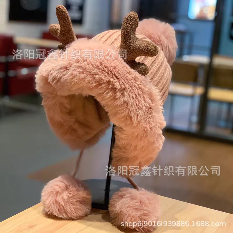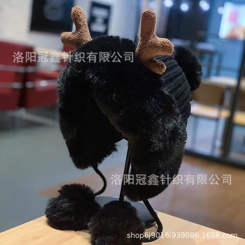 帽子女秋冬韩版可爱鹿角毛球护耳毛绒帽圣诞加厚东北雷锋帽骑车帽