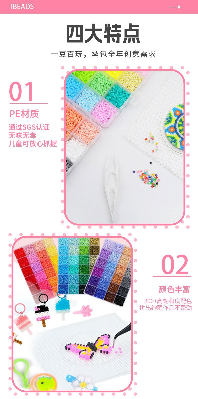 メーカー卸売り知育DIY手作り玩具2.6mm豆500g補充包融合豆全色包郵便