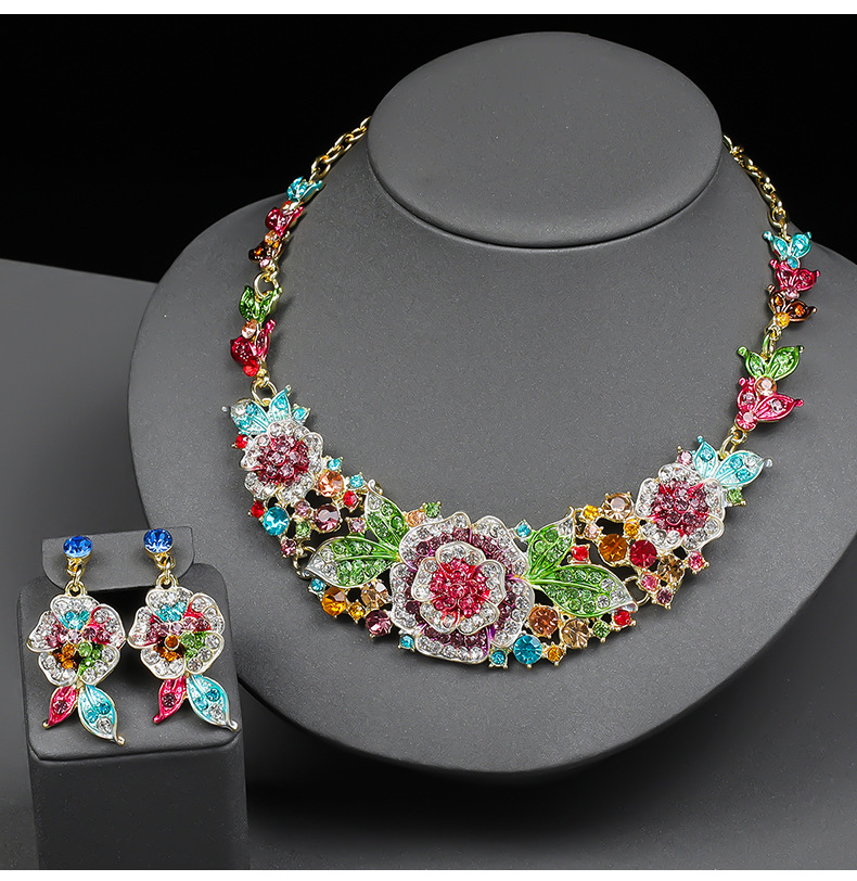 クロスボーダークロスボーダージュエリージュエリーローズフラワー誇張ネックレスイヤリングセットブライダルアクセサリーディナードレス装飾