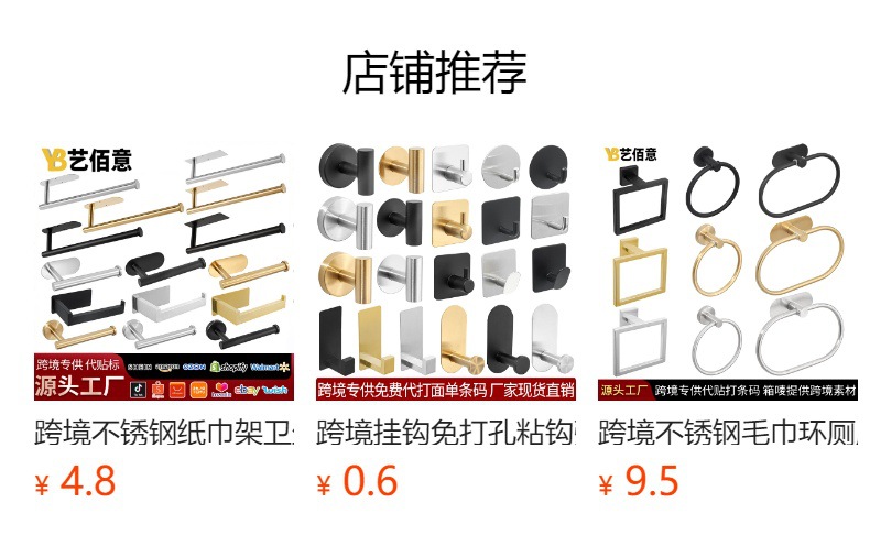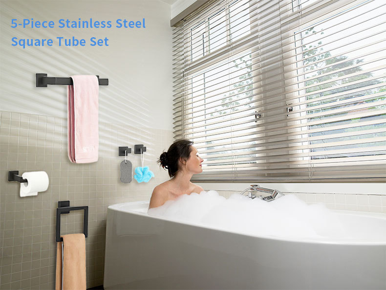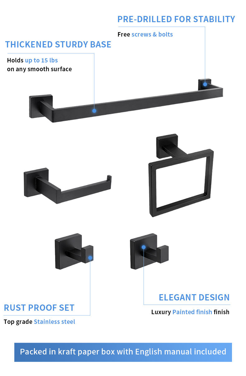 クロスボーダーステンレス鋼バスルームタオルラックバスタオルラックタオルバーバスルーム5点セットペンダントバスルーム角管セット