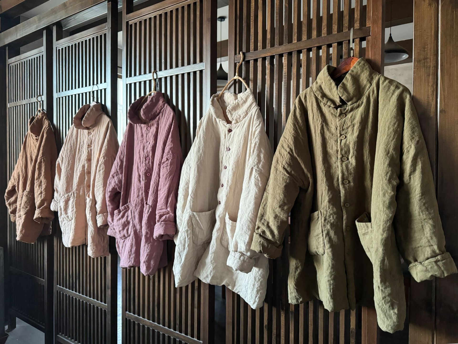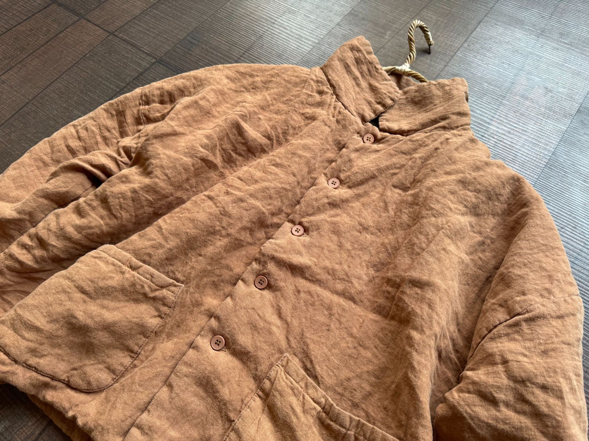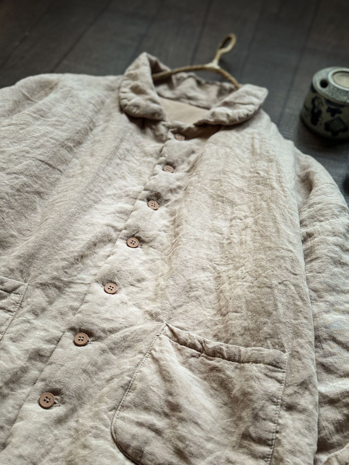 4389高品質砂洗亜麻女装綿服文芸レトロゆるい亜麻綿服の中の長さは綿の上着を挟んでいる