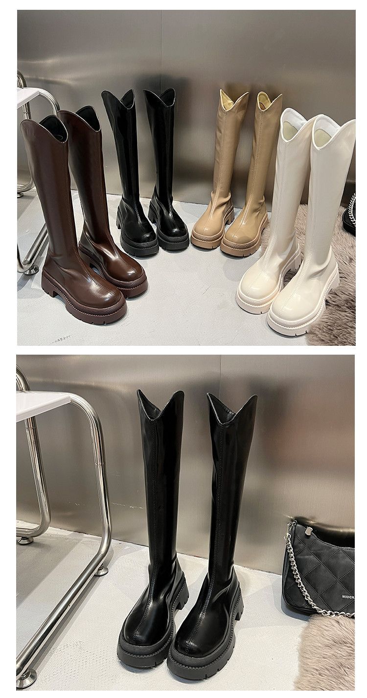 厚底ハイブーツ、白ロングブーツ、レディースブーツ、裏起毛、細身、チェルシーブーツ、騎士風ブーツ、マーティンブーツ、細ハイヒールロングブーツ