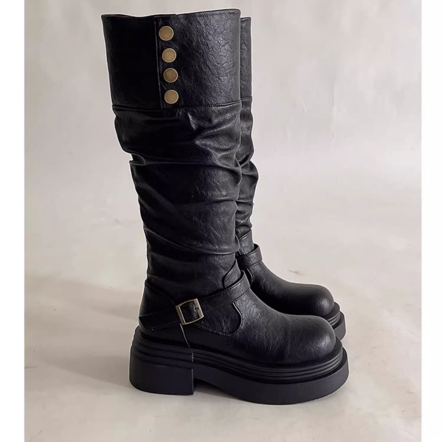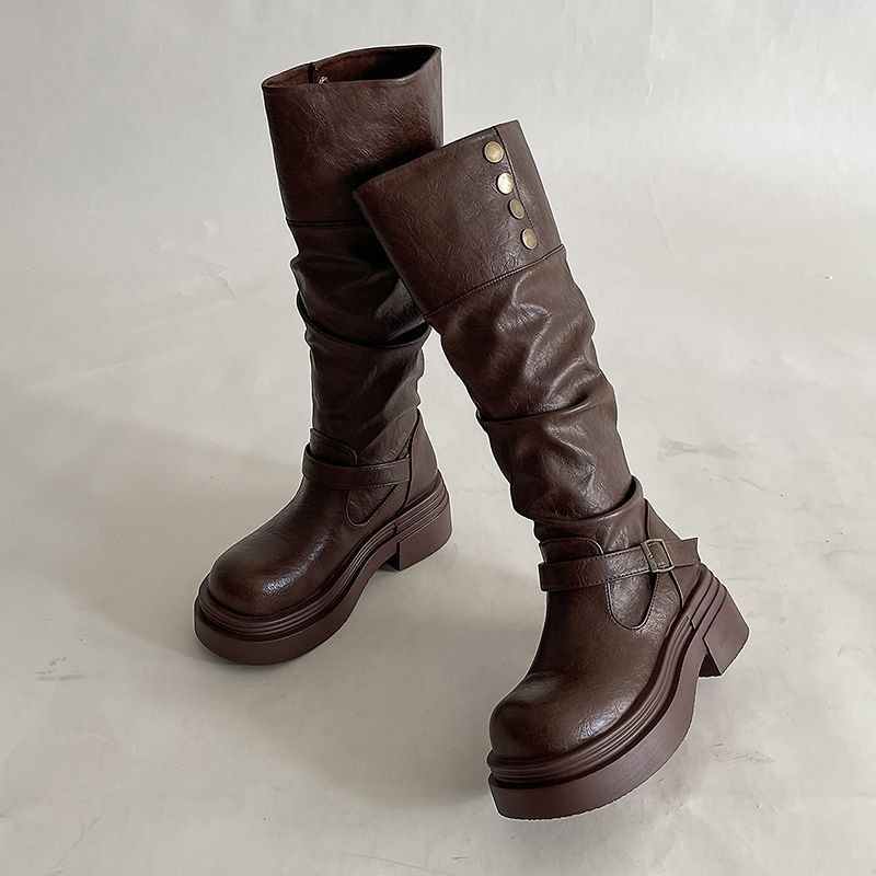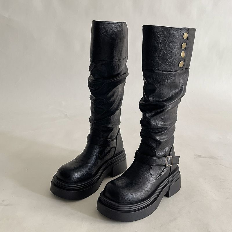 ウエスタンカウボーイ風ウェイストランドスタイルロングブーツ レディース 2025秋冬新作 厚底パイルブーツ ツーウェイライダーブーツ