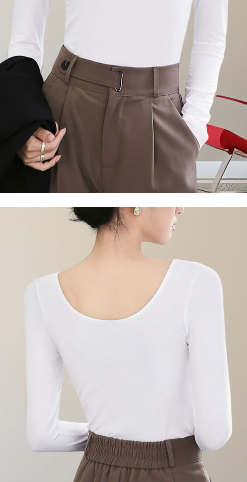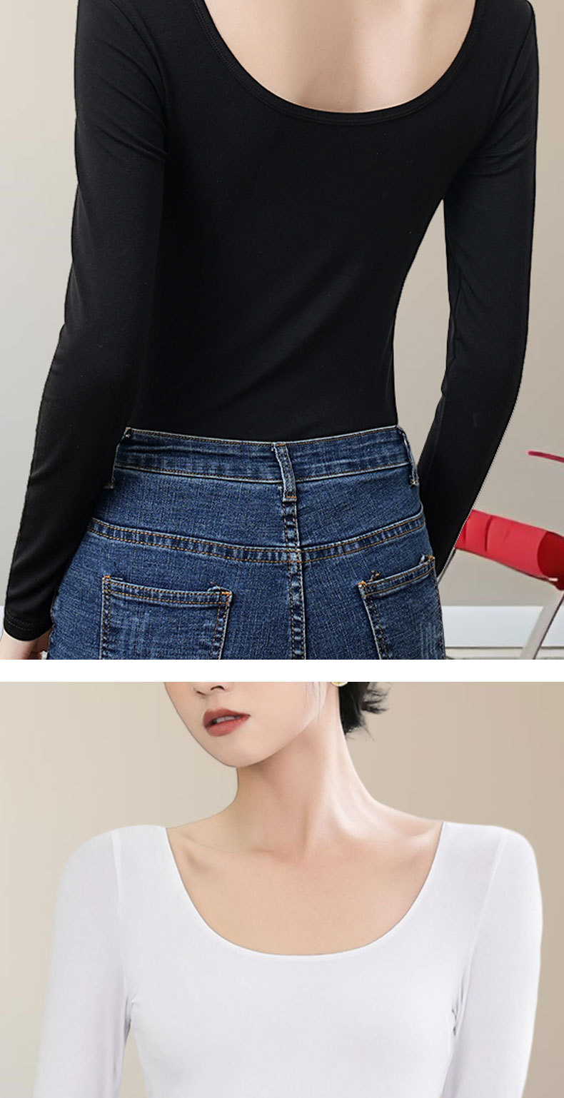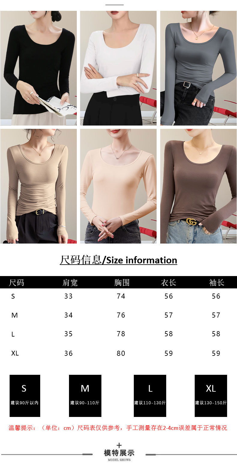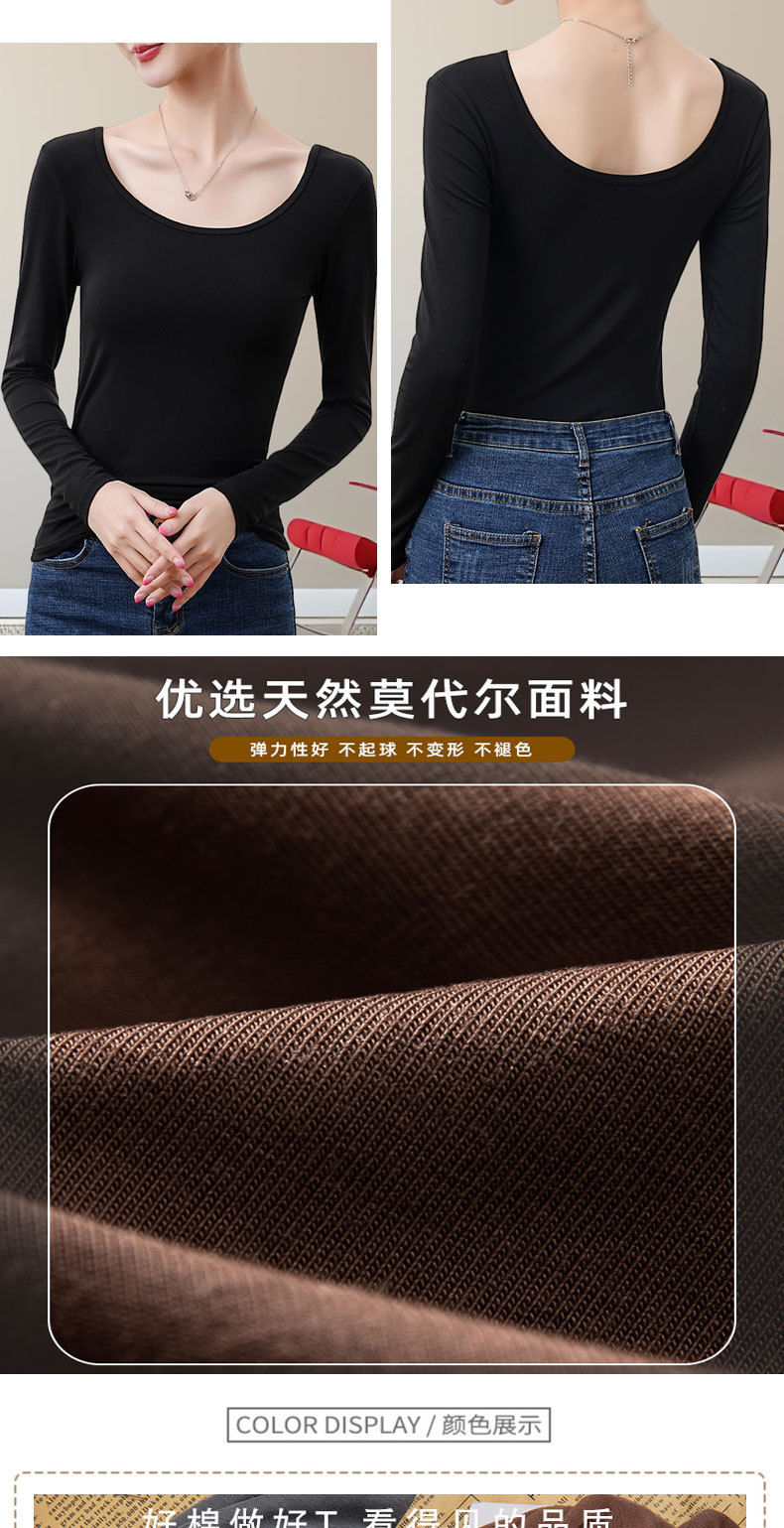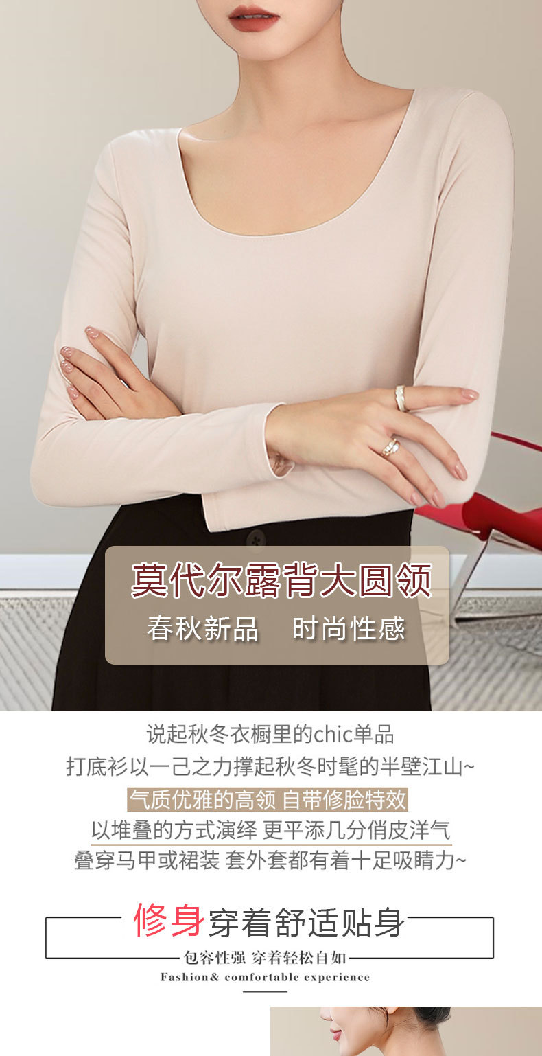モーダルの低襟の底のシャツの女性の春と秋冬の内は丸首の長袖のtシャツの薄い金の修身の保温の上着の新型を掛けます。