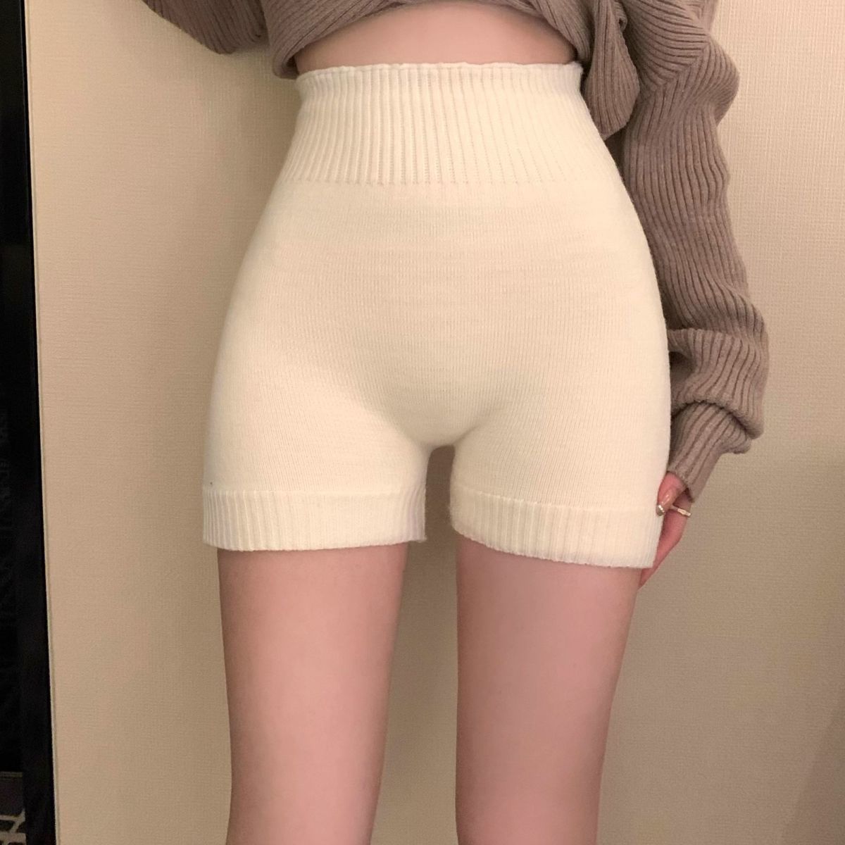 2024冬の新型韓系防走光百合安全ズボン保温半ズボンニット高腰底ズボン女装