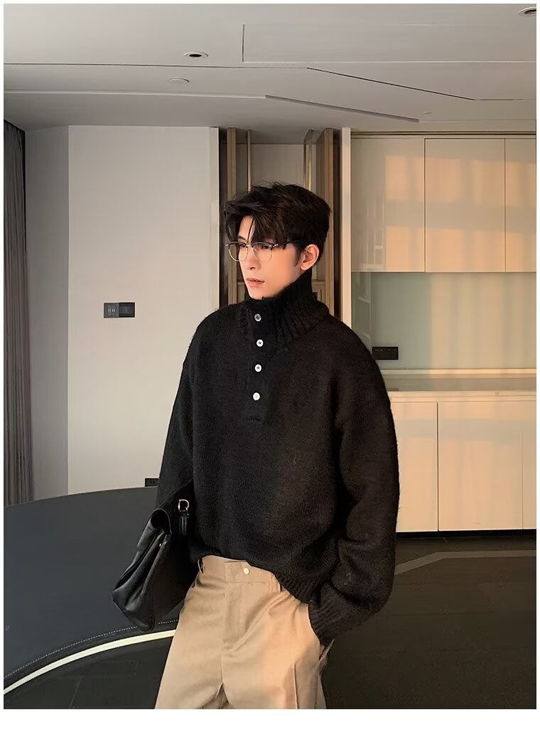 2025新型男性高襟セーター秋冬ニット男韓系ゆるいファッションブランドのカーディガン上着セーター