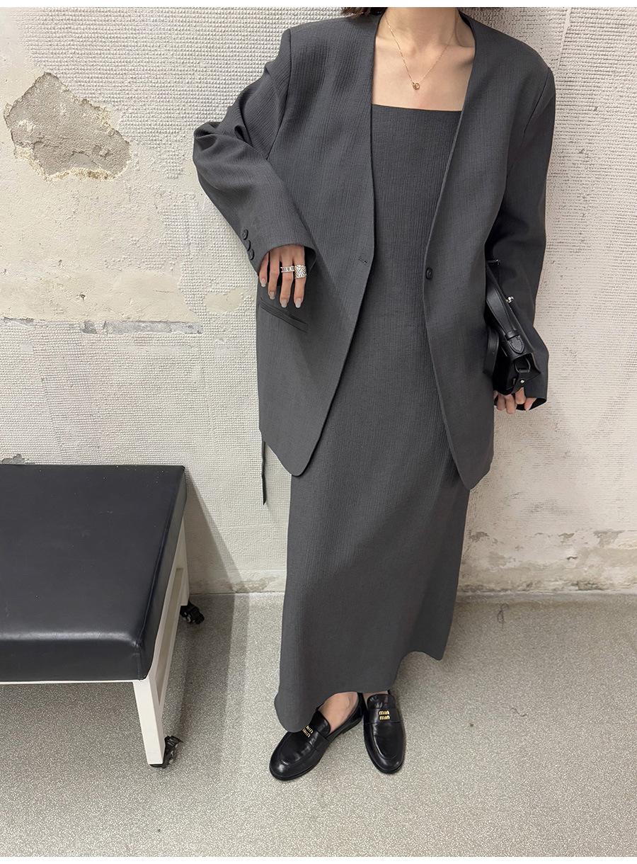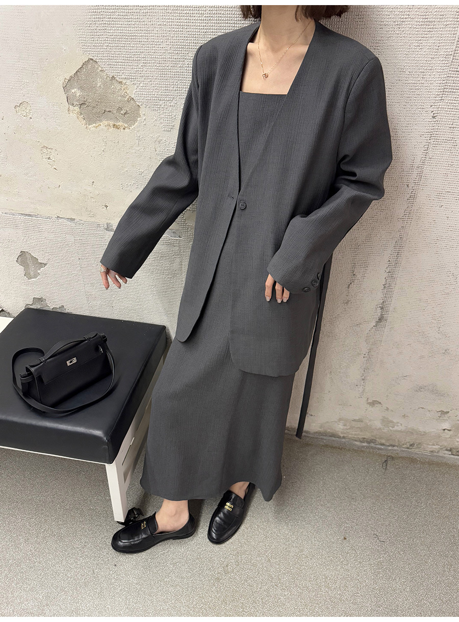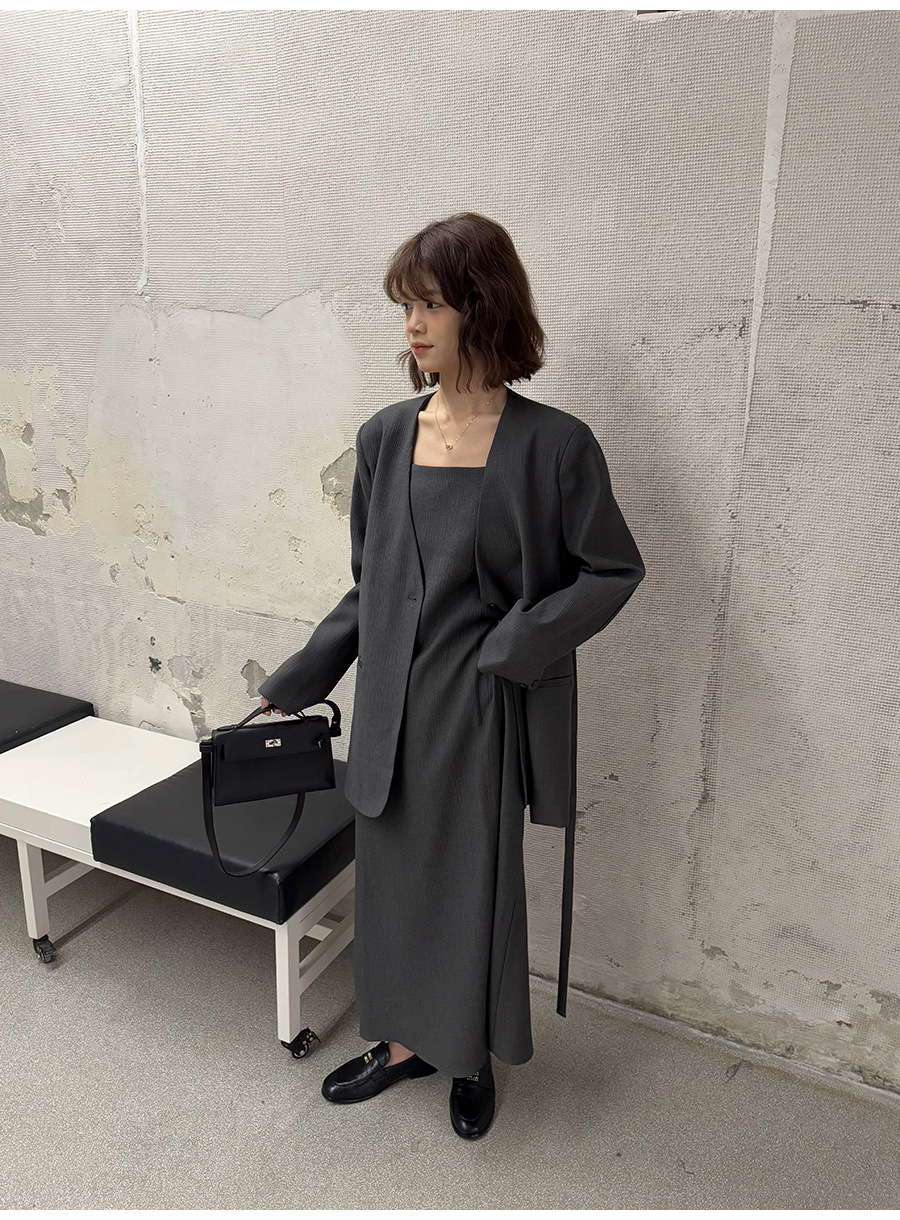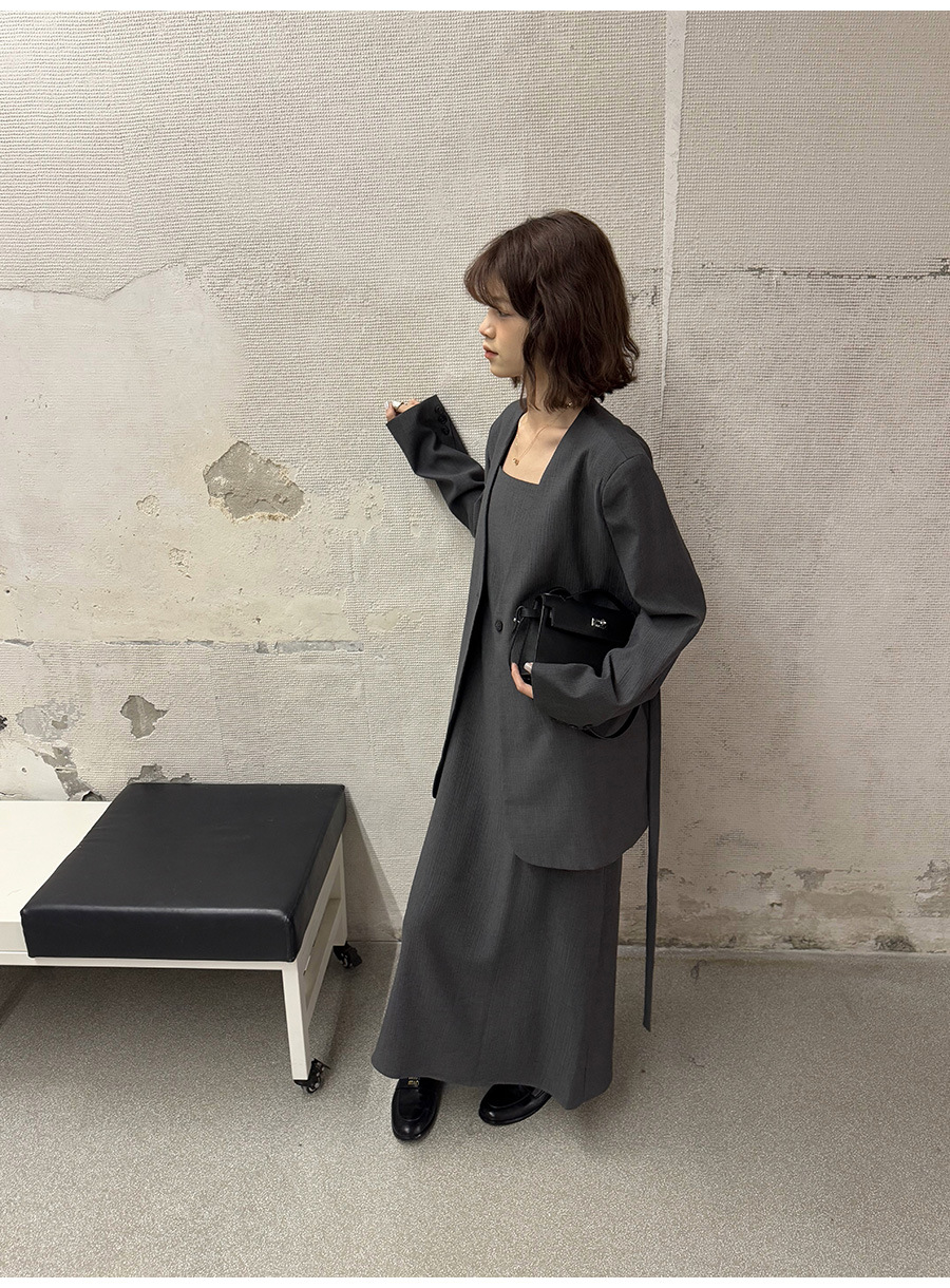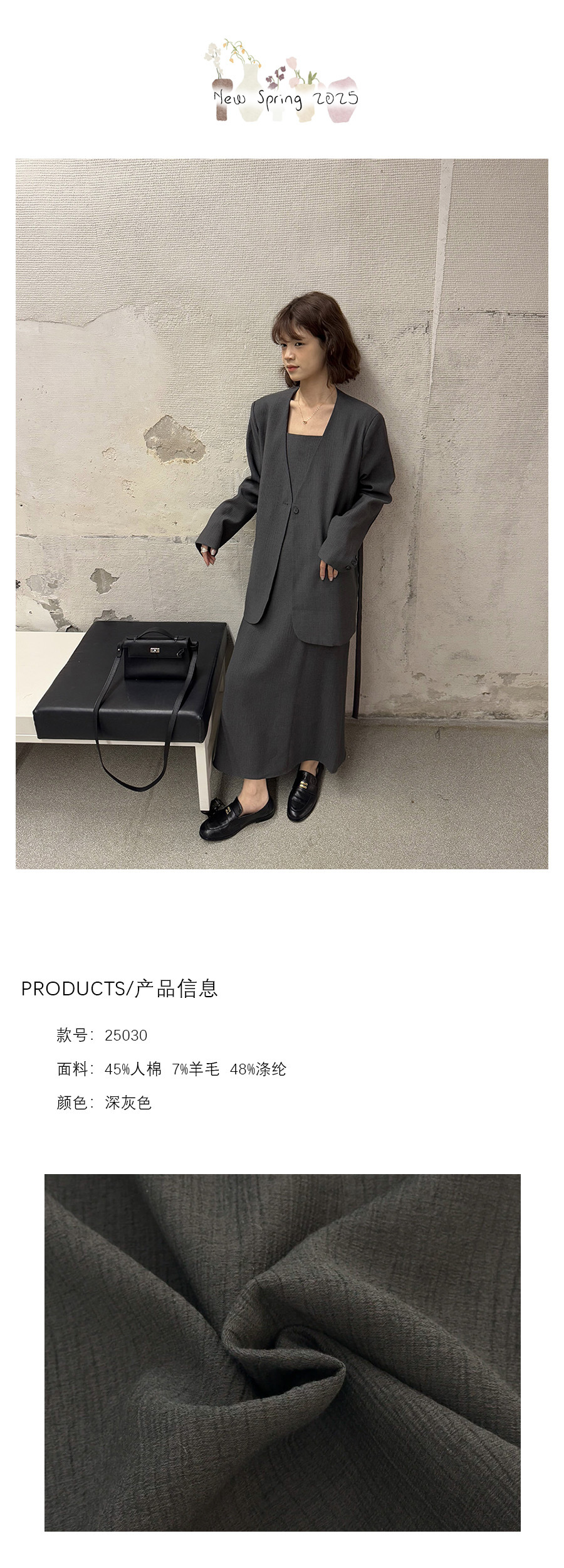 黎諾の早春の新型のスーツのコートのサスペンダーのスカートの2つのセットの女性の2025韓国版の灰色のファッションの気質のスーツ