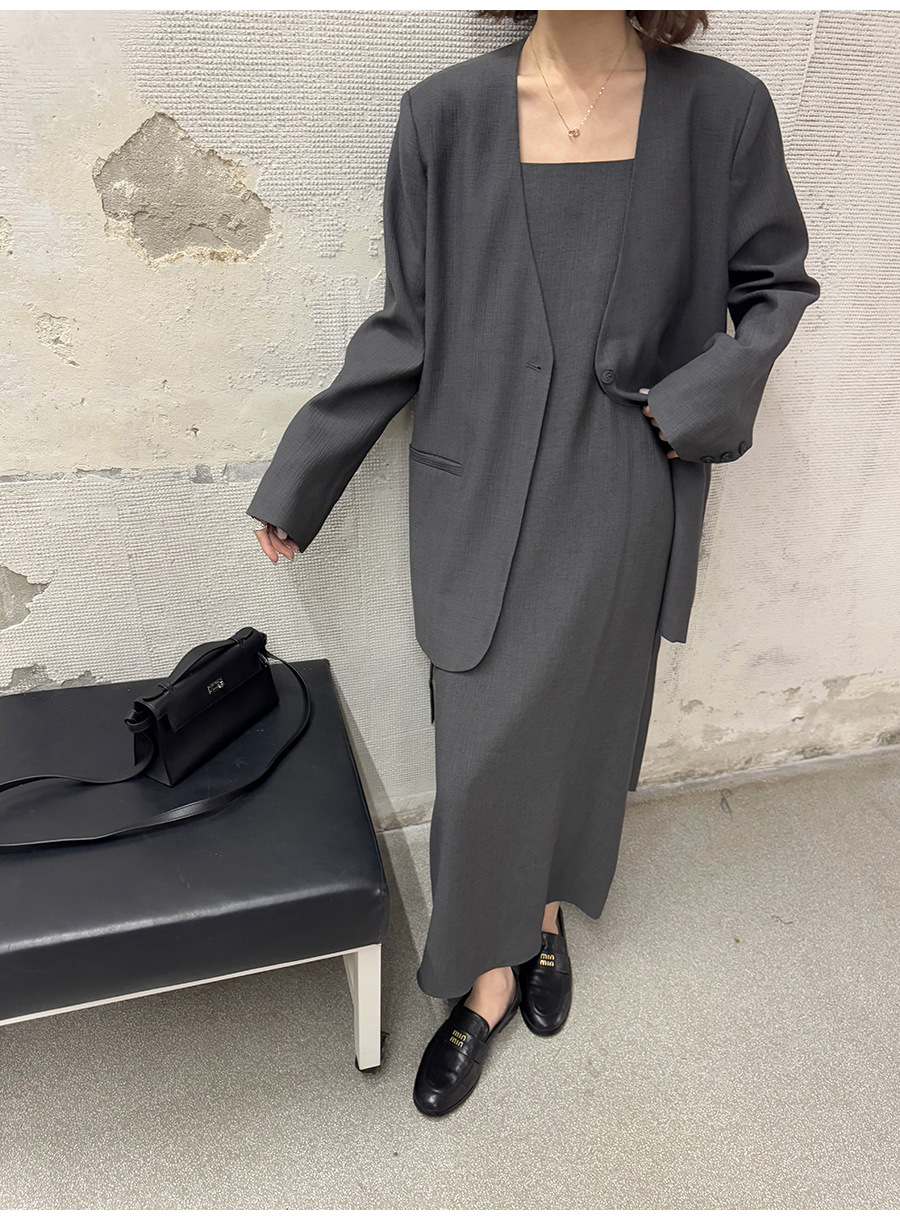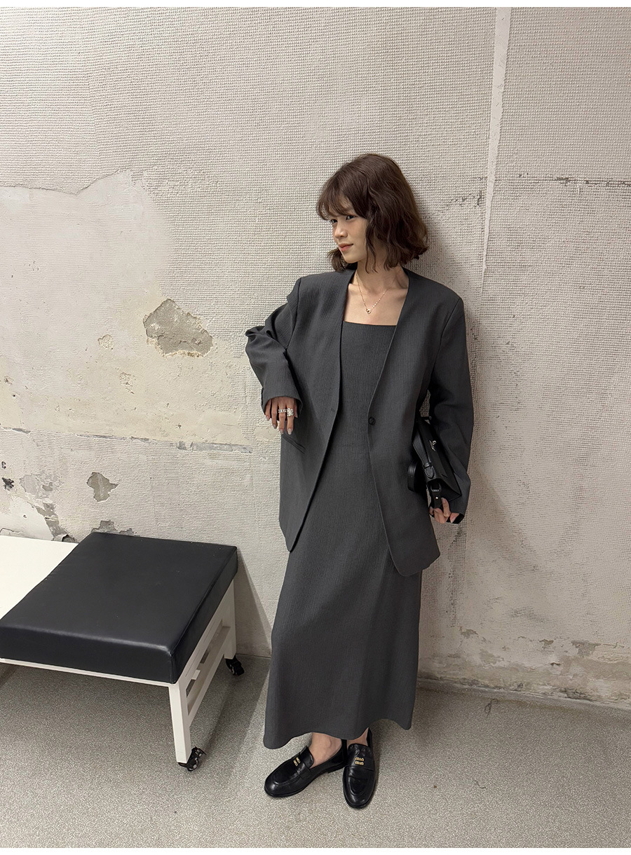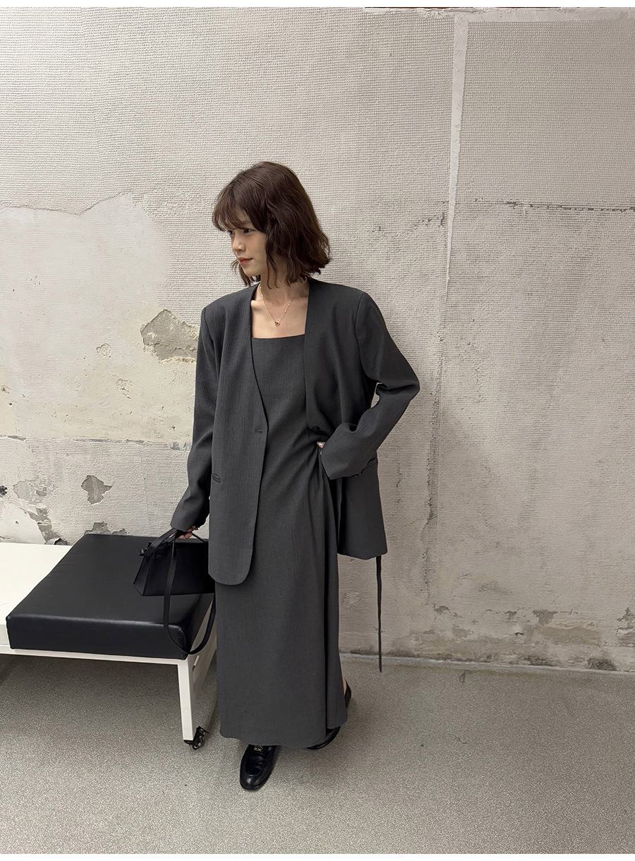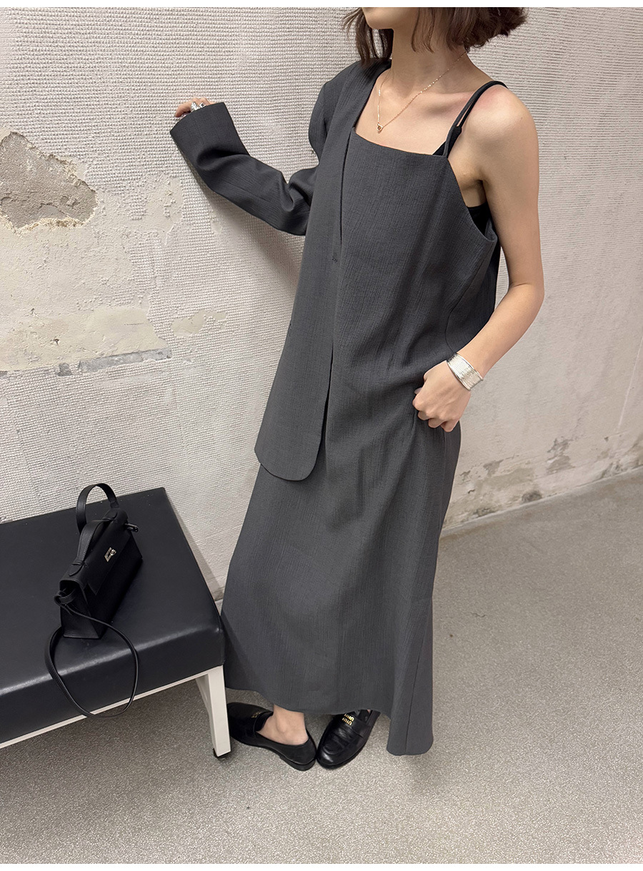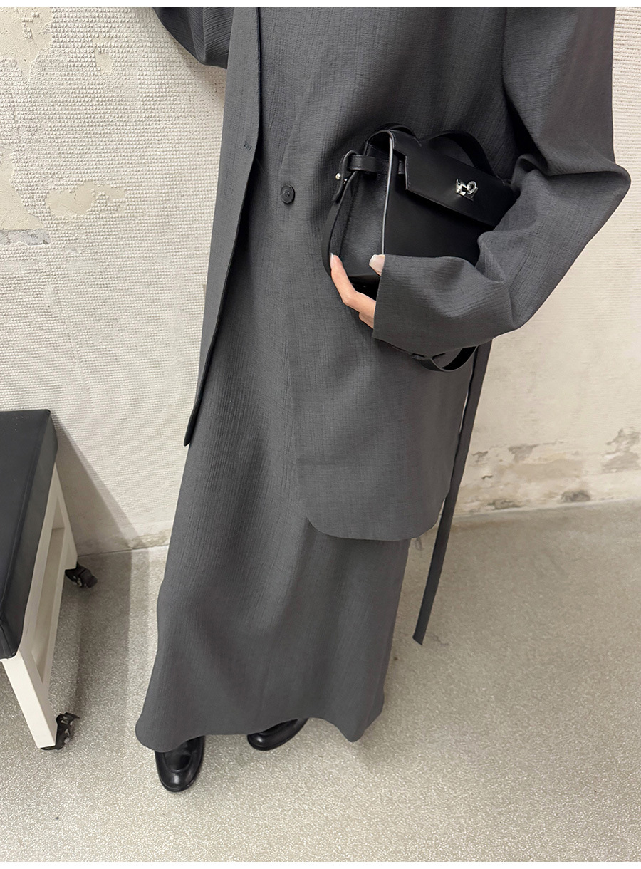 黎諾の早春の新型のスーツのコートのサスペンダーのスカートの2つのセットの女性の2025韓国版の灰色のファッションの気質のスーツ