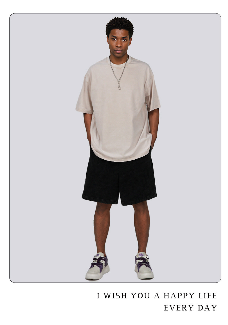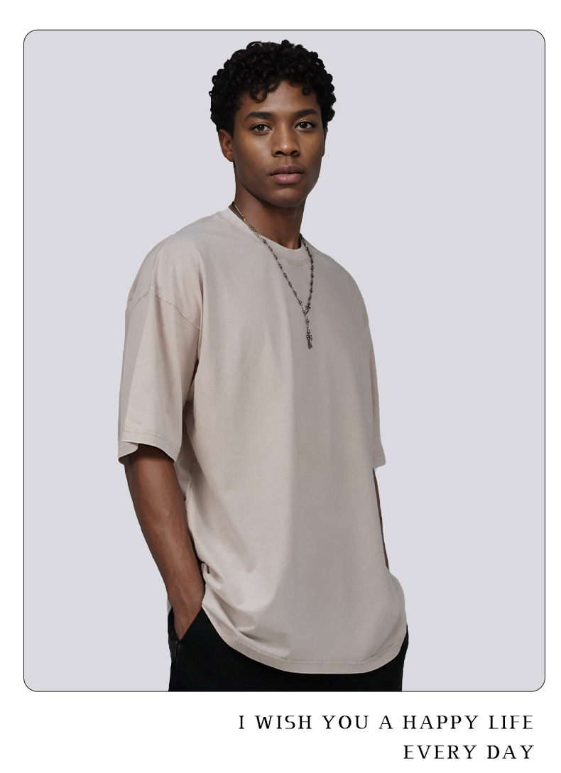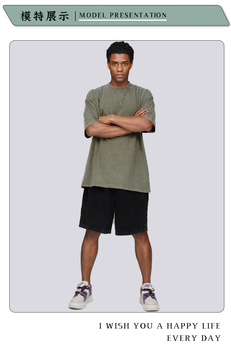 メンズ半袖メンズ Tシャツピュアコットンカジュアルヘビー 230 グラムバティックウォッシュ加工ルーズトップ卸売メンズ Tシャツ