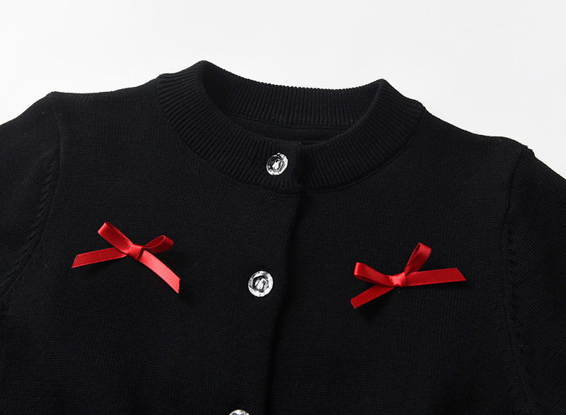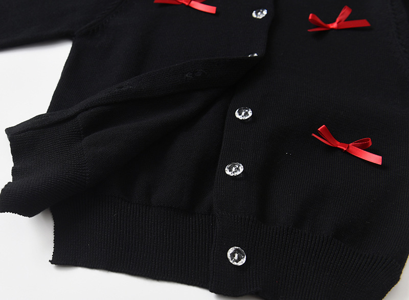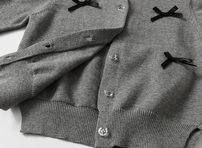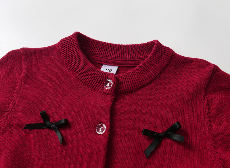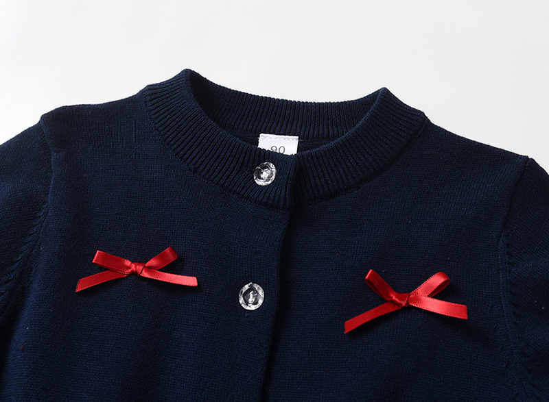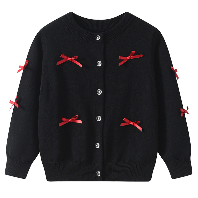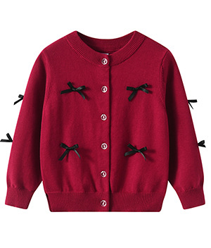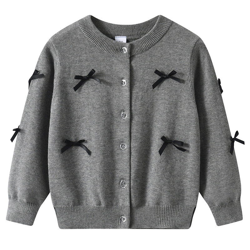 2025春秋蝶結びの女の子のセーターのカーディガンの子供服の純綿の洋風のニットの親子の中の大きい子供服
