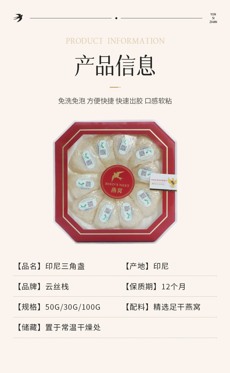 インドネシアの追跡源燕窩乾杯妊婦期金糸白三角燕杯CAIQ燕窩25/50/100gギフトボックス