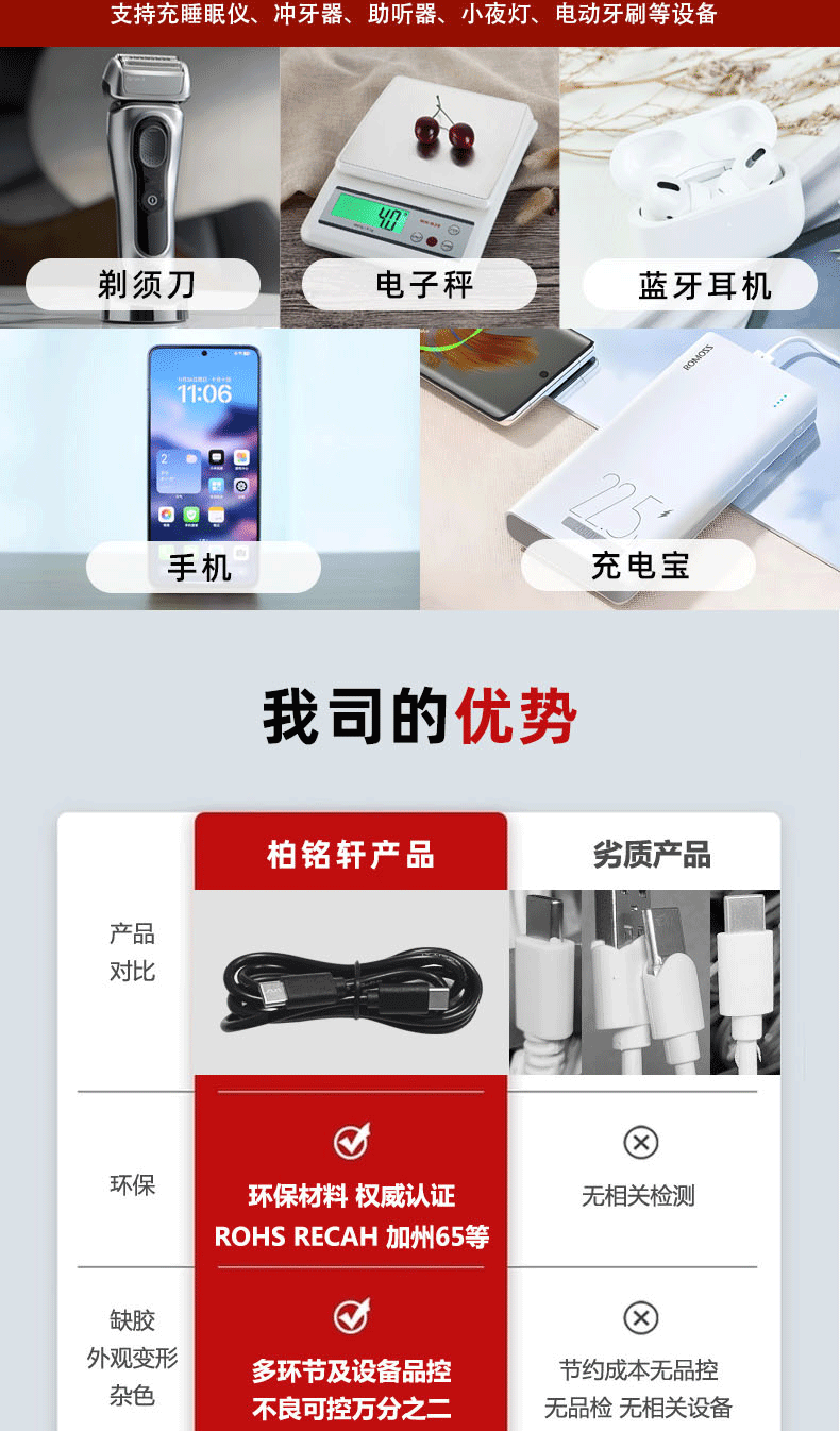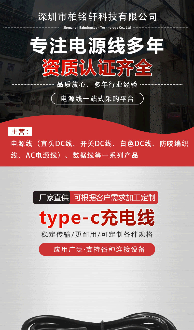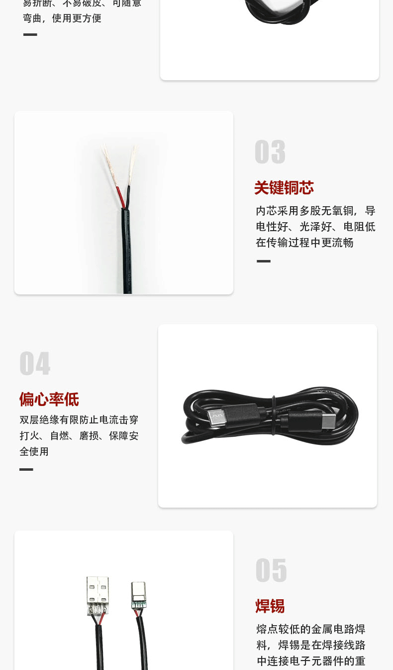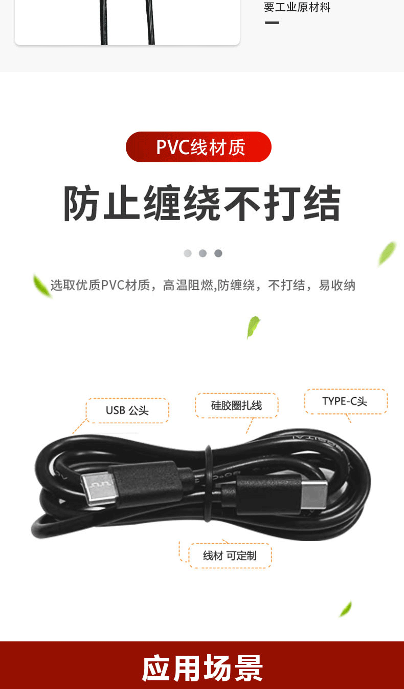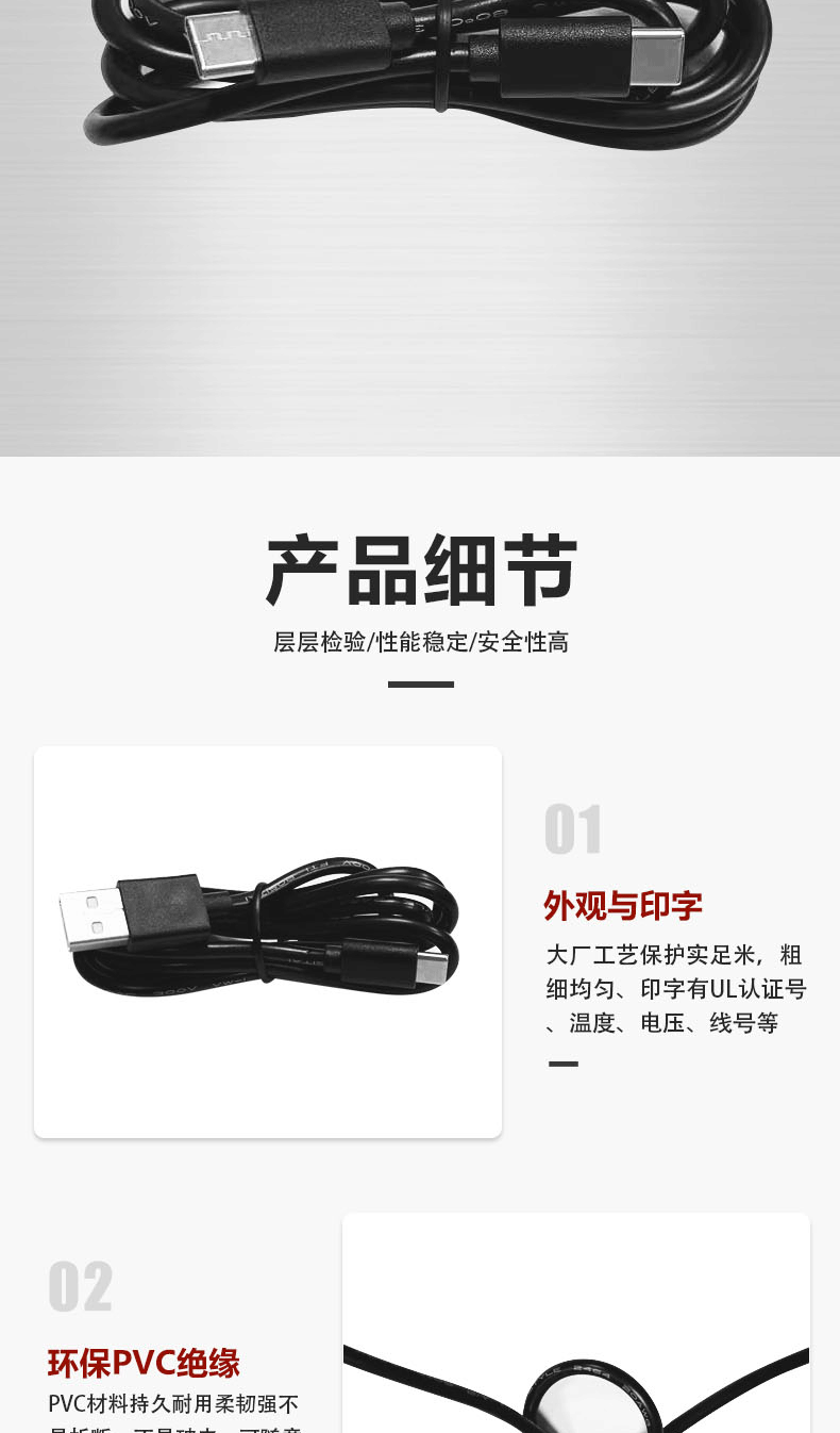 Type-c充电ケーブルusbケーブルアンドロイドbluetooth加湿器2コア5Aナイトライト充电ケーブルtype-c