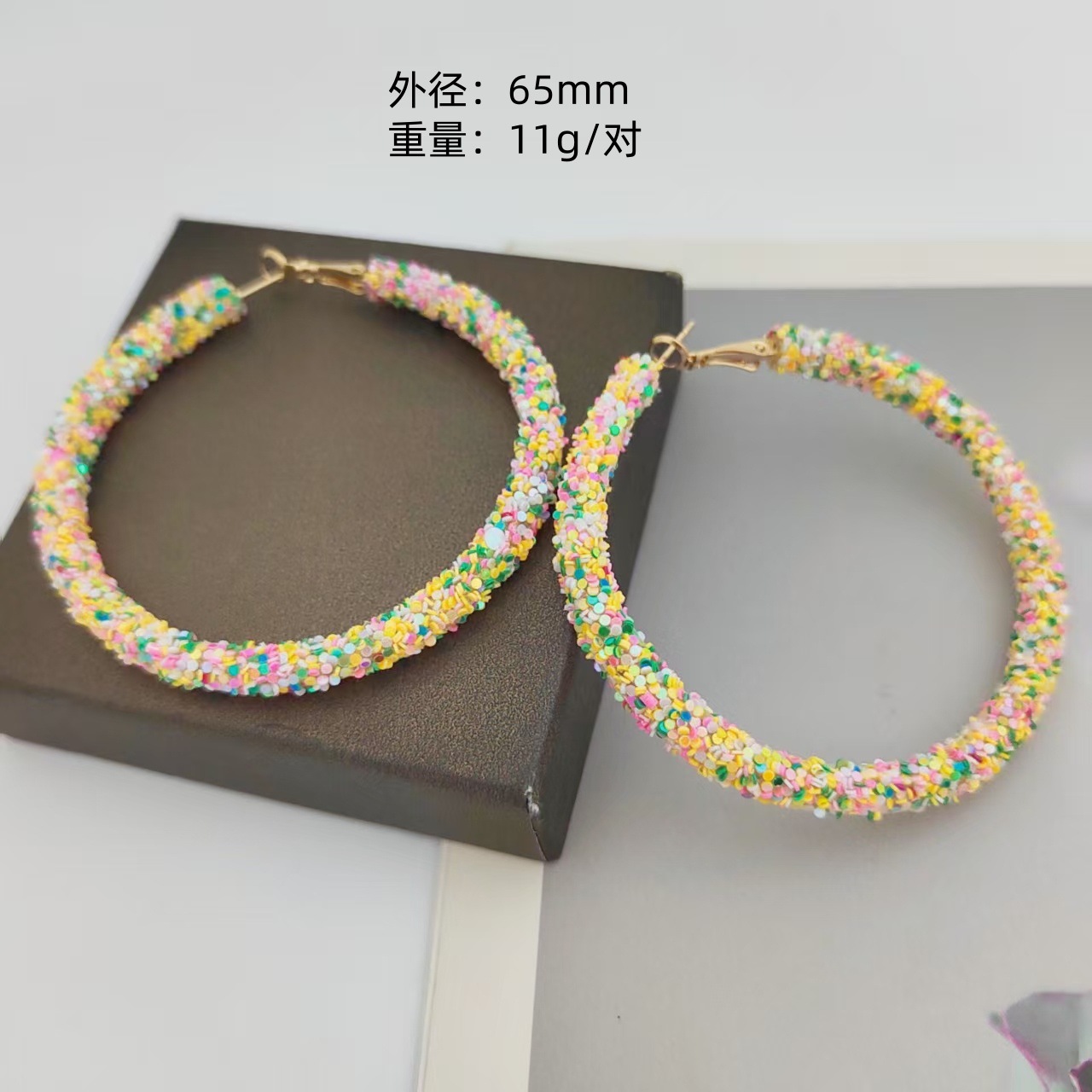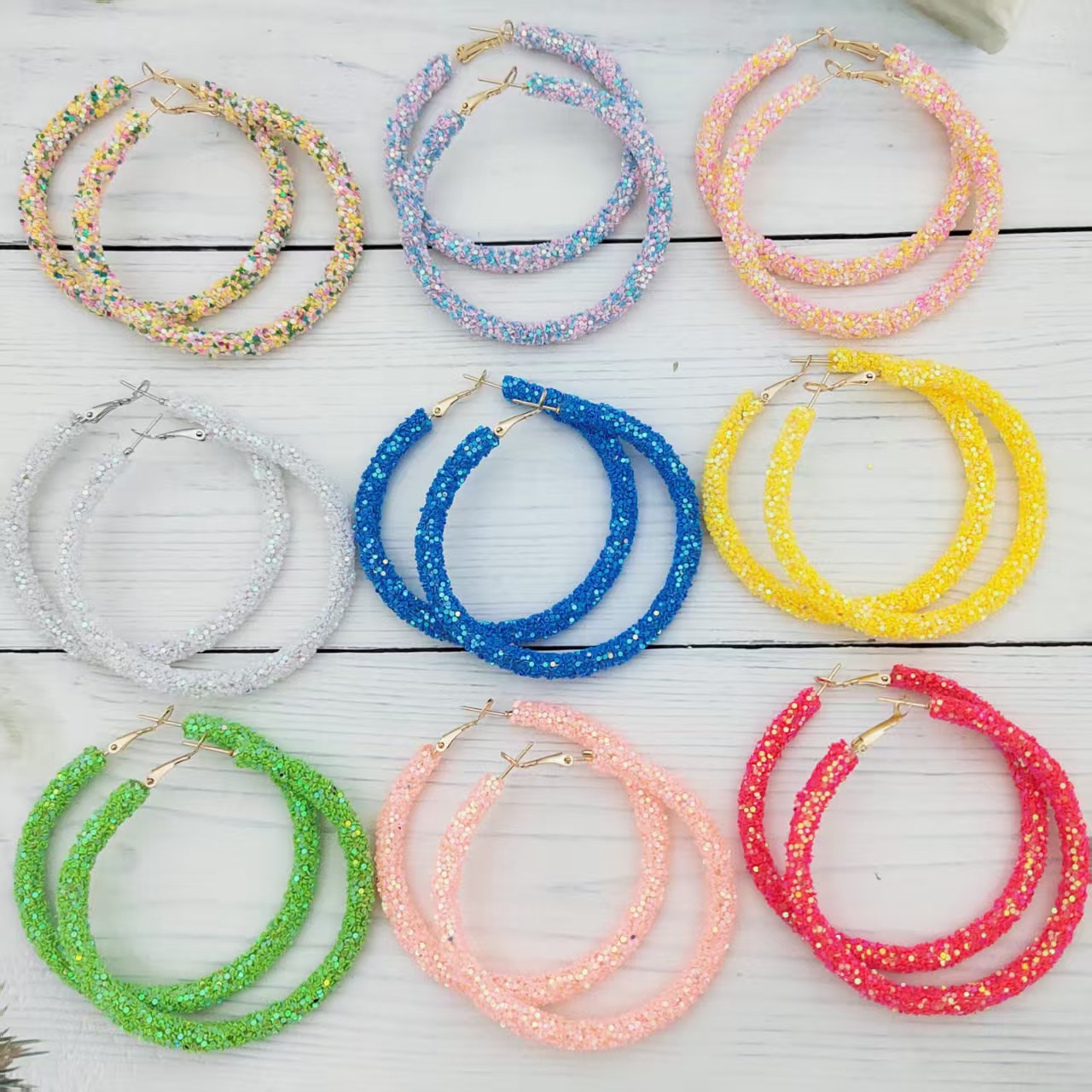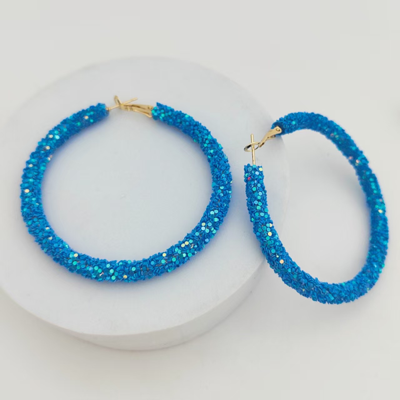 欧米風誇張スパンコール大丸型イヤリング おしゃれなカラフルスパンコールキャンディーカラー個性派レディースイヤリング