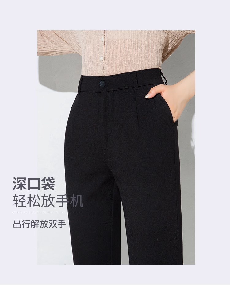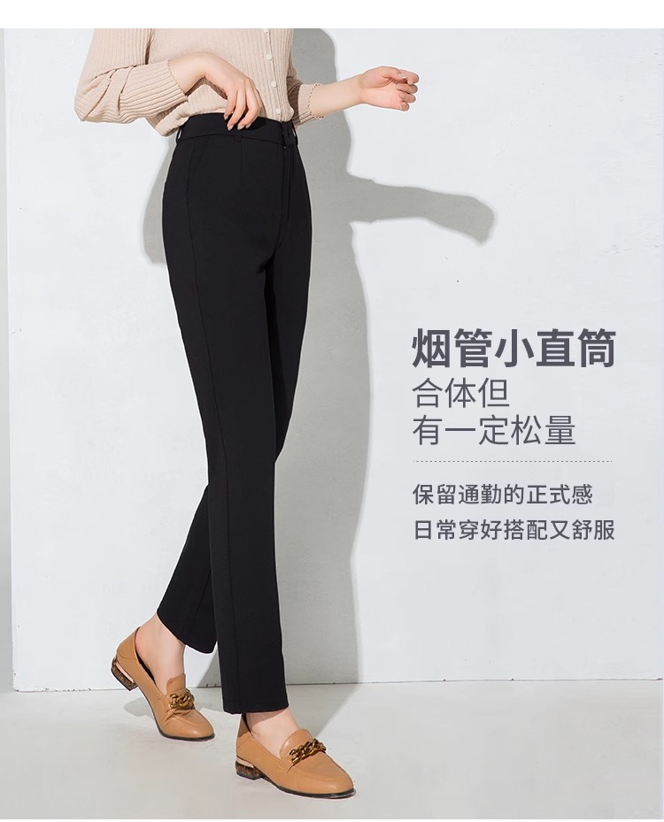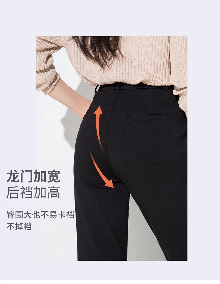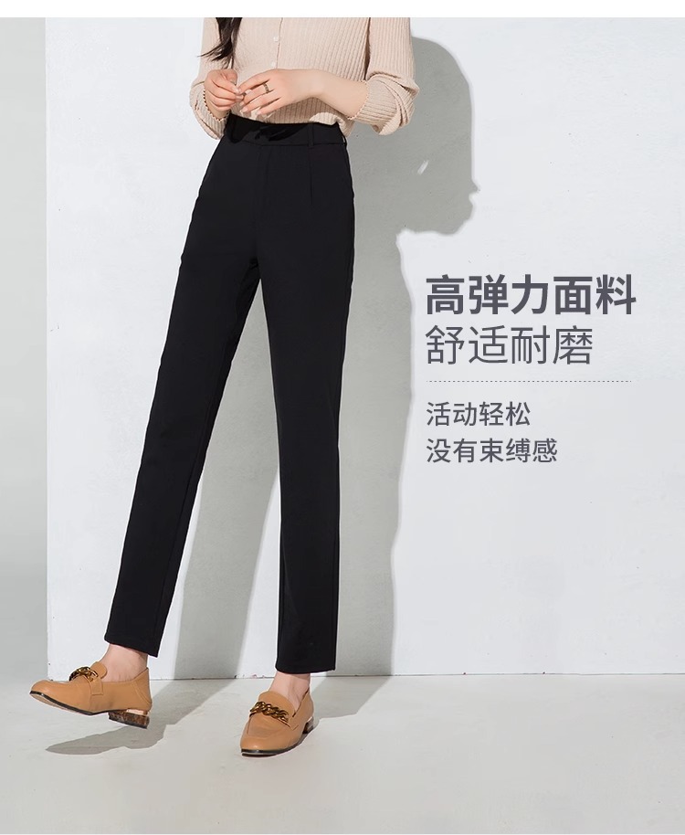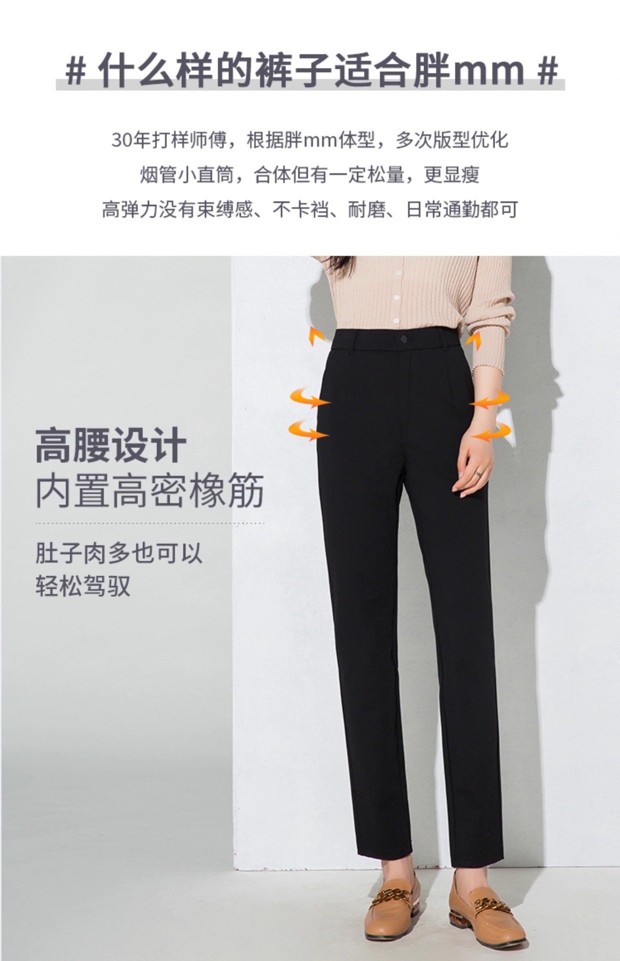 大きいサイズの女性用スーツパンツ、ハイウエストで伸縮性があり、着痩せ効果のある秋冬用ストレートレッグ通勤カジュアルパンツ、裏起毛スモーキーパンツ