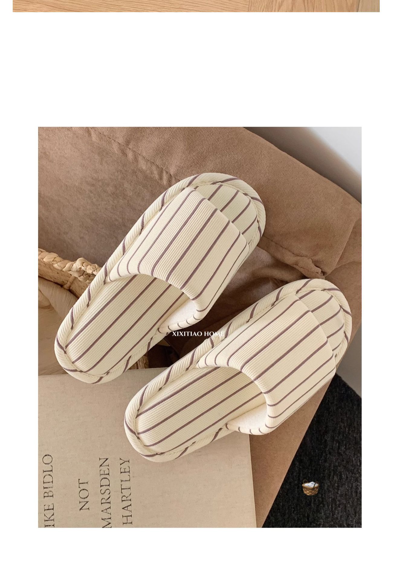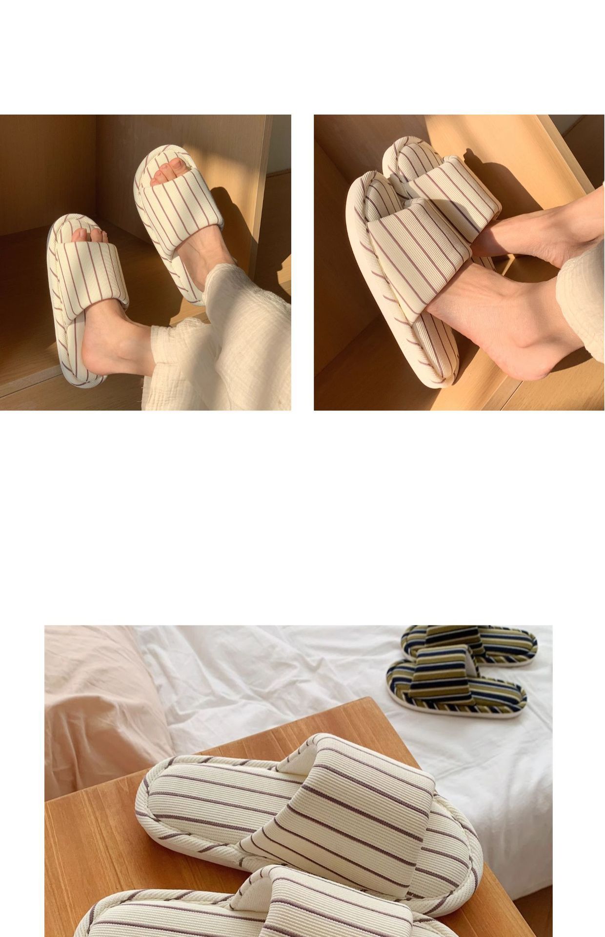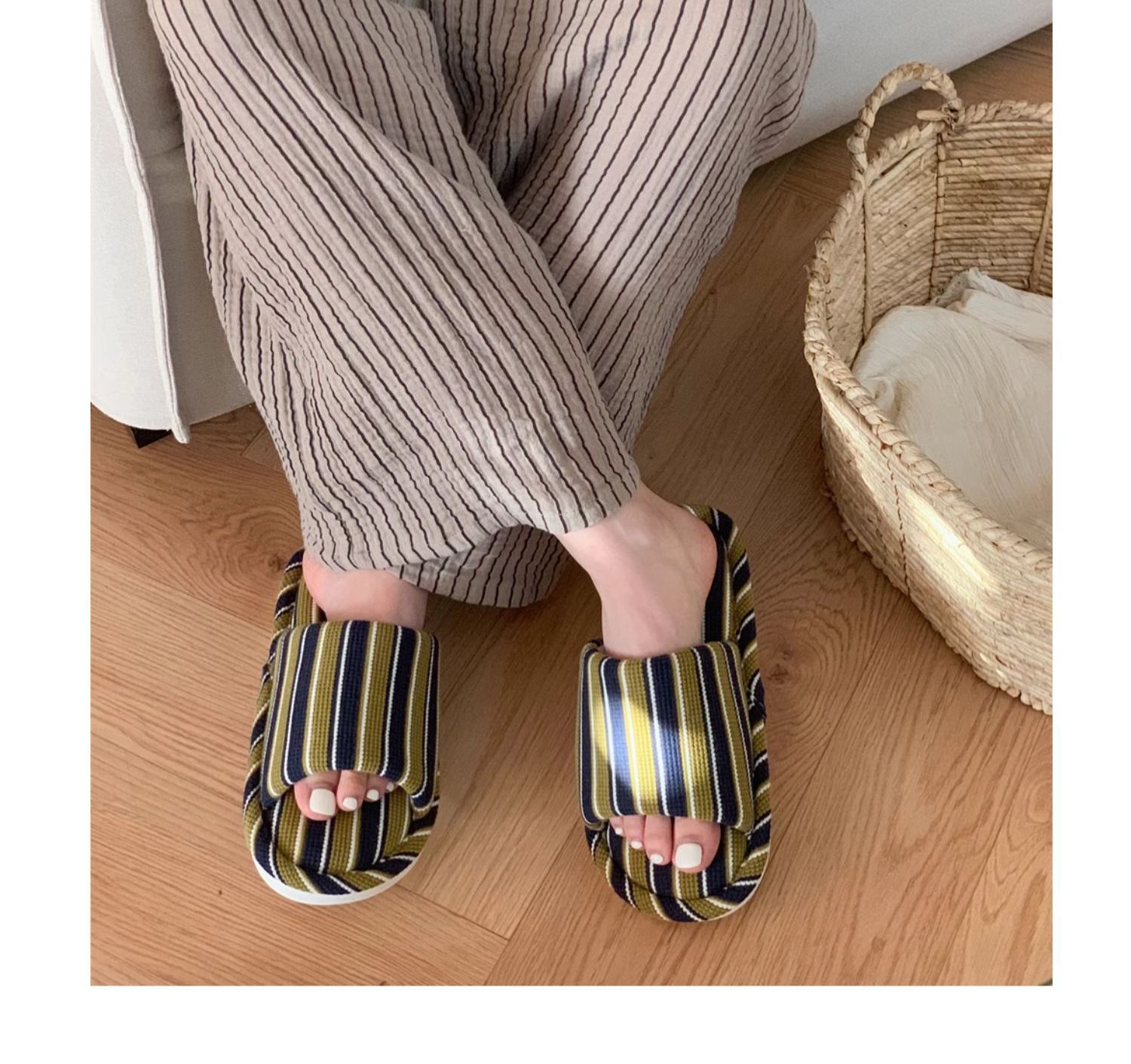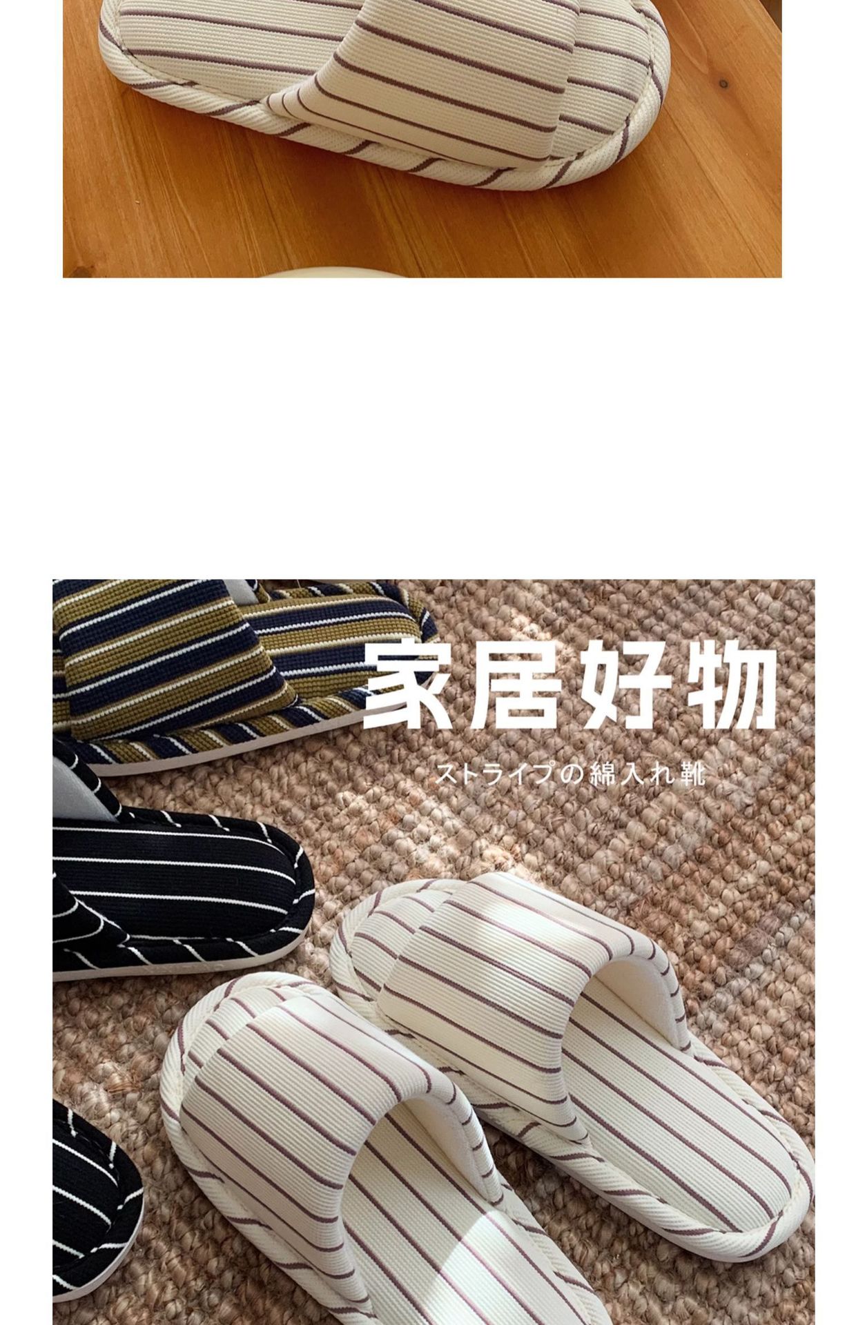 細い条のシンプルなストライプの家の床の靴の日本式の綿の麻の柔らかい底の四季通用のエアコンの部屋のスリッパの女性のins