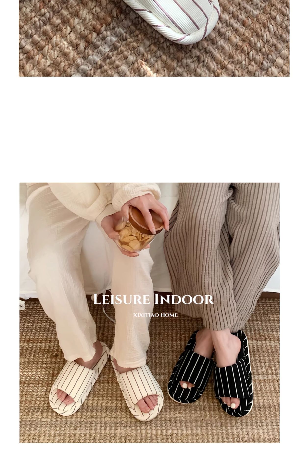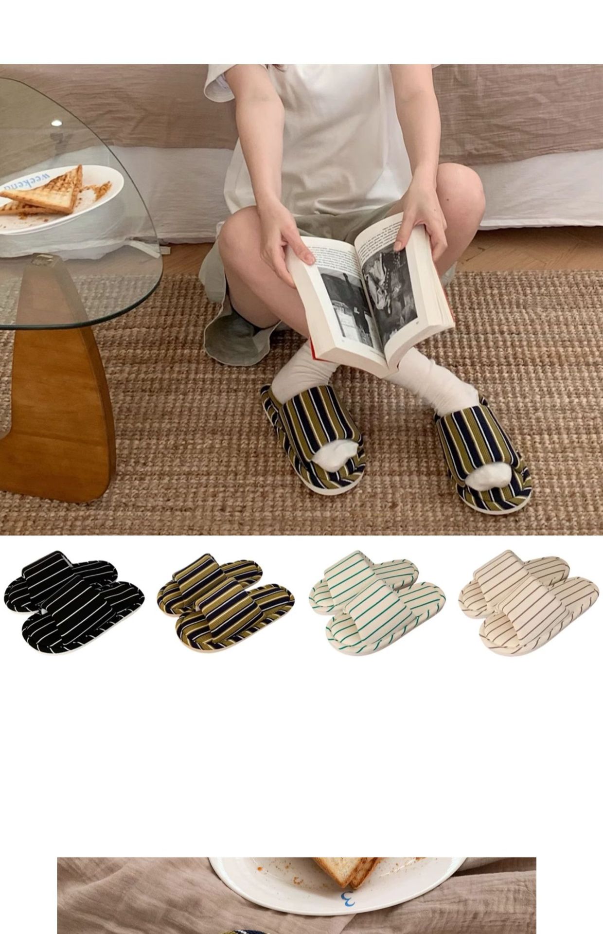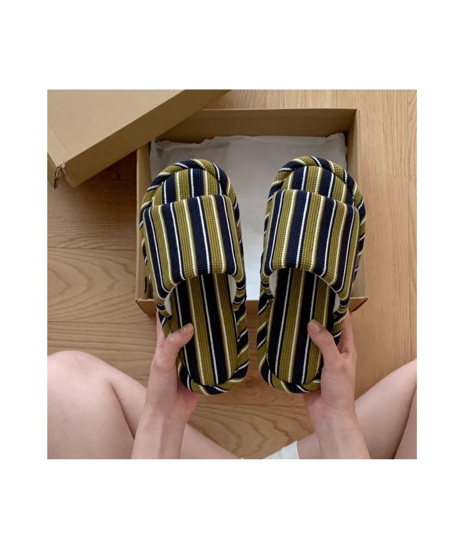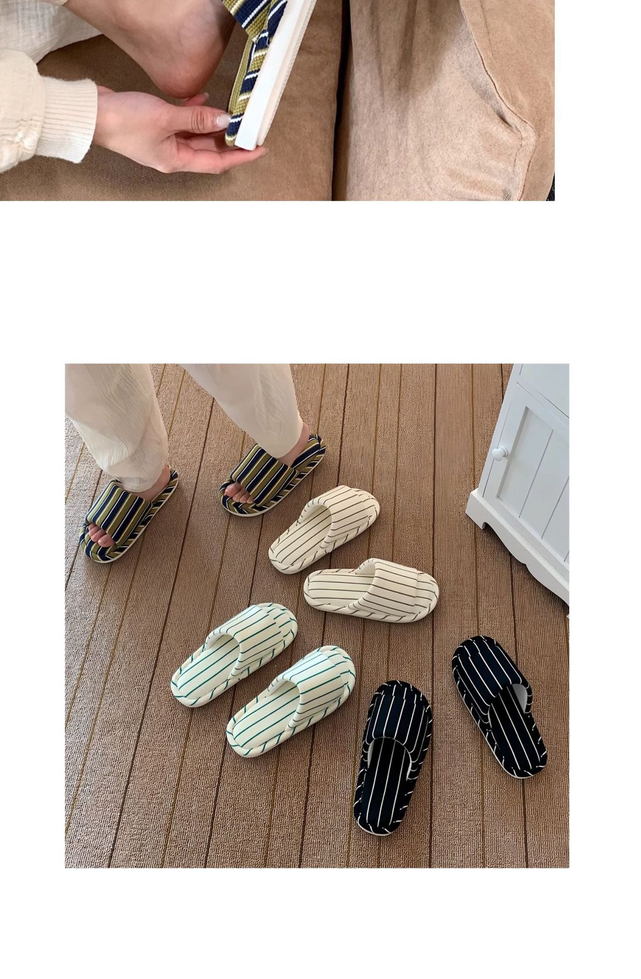 細い条のシンプルなストライプの家の床の靴の日本式の綿の麻の柔らかい底の四季通用のエアコンの部屋のスリッパの女性のins