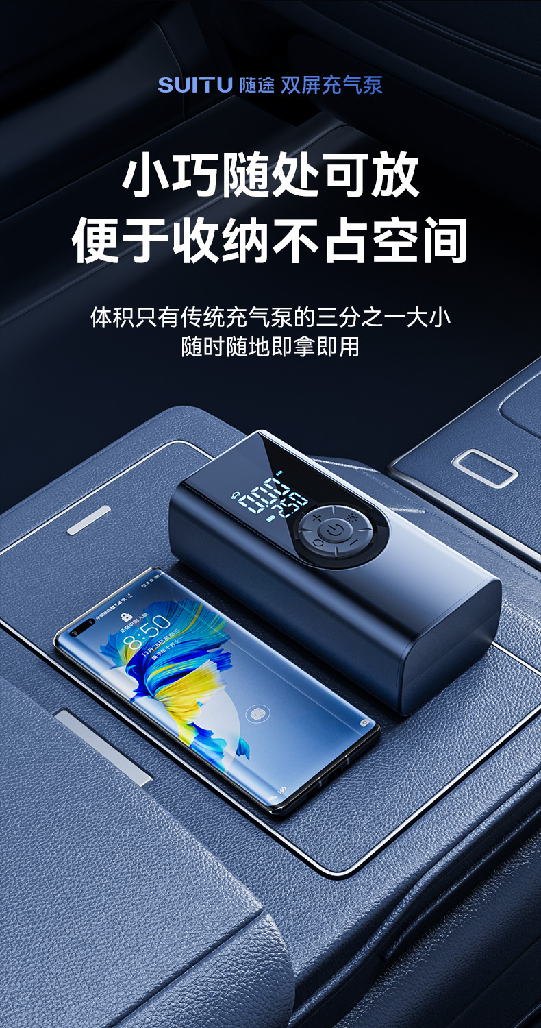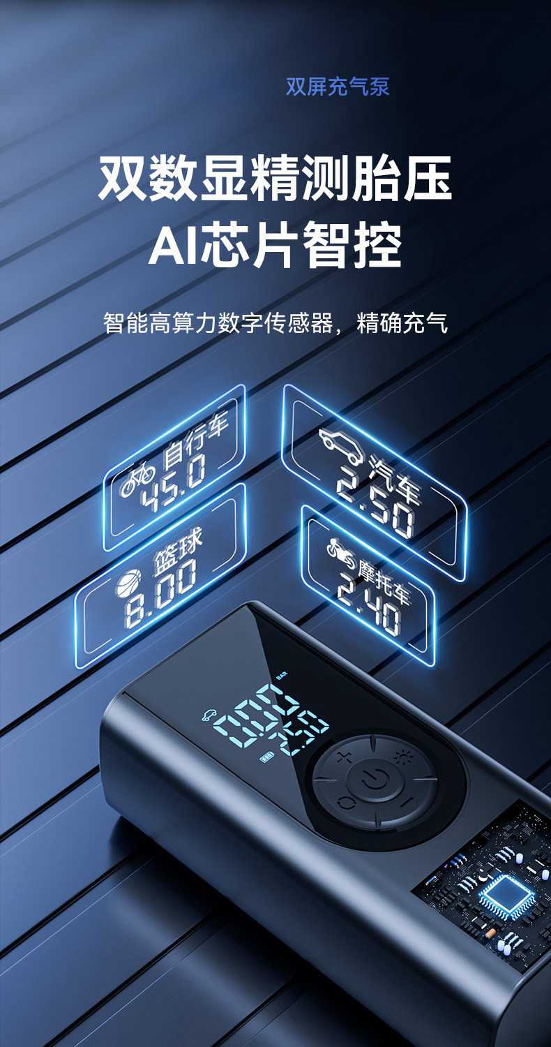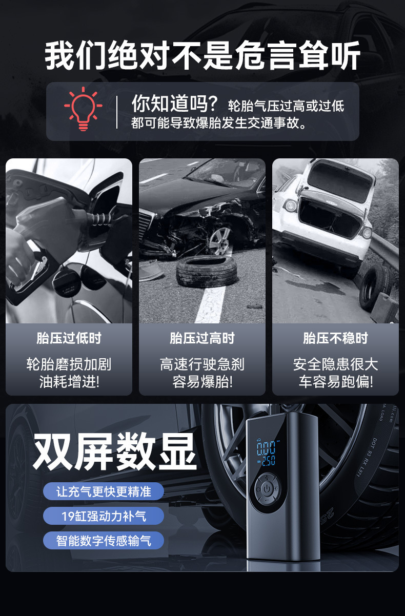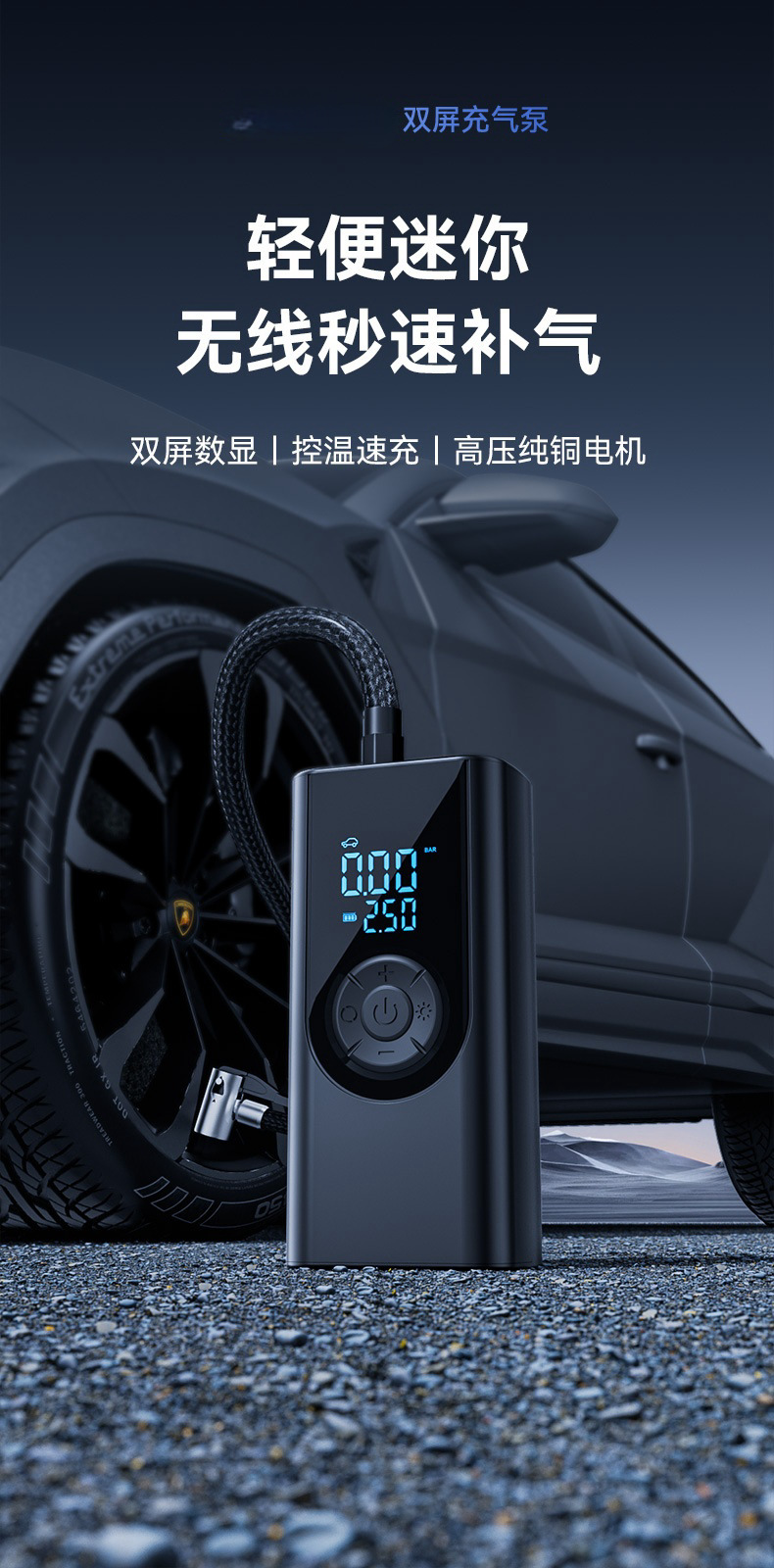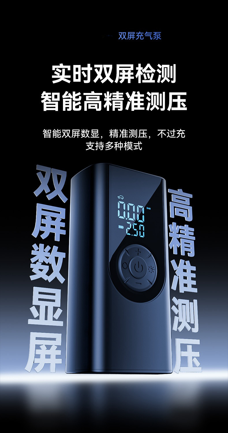 双屏充气泵-无线数显款+DC车充线+USB款充电宝款 黑色11.1V