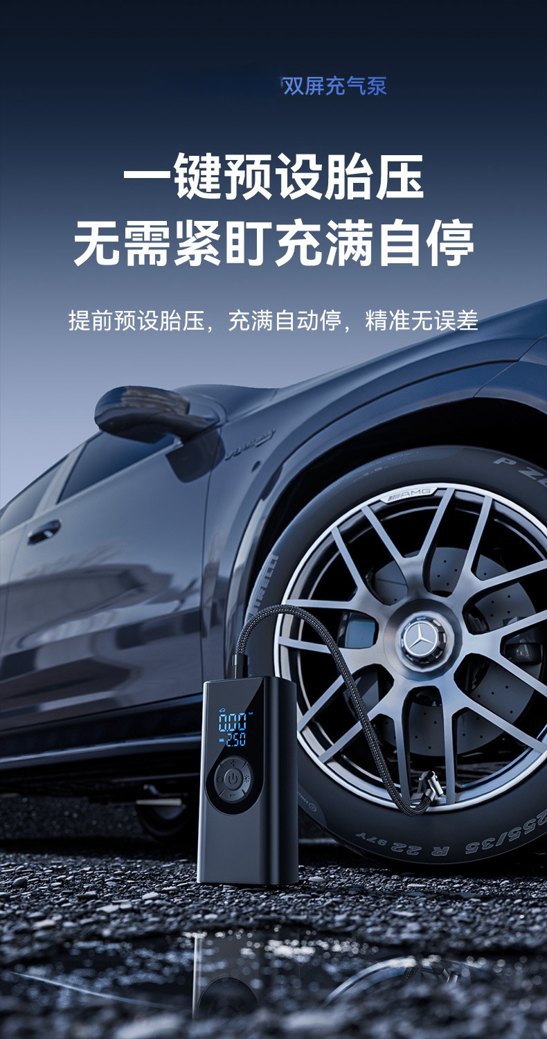 2025 車のエアポンプワイヤレスデジタルディスプレイデュアルスクリーンエアポンプタイヤポンプ電動ポンプカー用品