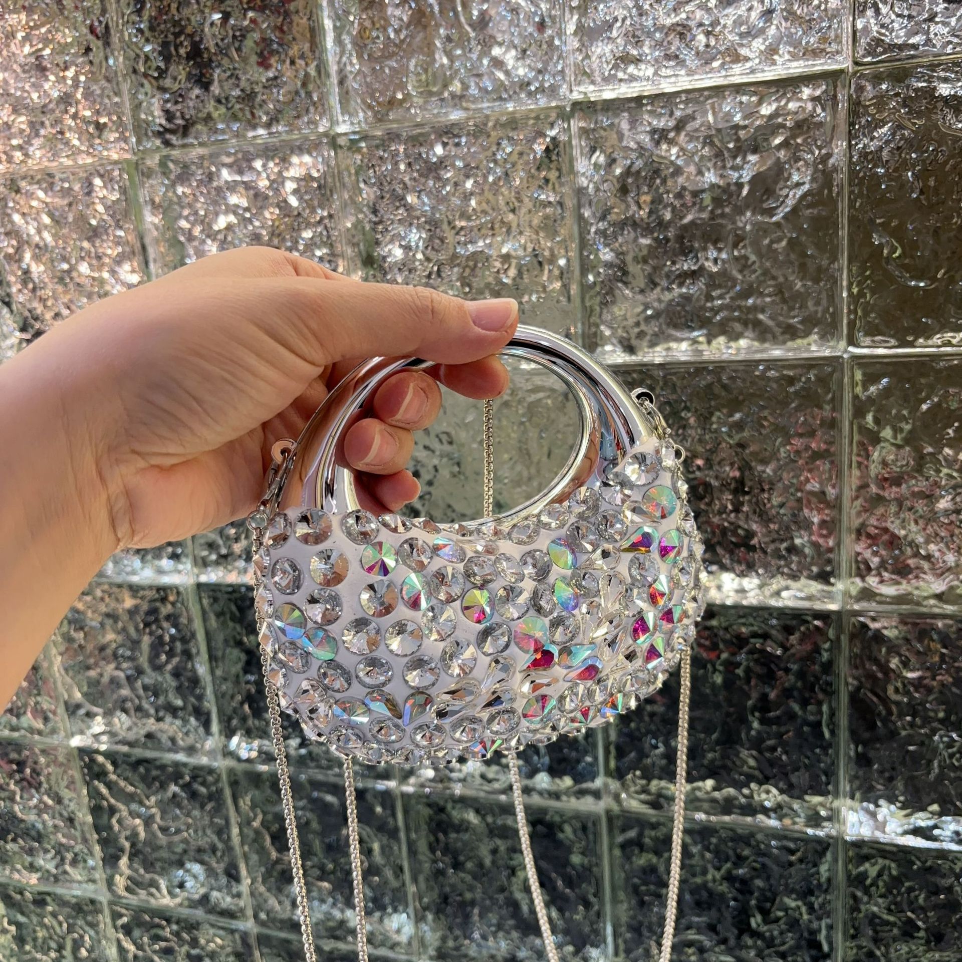 2025新型ファッション女性ハンドバッグ夏百合バッグ対外貿易アクリルドリル付き宴会バッグハンドバッグ