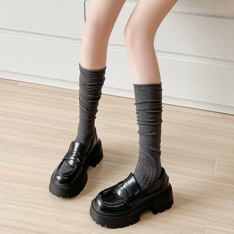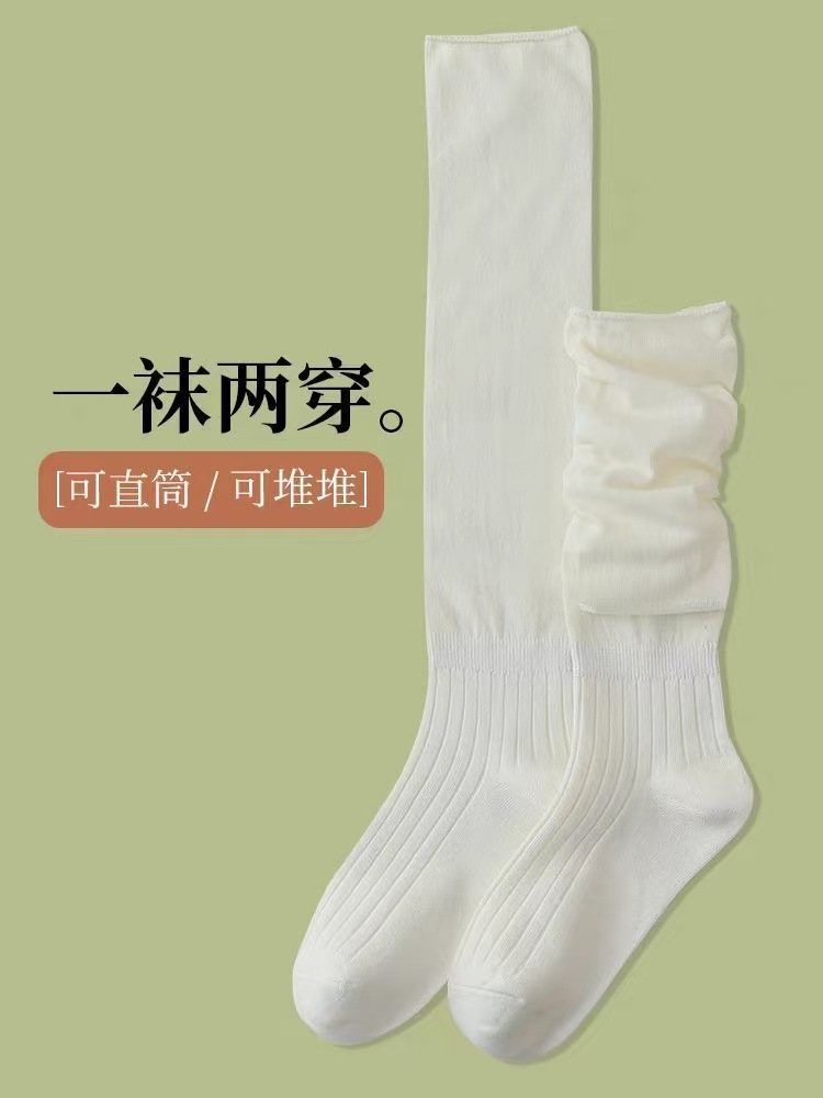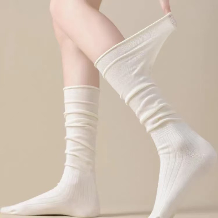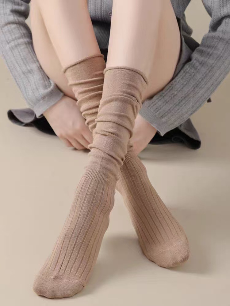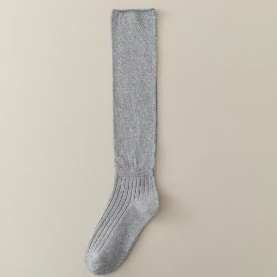 ミドル丈ソックス、白い靴下、女性用、春秋、メイラード風、ショートブーツに合うグレーの重ね履きソックス、膝丈、ふくらはぎ丈ソックス