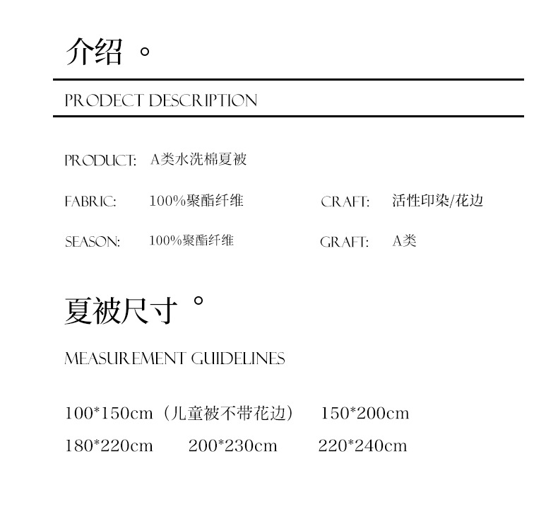 子供用掛け布団-100×150cm(レースなし),シングルサマーキルト-150×200cm,シングル特大サマーキルト-180*220cm,ダブルサマーキルト-200×230cm