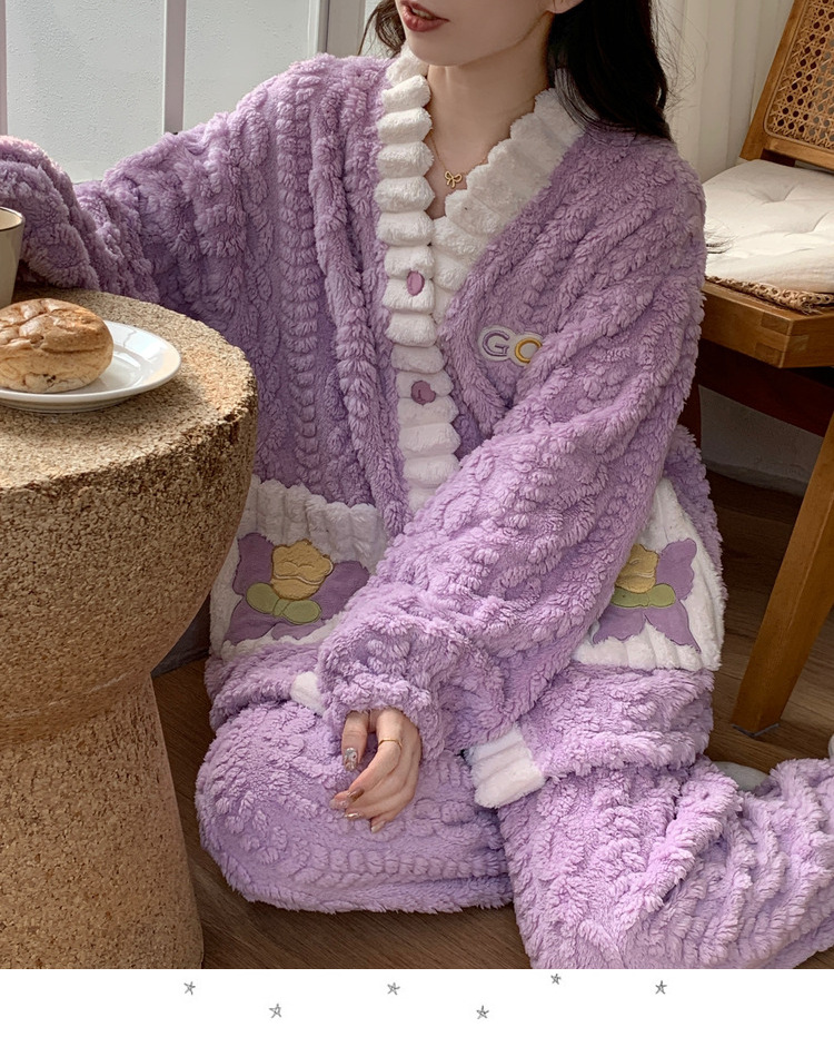 女性のベルベットのパジャマ秋冬の学生insベルベットは保温フランネルを厚くして家の服のスーツを着ることができる