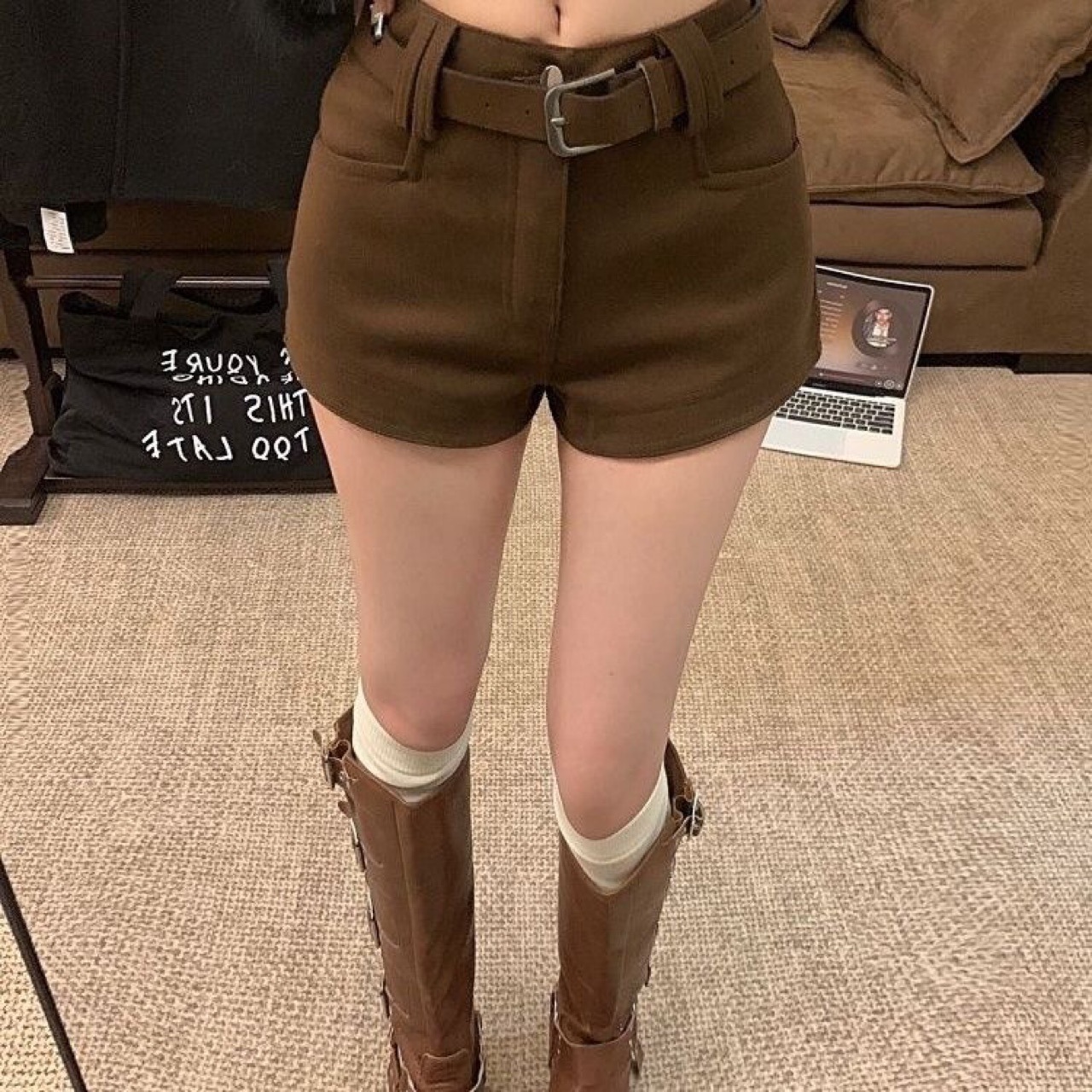 コーヒー色の高腰の毛のショートパンツの女性の小さい子の新型の秋冬のカジュアルなズボンの2025はやせている靴のズボンのストレートなズボンを現します。