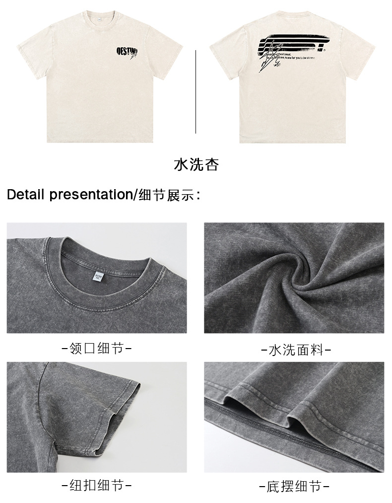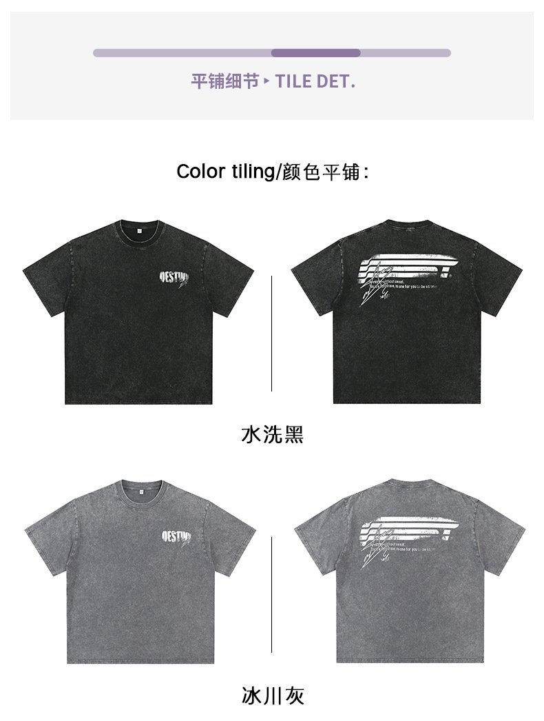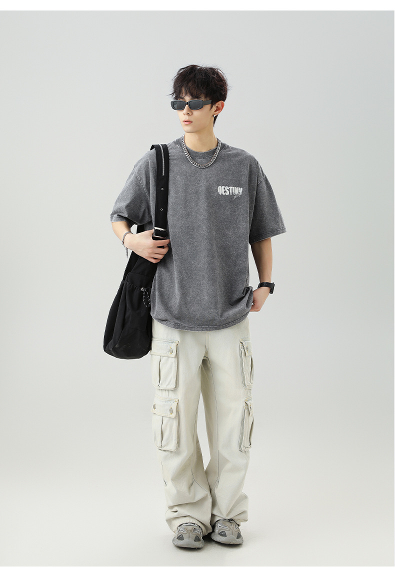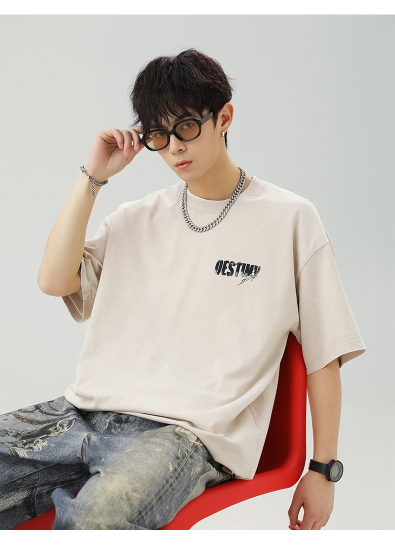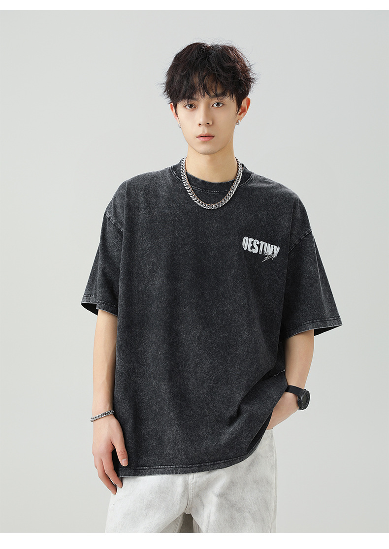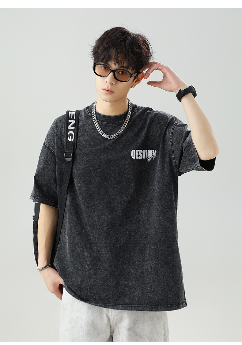 スノーフレークウォッシュ半袖Tシャツメンズ夏新作ブロークンテクスチャレタープリント半袖日本製ルーズTシャツq