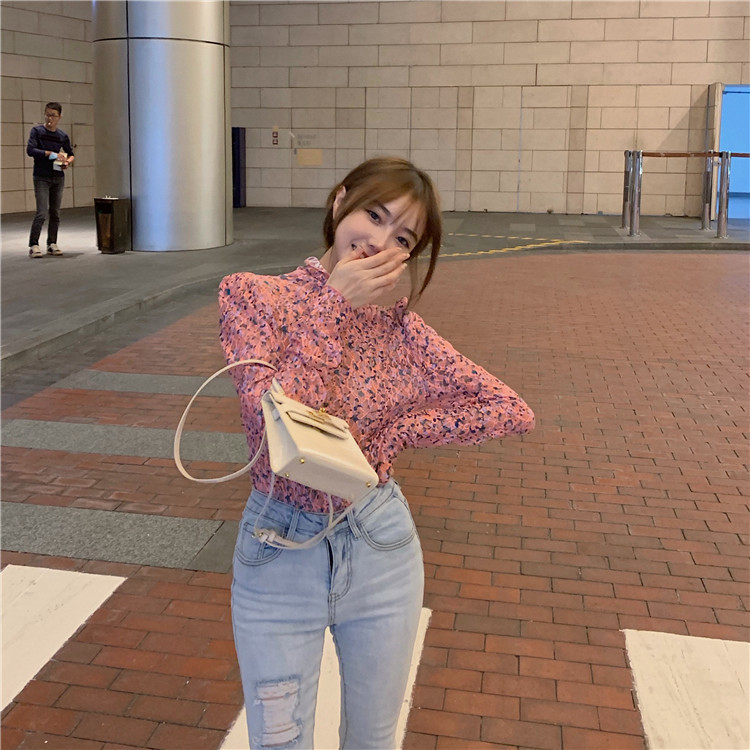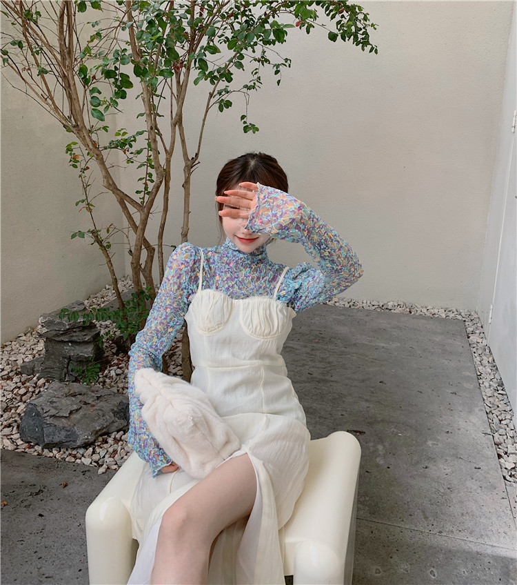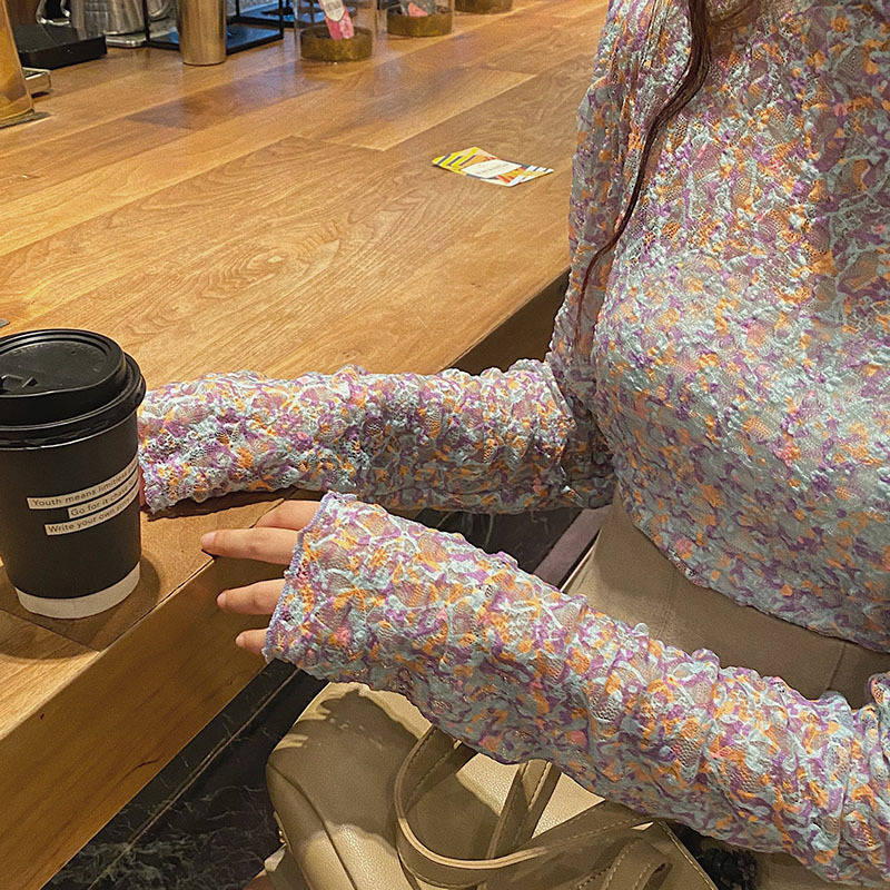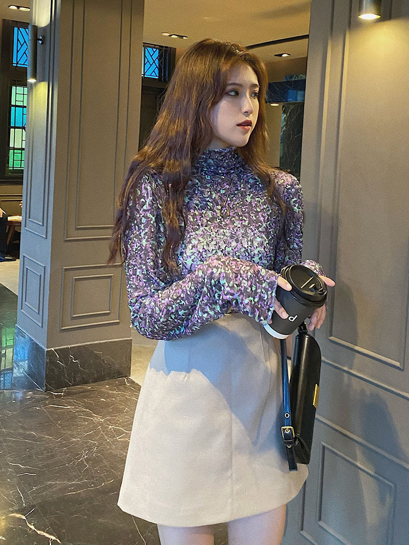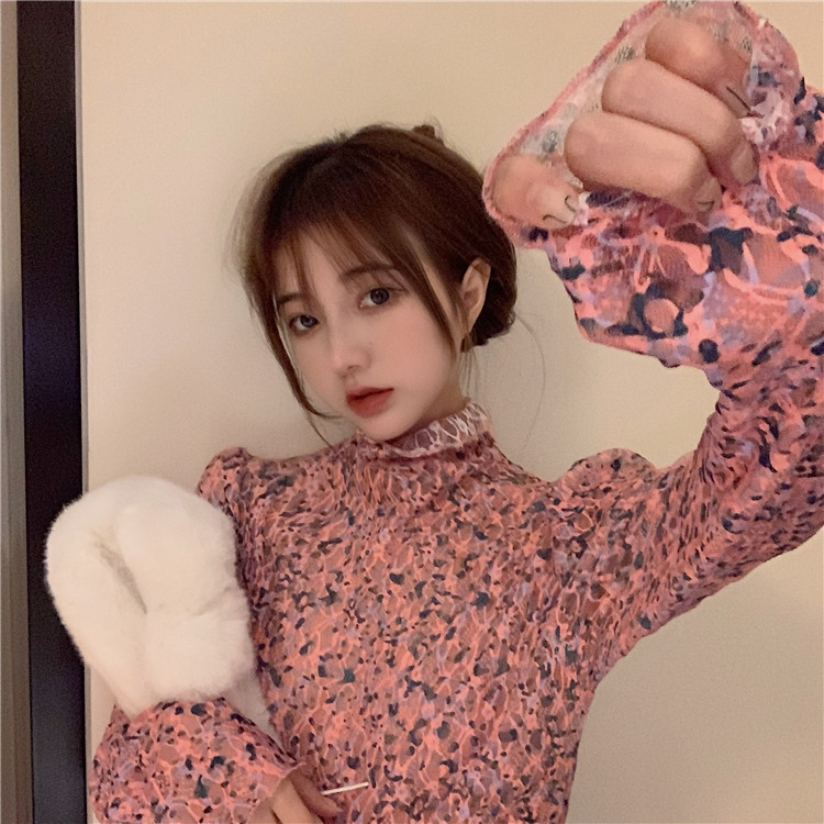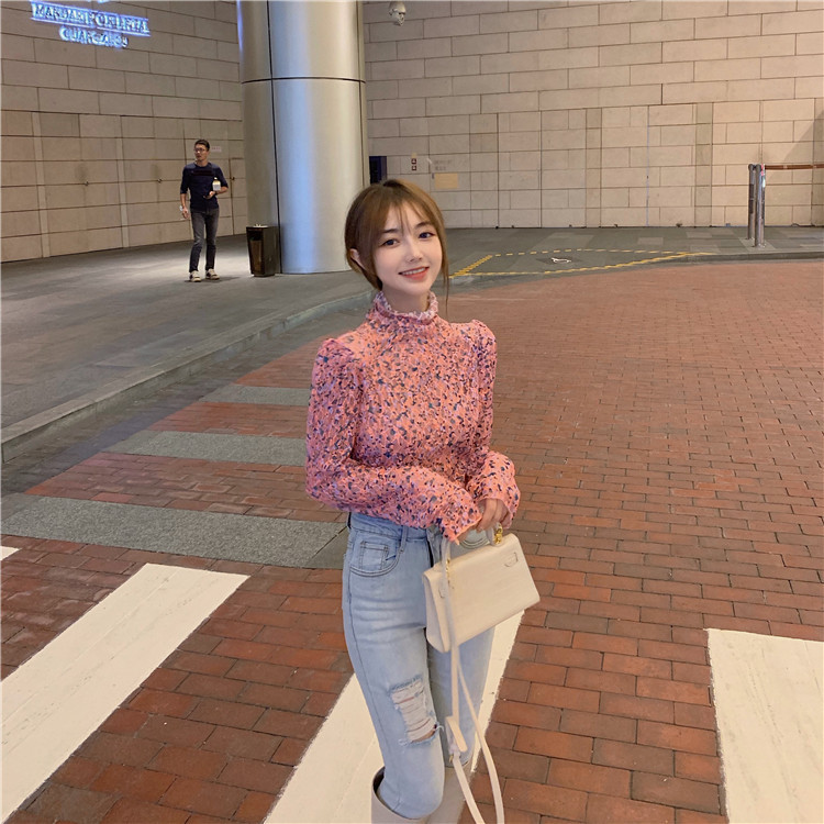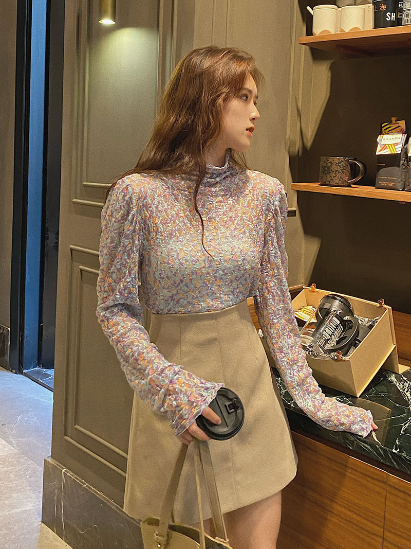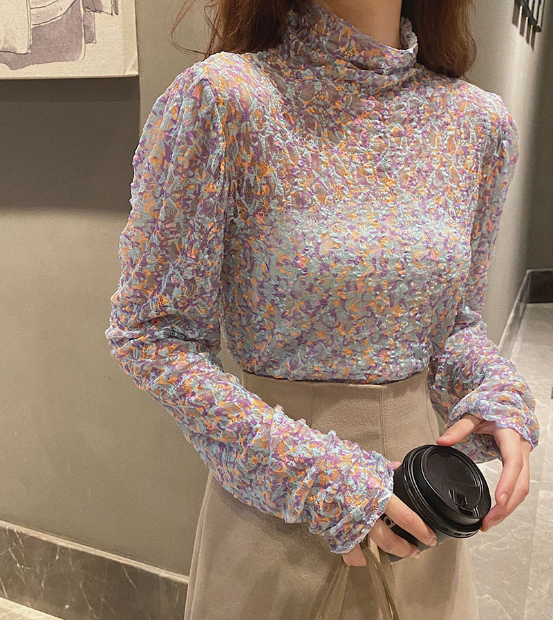 砕花百合底シャツ上着女子秋冬長袖修身高襟内に新型2025年tシャツinsブーム