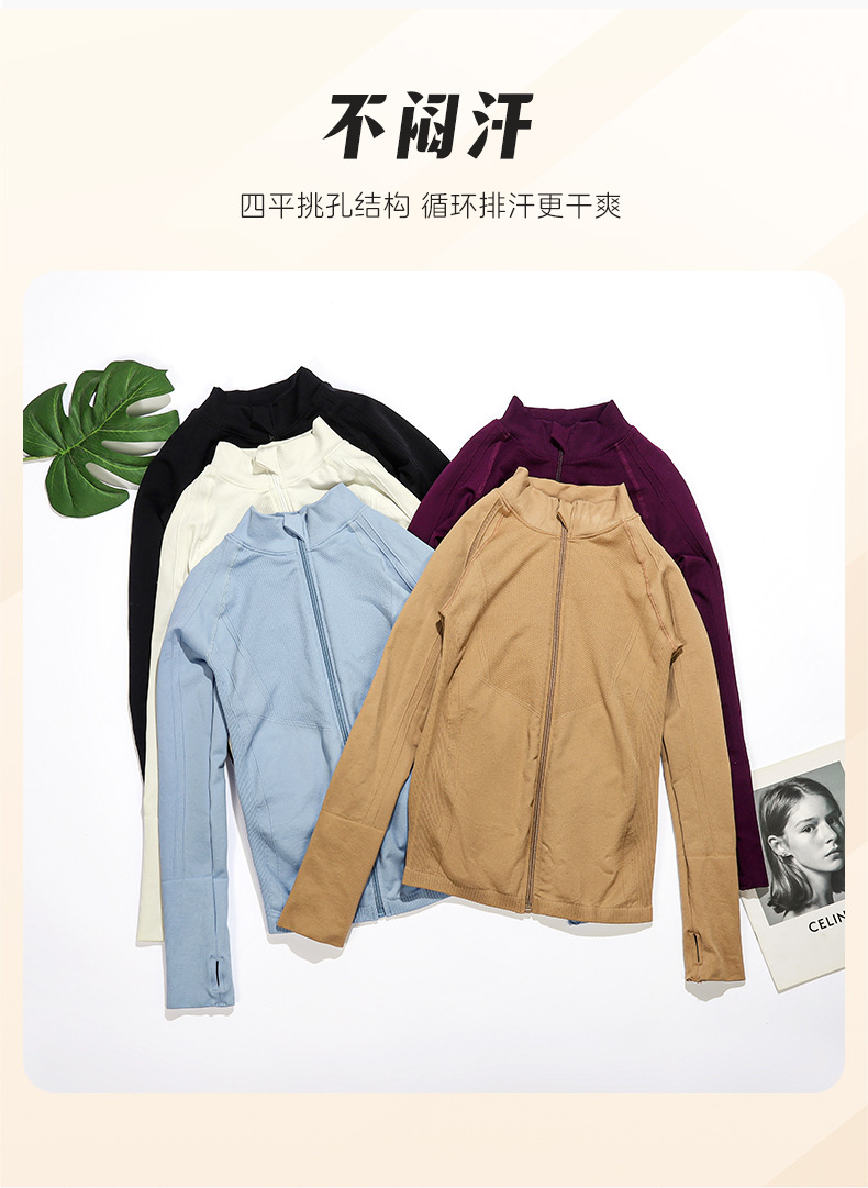 クロスボーダー春秋用吸汗速乾ヨガジャケット スポーツランニングジッパー付きショートジャケット 伸縮性速乾ランニングトップス