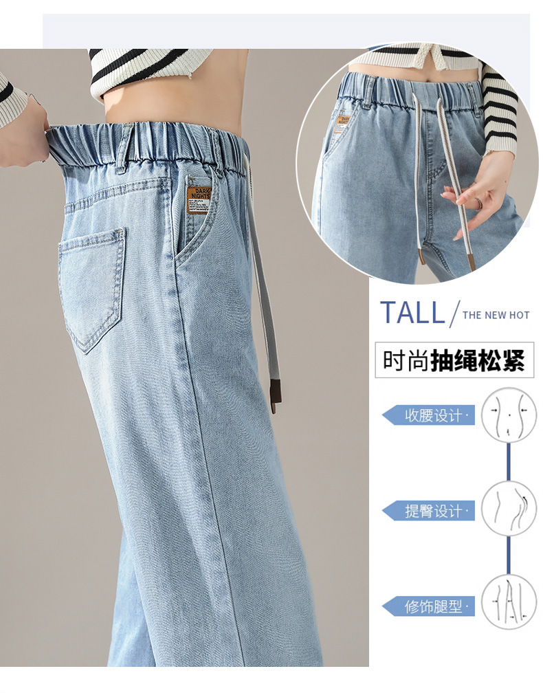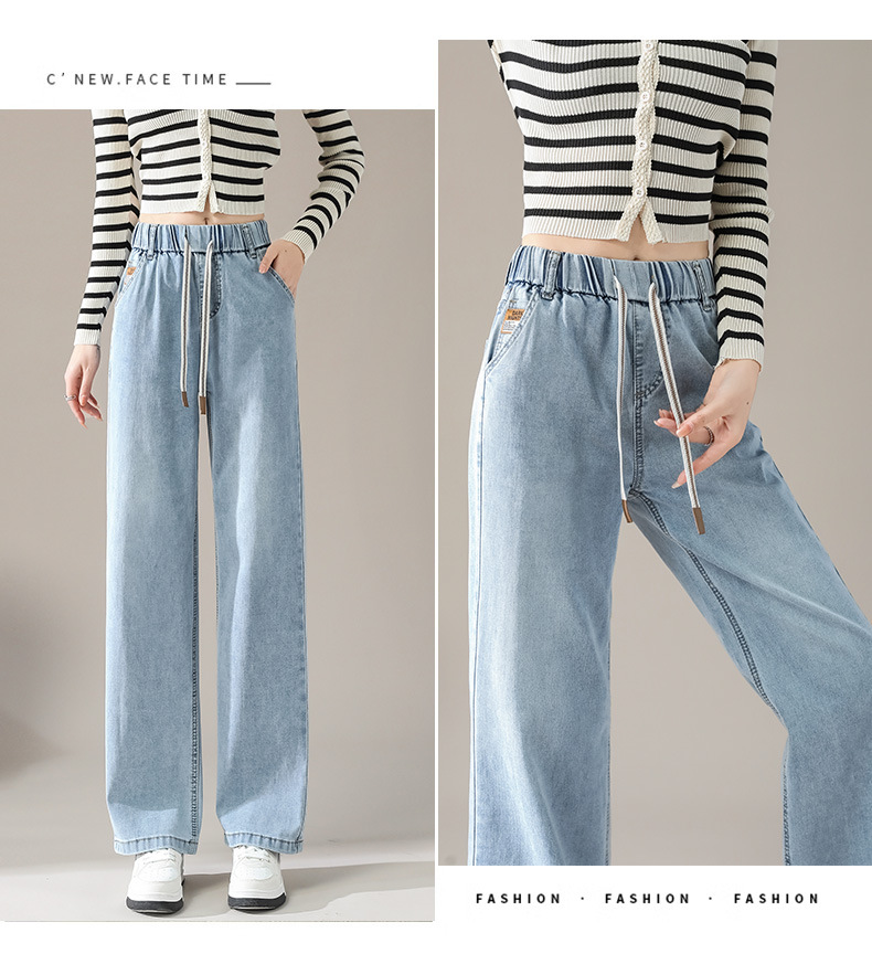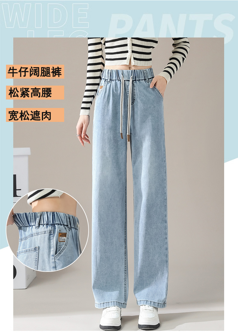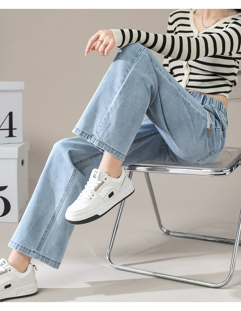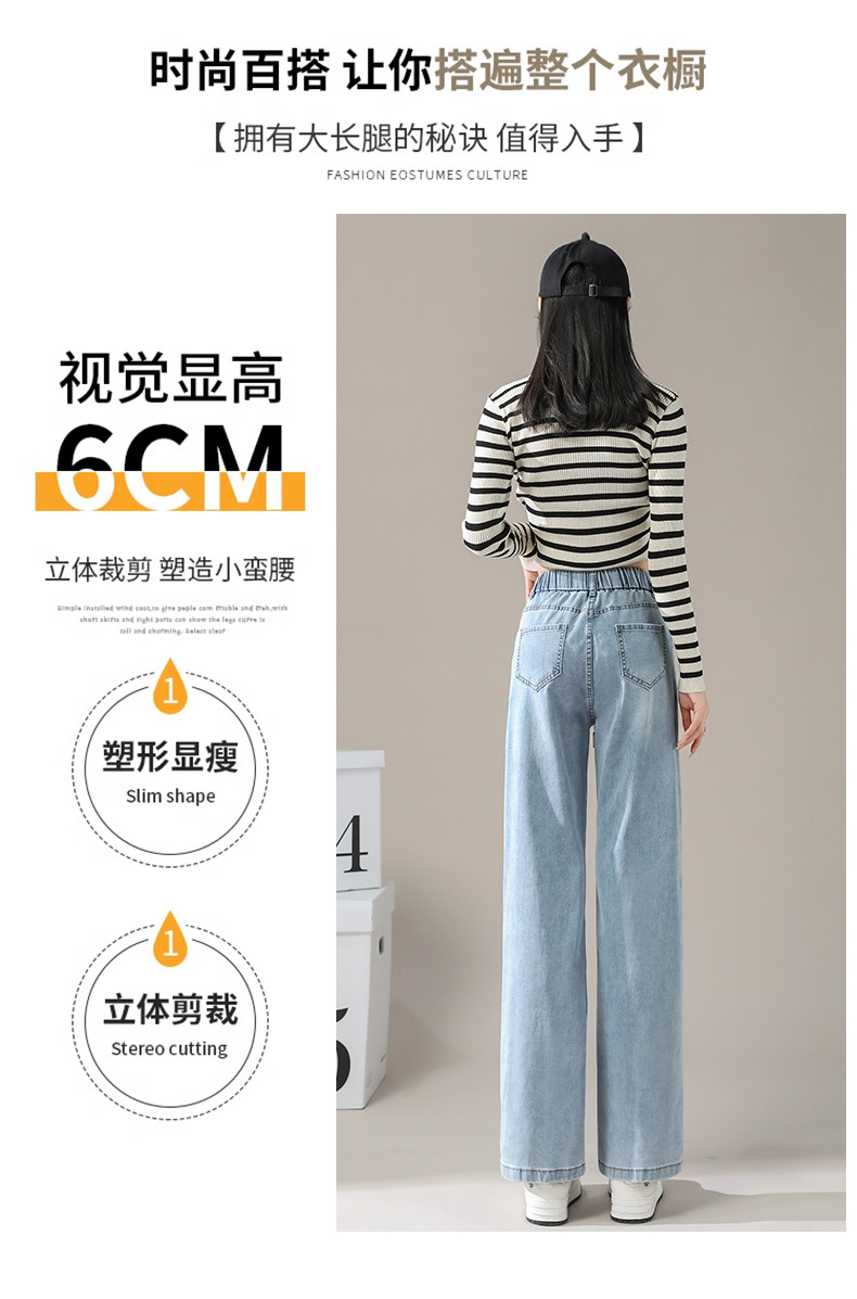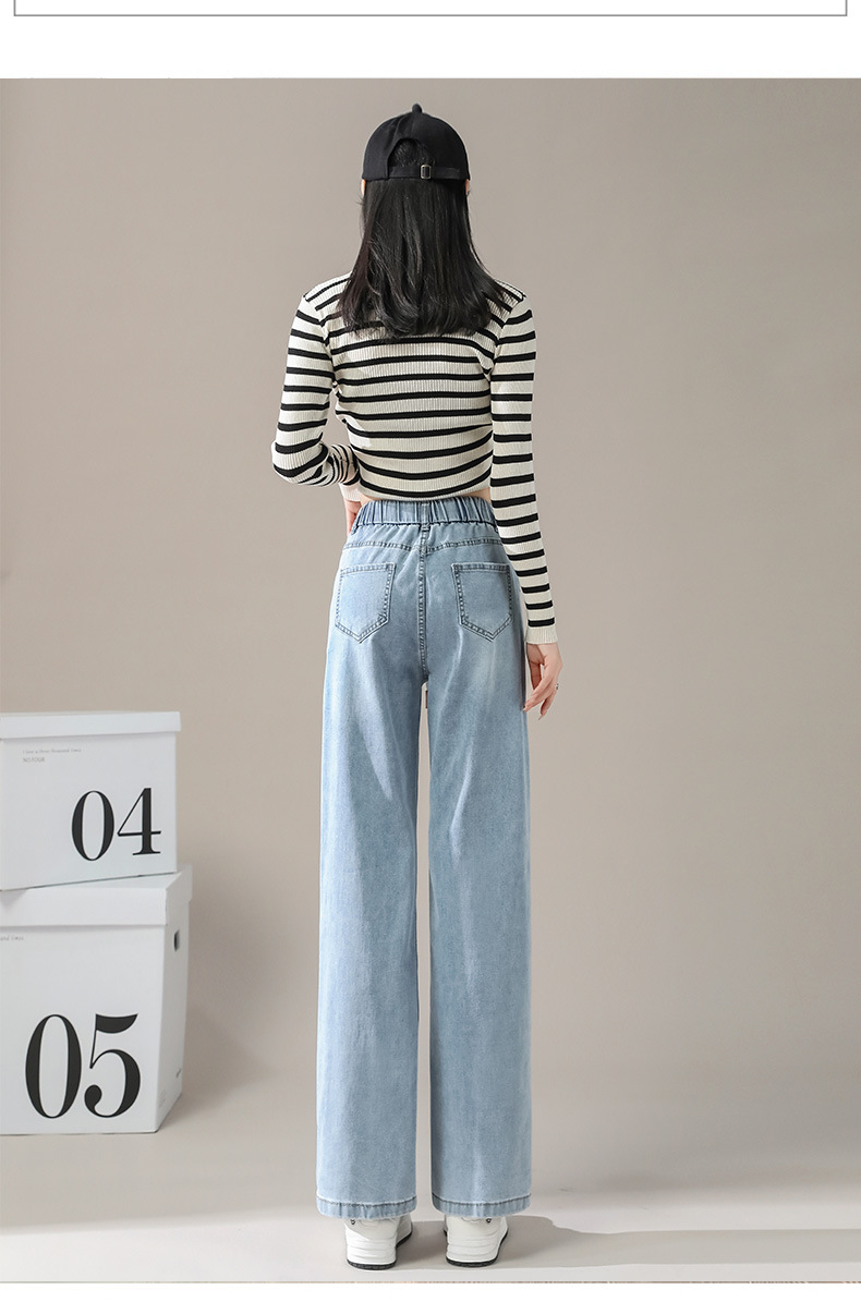ハイウエストストレートジーンズ レディース 2025秋冬新作 ゴムウエスト 大きいサイズ ぽっちゃりさん向け ゆったり着痩せ効果 ナローワイドパンツ