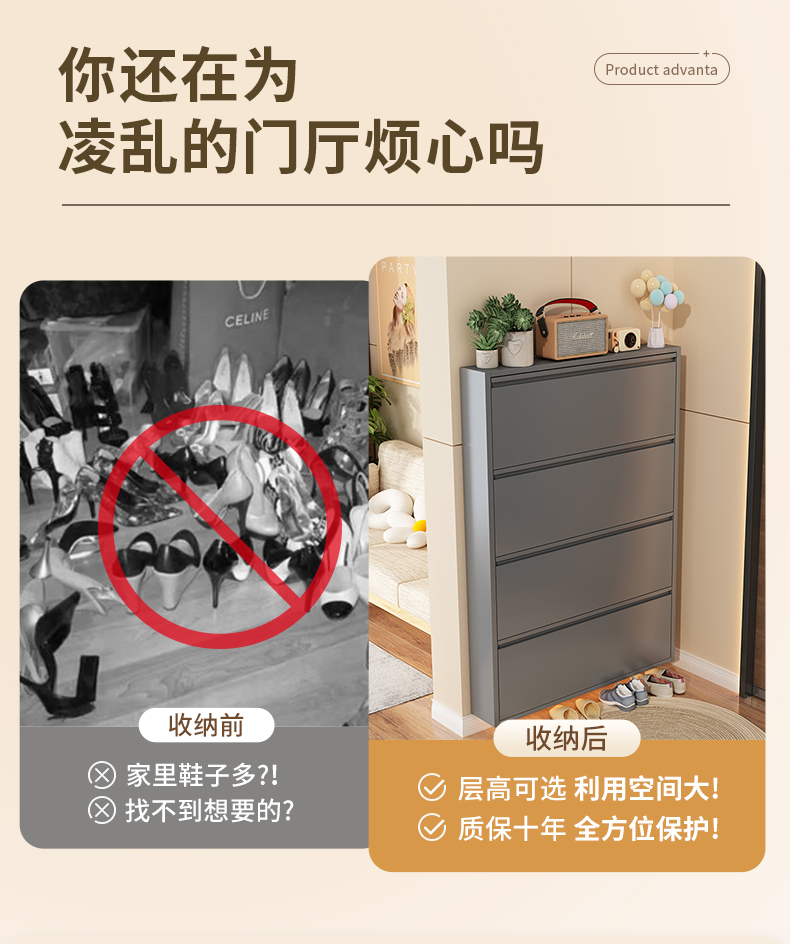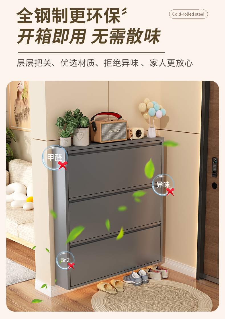 超薄ダンプシューズキャビネット鉄芸シンプル防塵極めて狭い大容量家庭用玄関玄関収納キャビネット