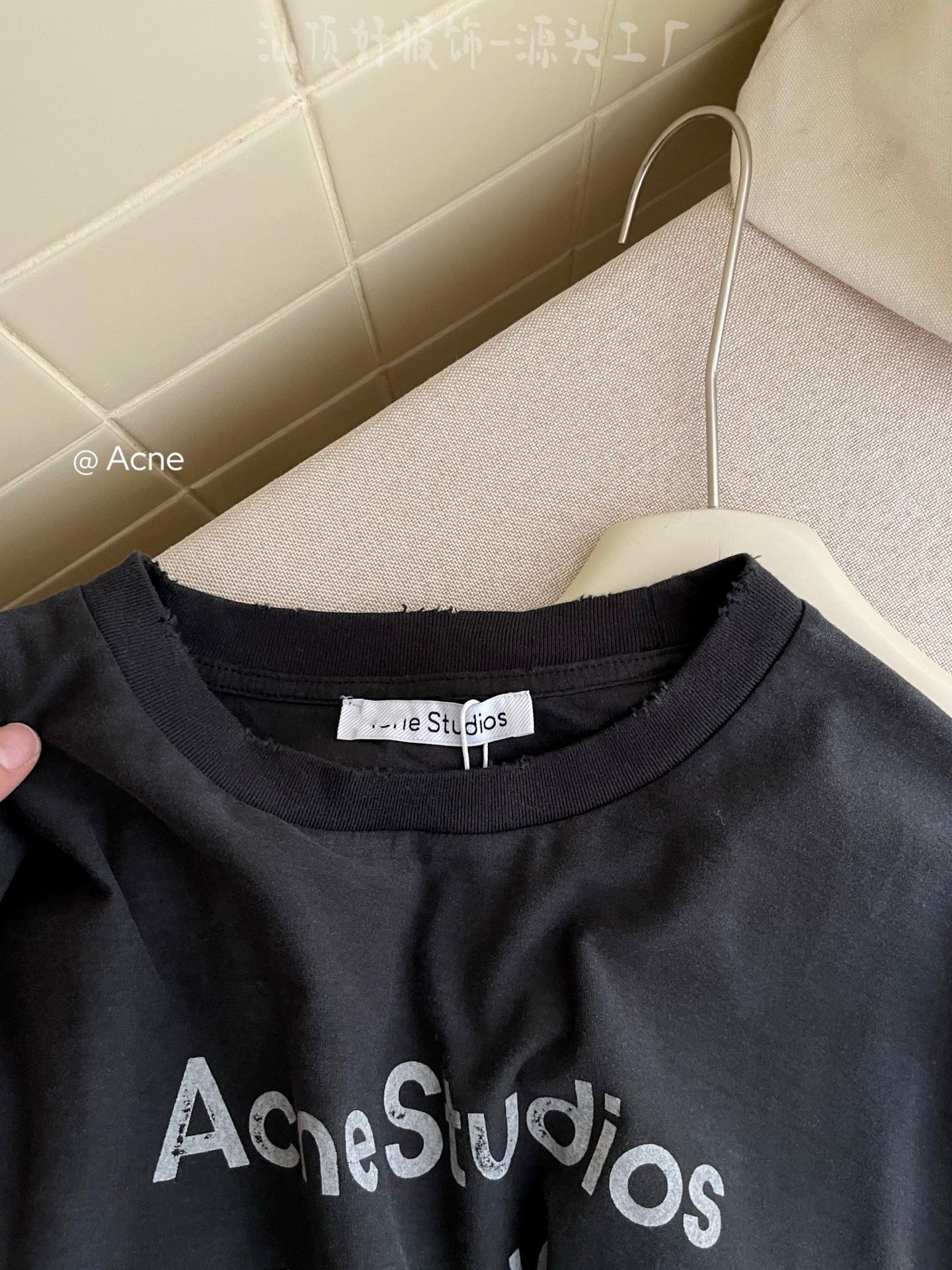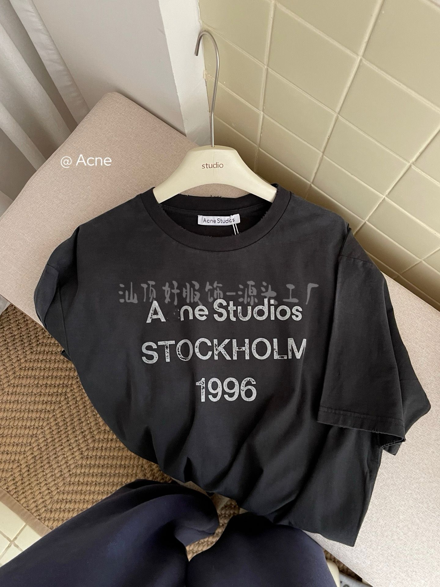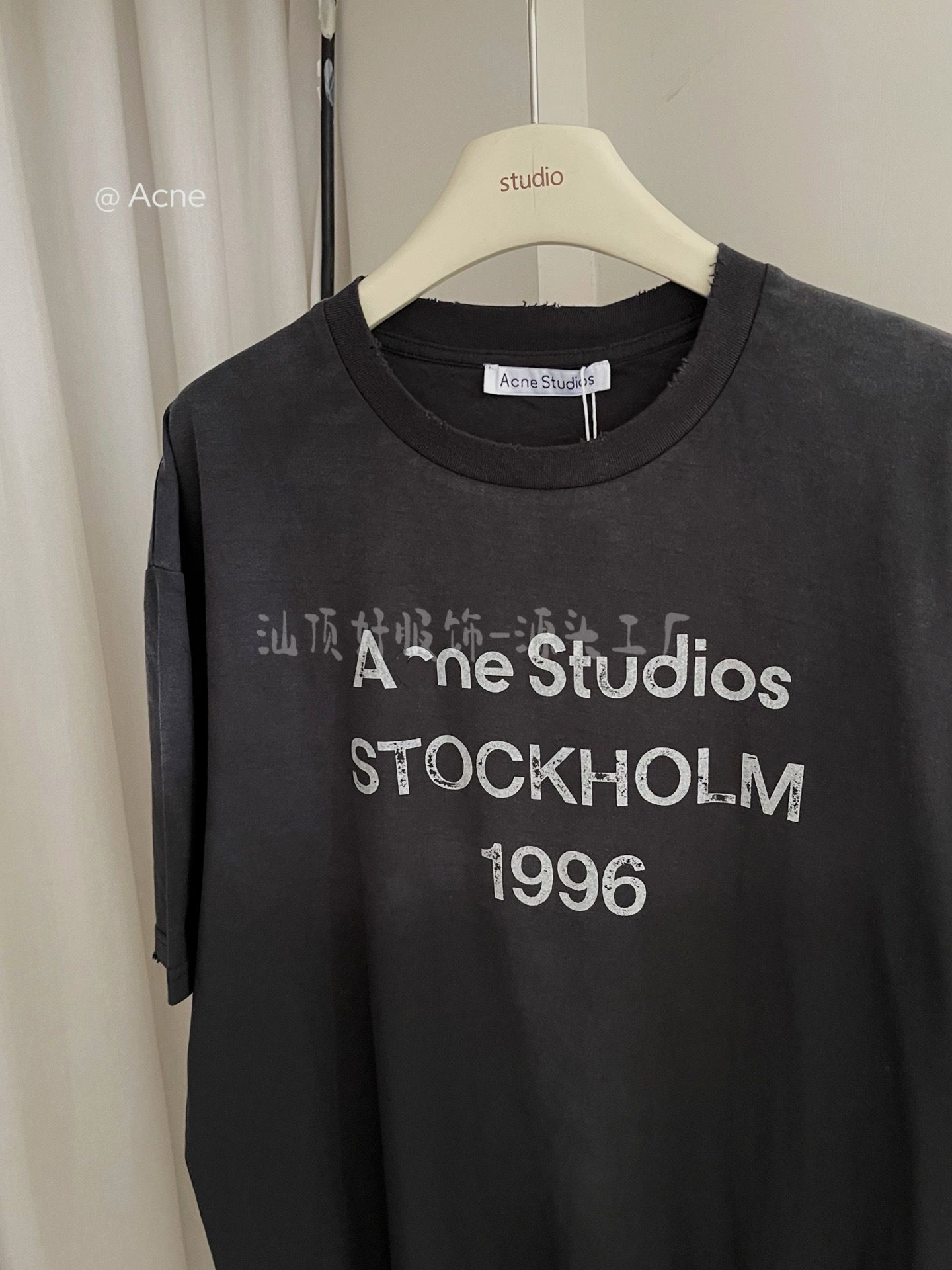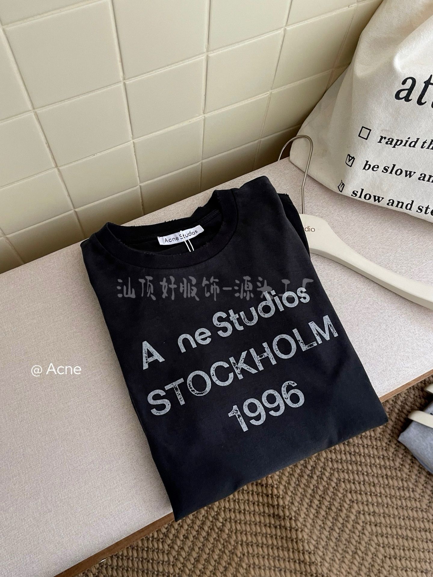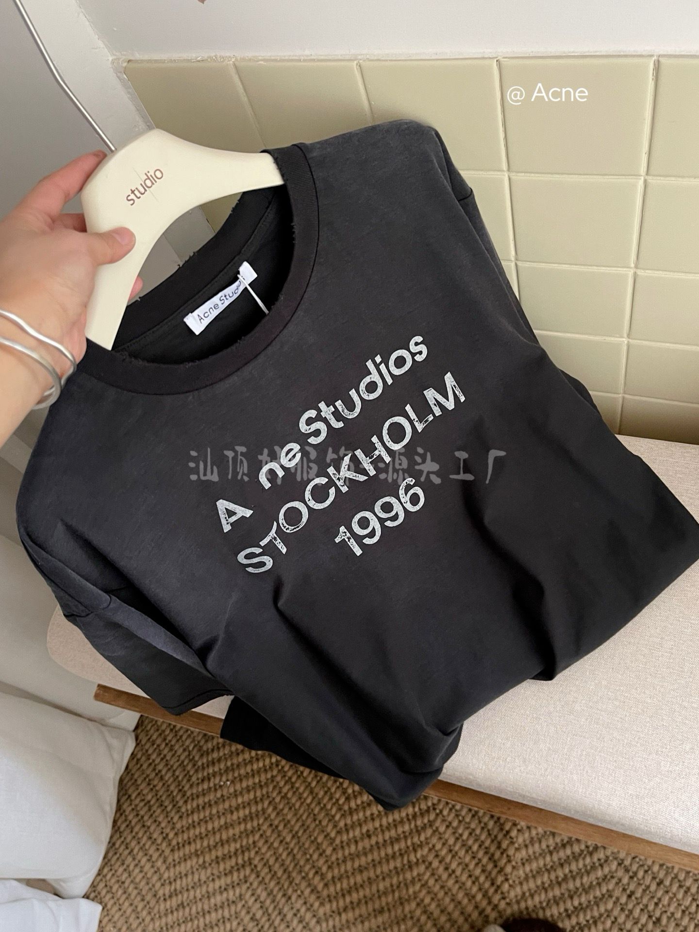 {天井版} 25夏の新型AC復古黒tee半袖1996文字丸襟百合男女モデル
