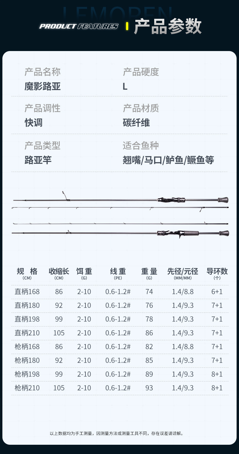 猟師魔影L炭素直柄銃柄路亜竿スズキ口イクラ快調路亜釣竿