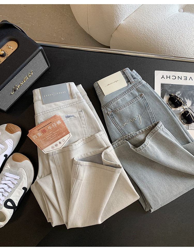 双生灰白牛!经纬双染四面弹窄版阔腿牛仔裤