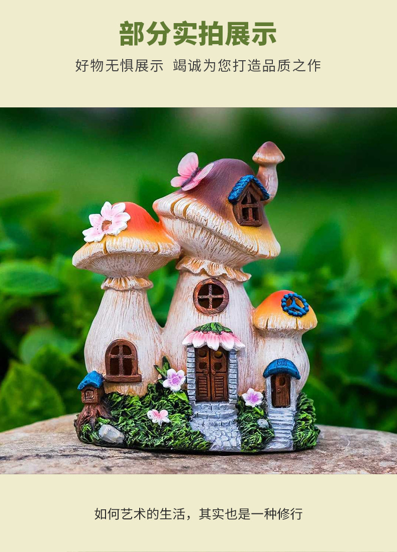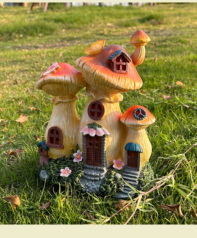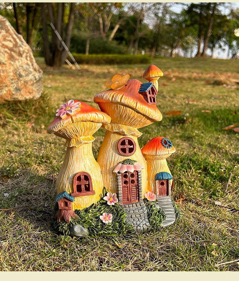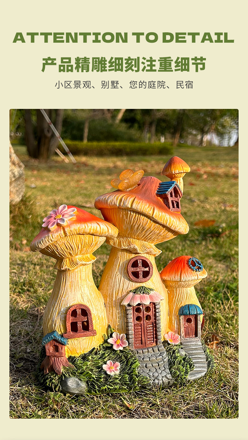 クロスボーダーきのこハウスソーラーライト庭置物ナイトライト屋外ガーデン装飾樹脂工芸品temu