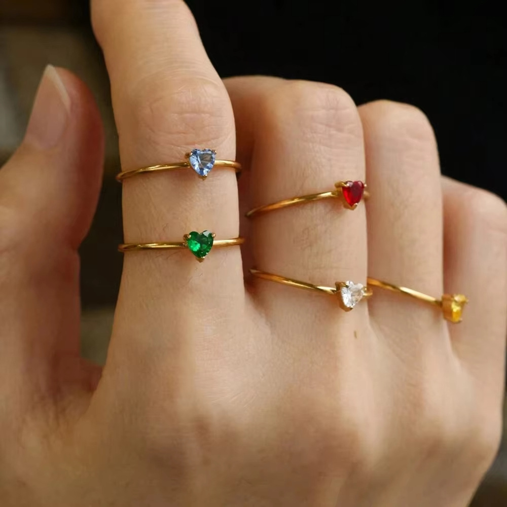 熱売中 超微細ジルコン誕生石リング チタン鋼18Kメッキ オープンタイプ 調整可能 ゴールド シンプル 星座