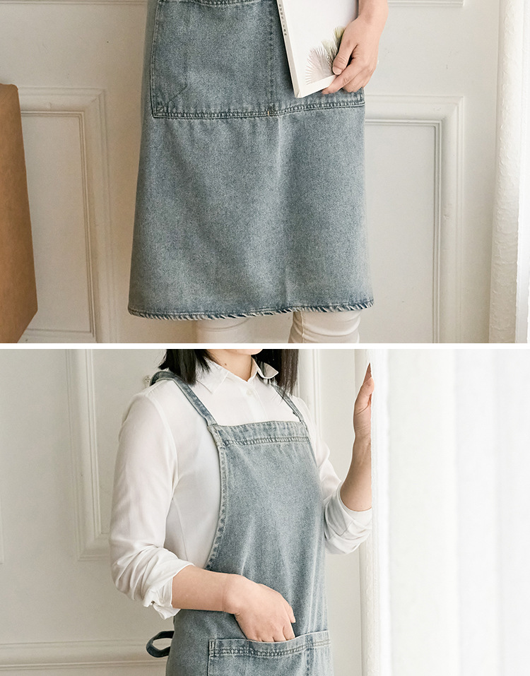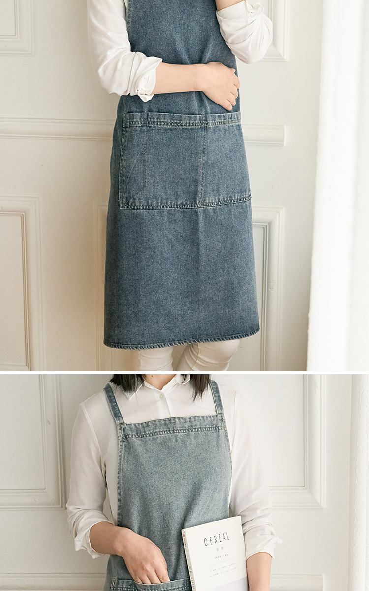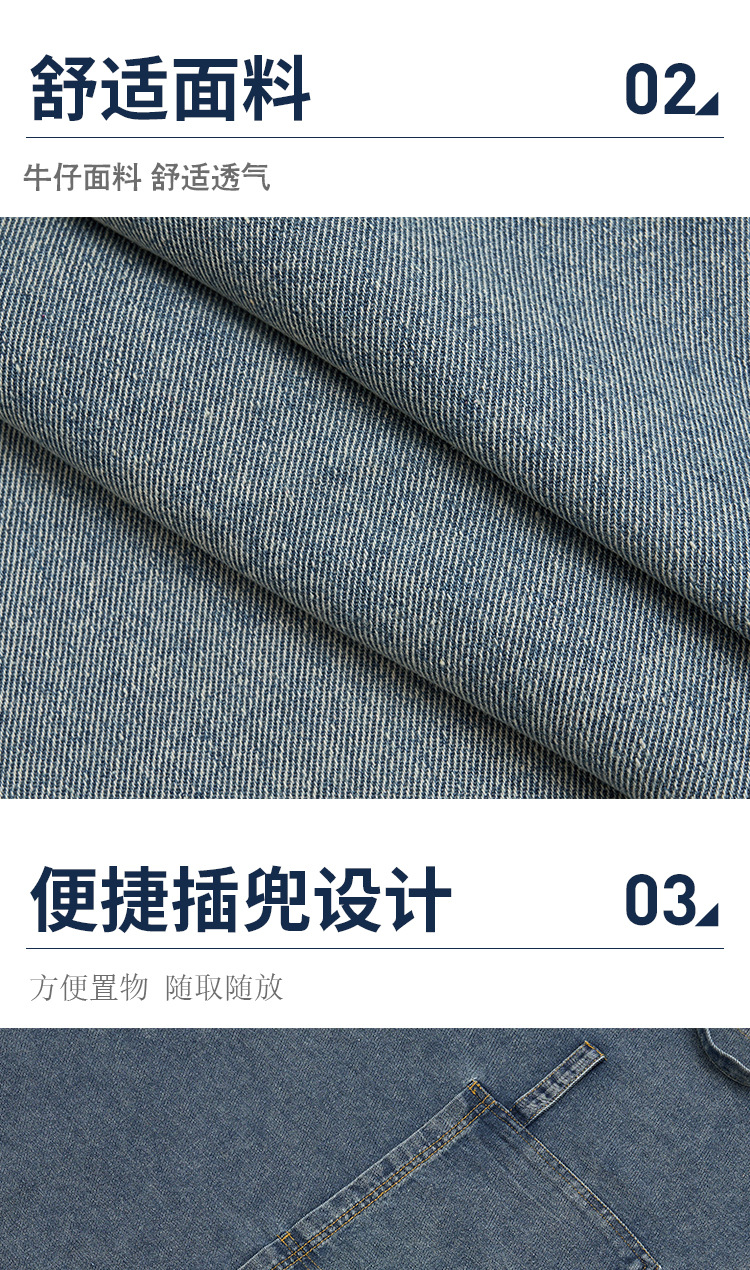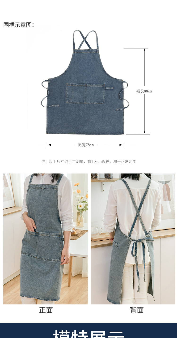 デニムのエプロンの台所の家庭用和式の工装のネイルの絵のコーヒーメーカーの仕事の男女は腰のロゴを囲んで印字します。