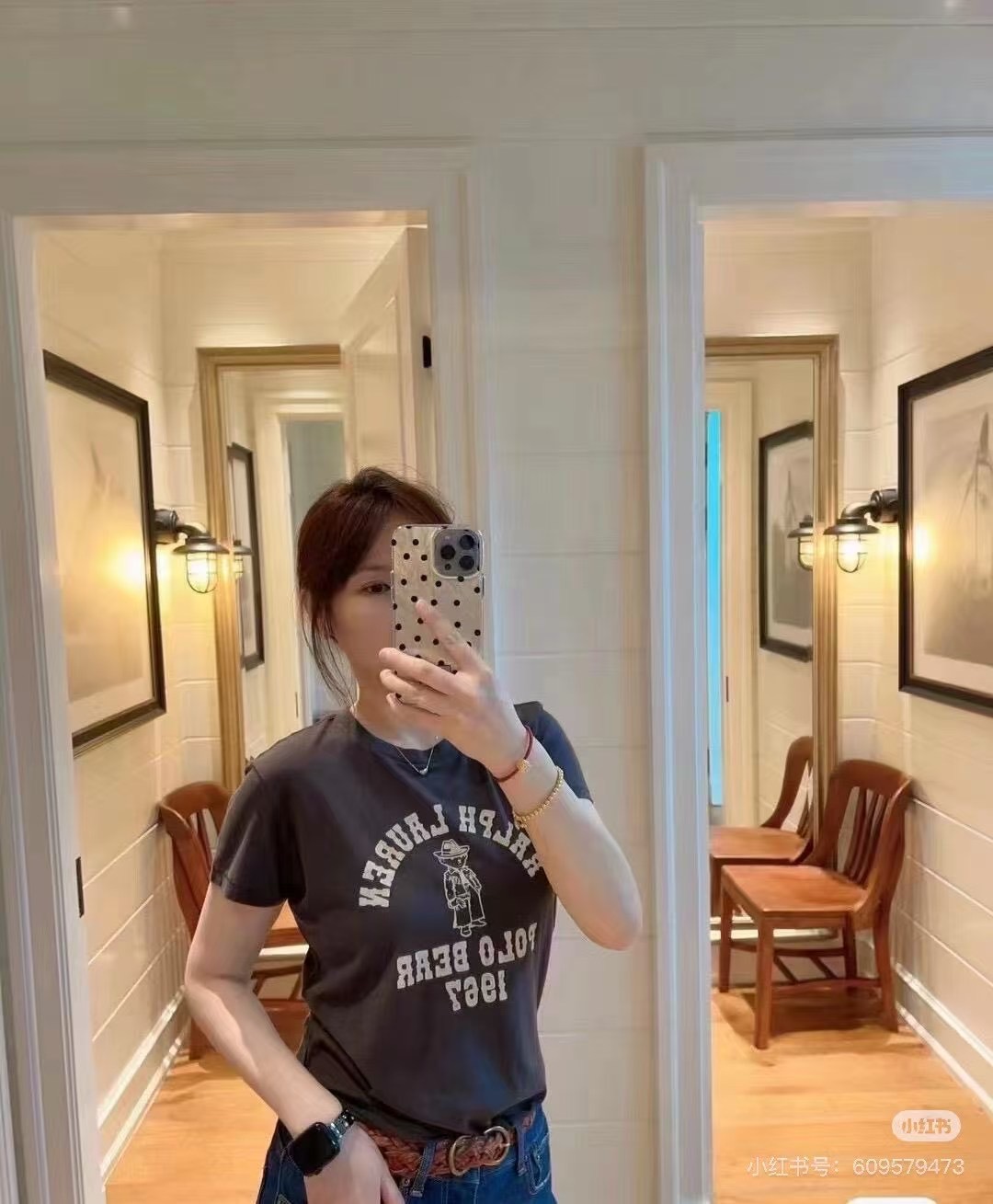 2025RLベアレタープリントスリムフィット半袖Tシャツレディースカジュアル万能快適コットン素材着痩せベアプリント
