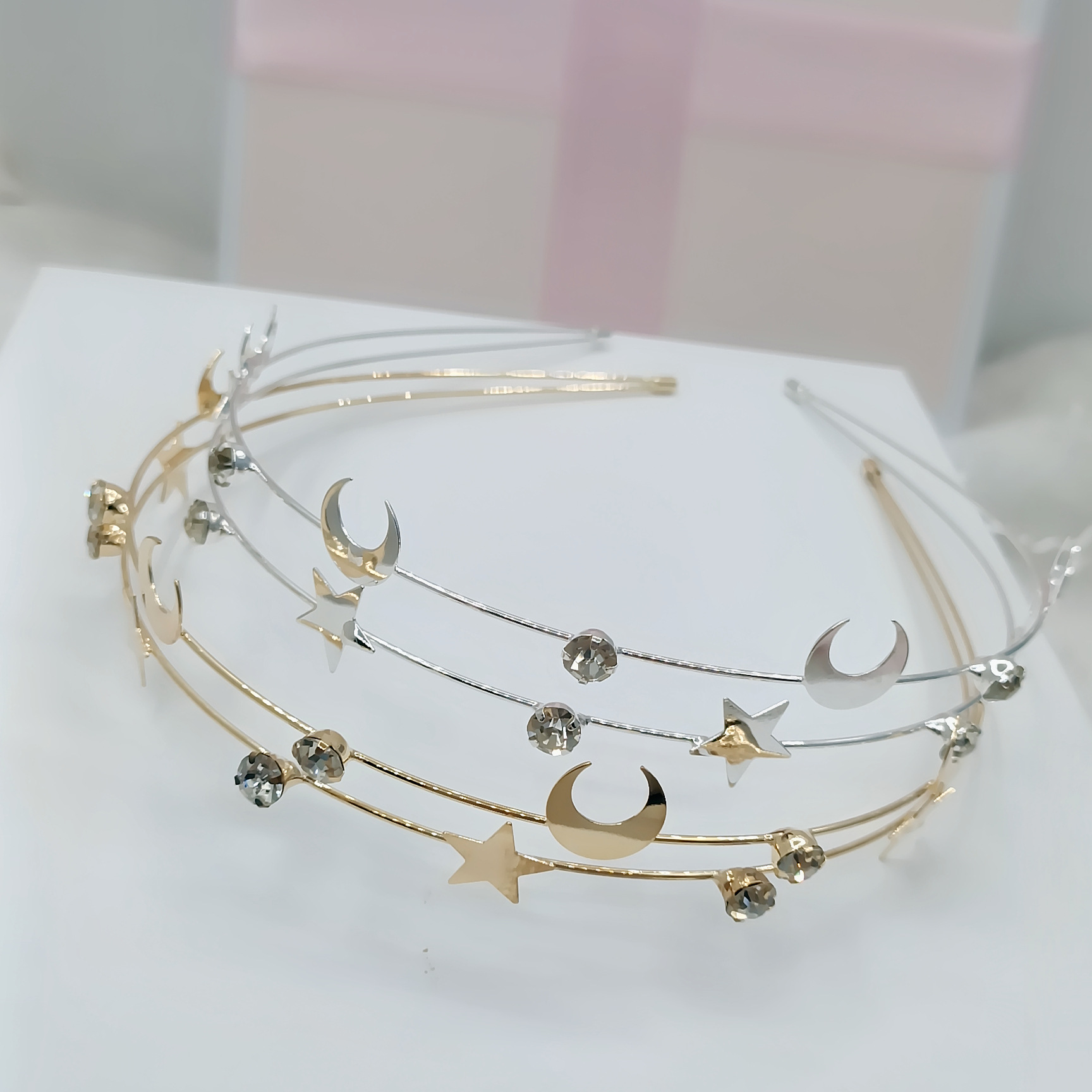 新しい韓国の金属の星空のカチューシャの前髪は星の月のドリルの合金のヘアピンのネットの赤いファッションの装飾品を掛けます。