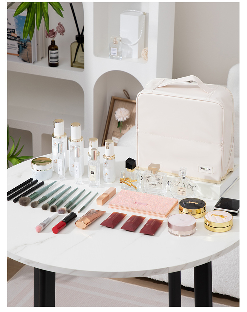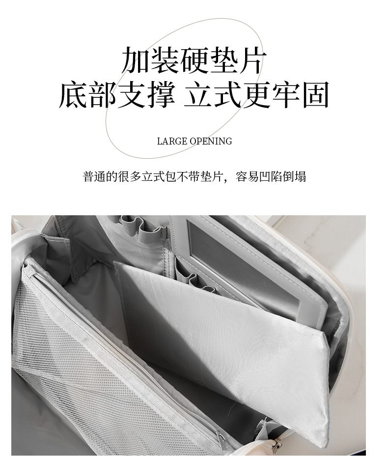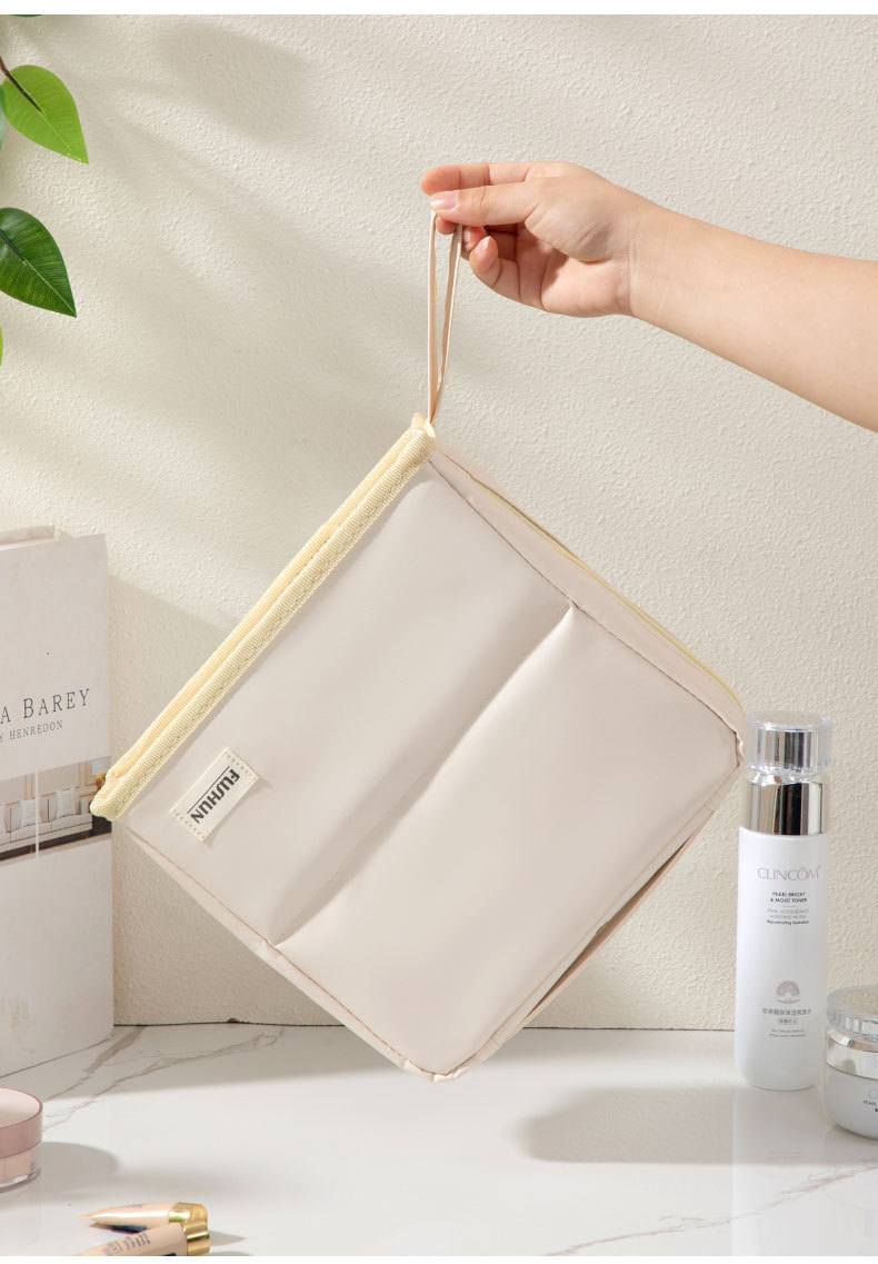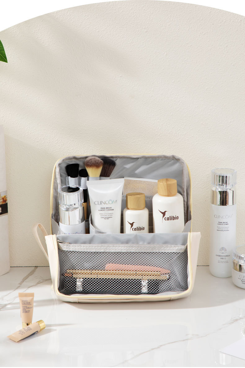 クリームホワイトPUスタンドアップ化粧品バッグ