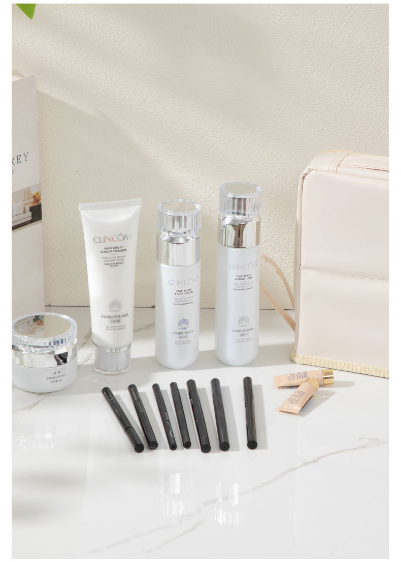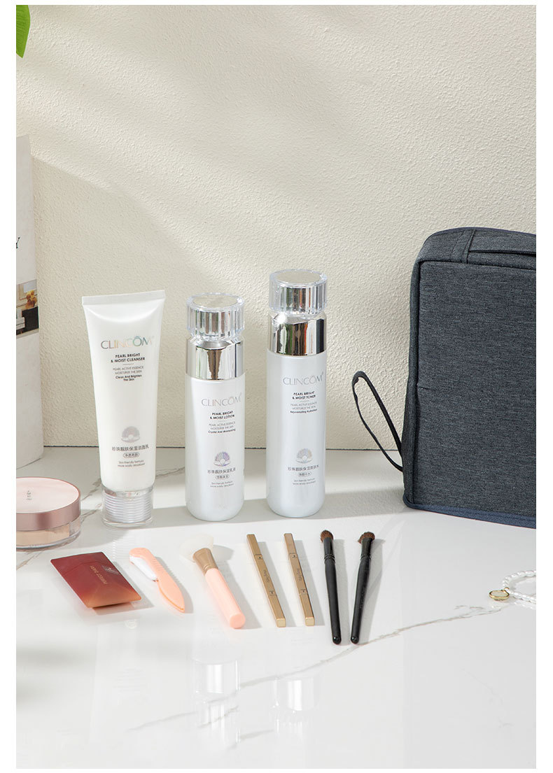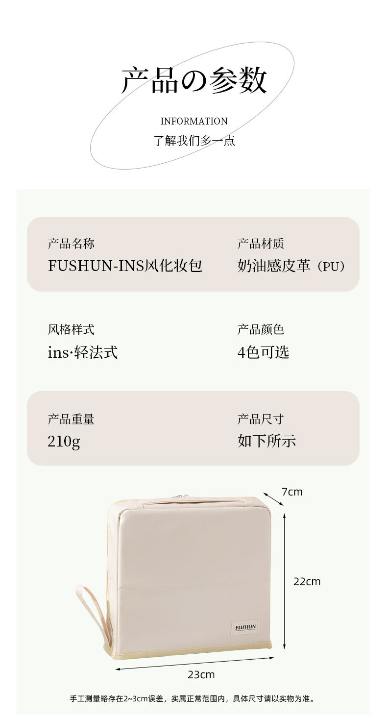 クリームホワイトPUスタンドアップ化粧品バッグ