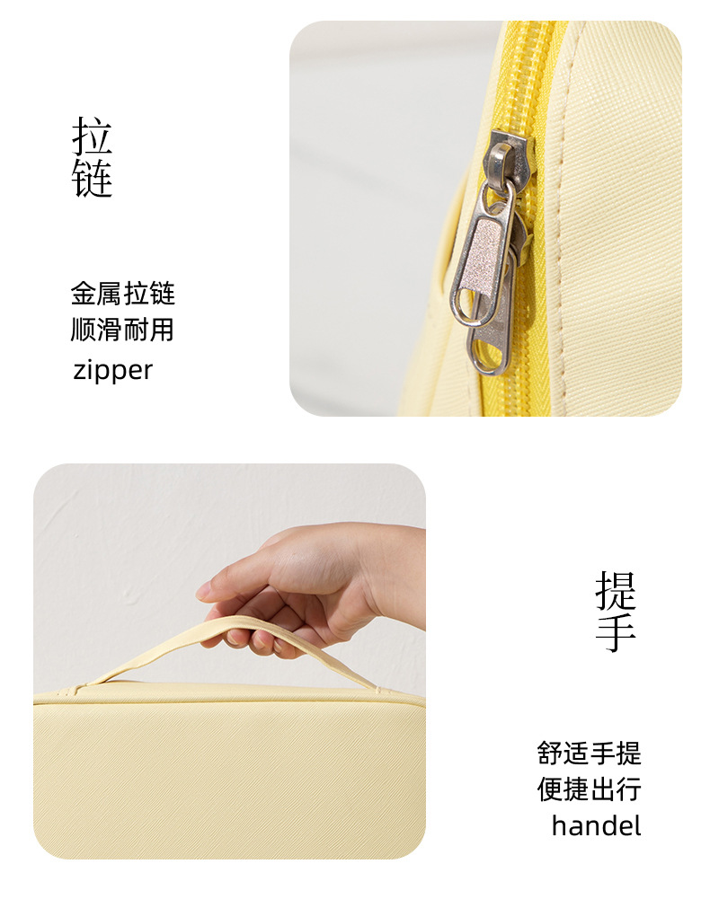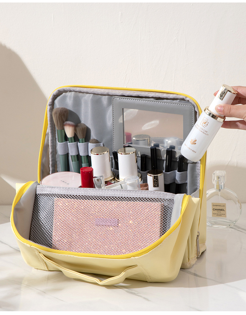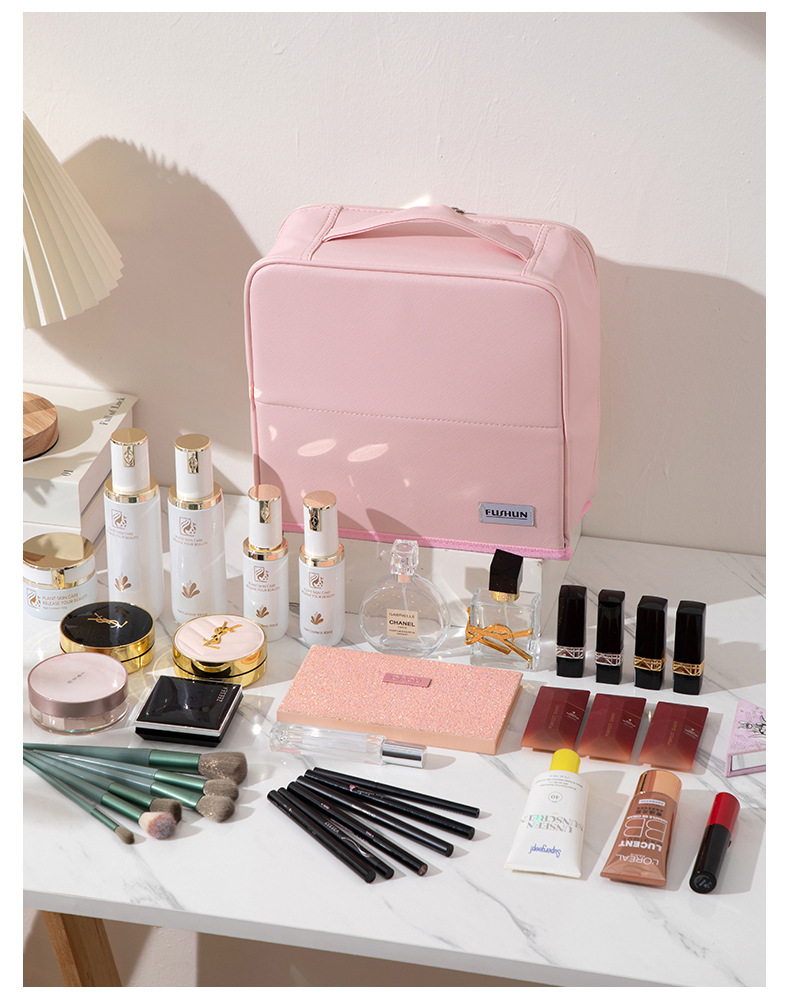 2025年新型PU化粧ポーチ 大容量 ハンドバッグ型 持ち運び便利 旅行必需品 分割式ペンケース 洗面用具入れ