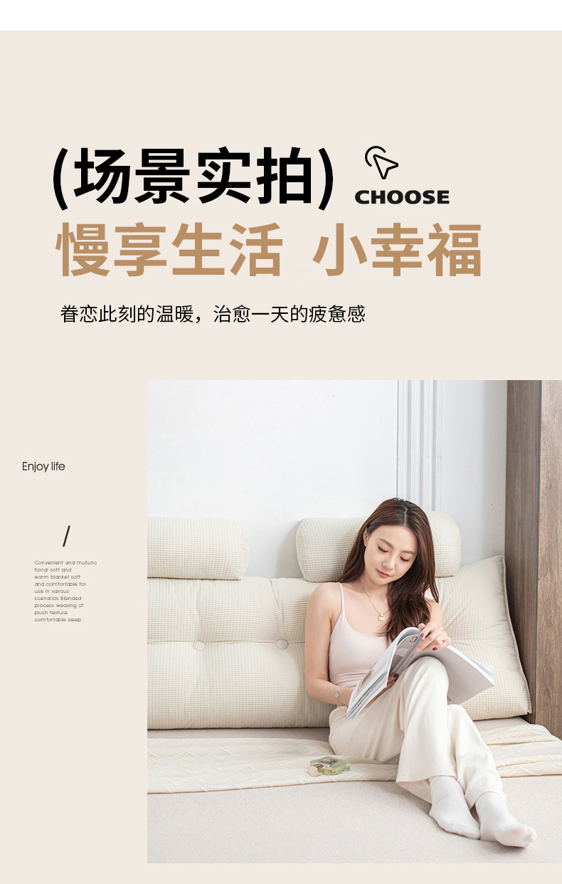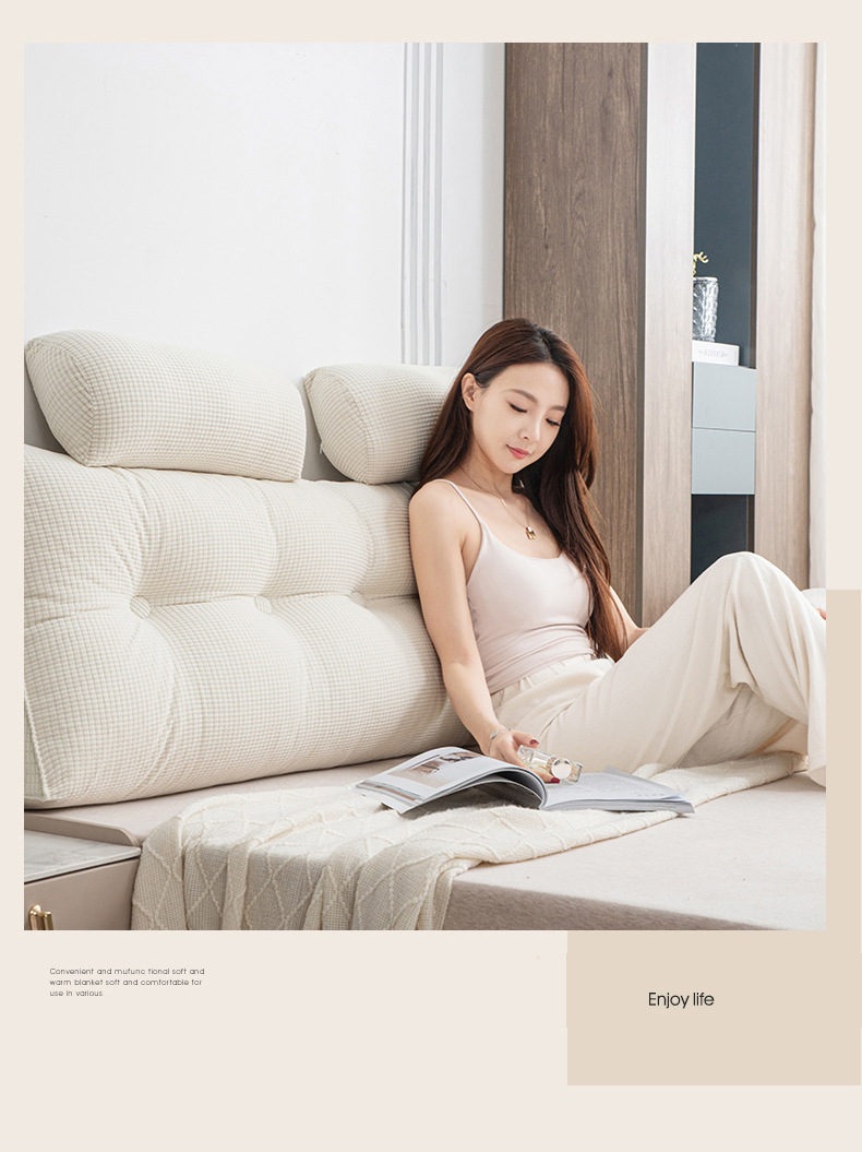 2025 新クリームスタイル寝室のベッドサイドクッション畳ソフトパッケージ腰サポート背もたれソファ出窓半分横たわる枕
