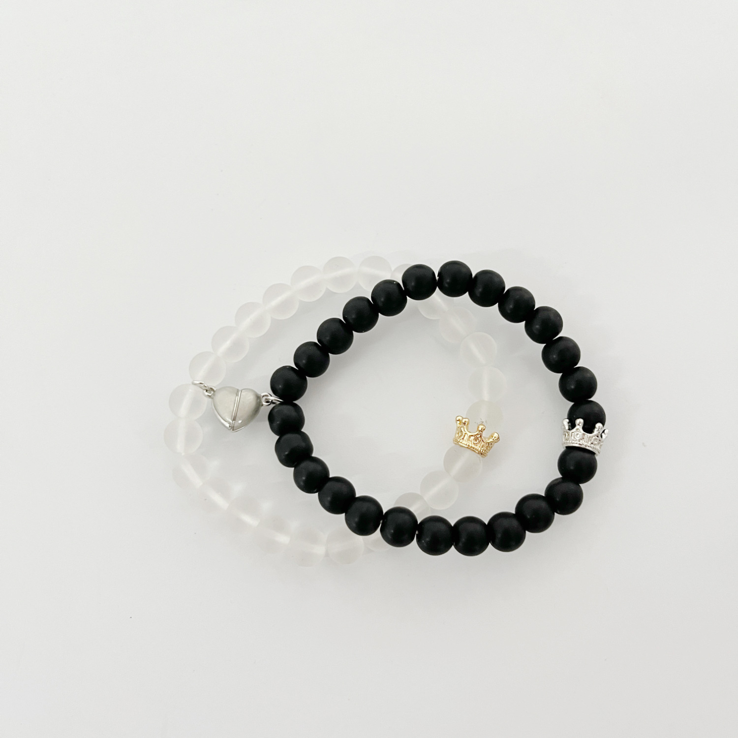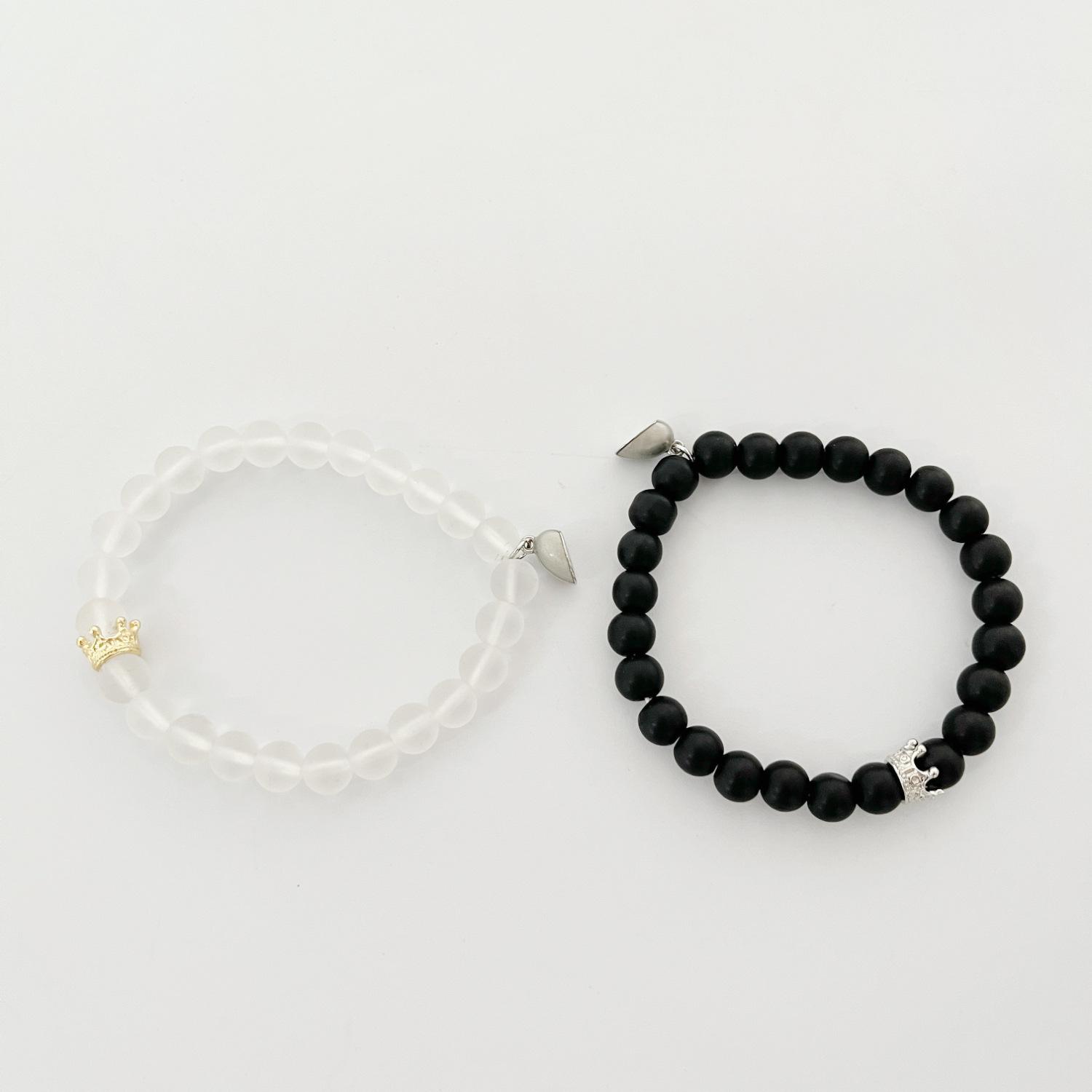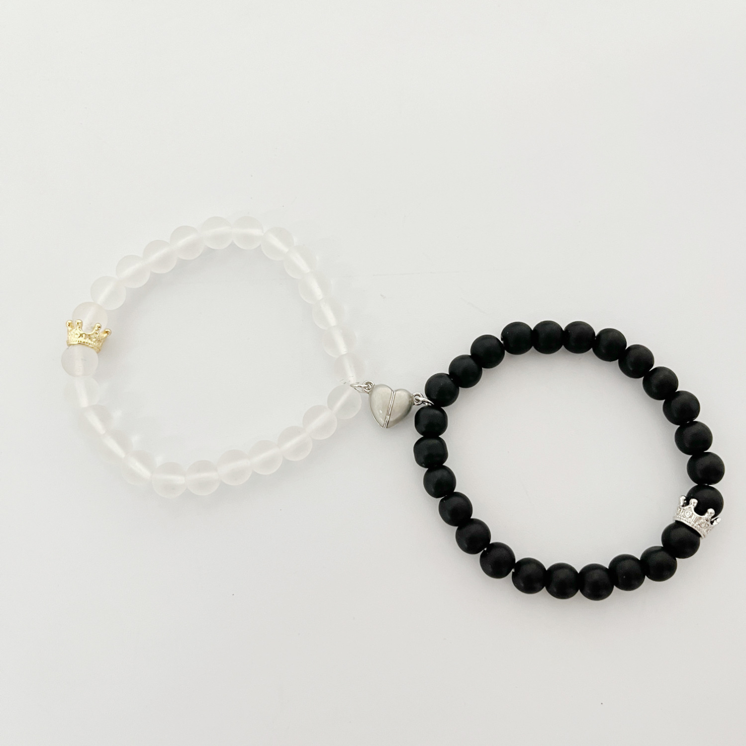 Amazon ウィッシュ ホットセール クラウン ダイヤモンド メンズ レディース ブレスレット ブラック フロスト ホワイト ターコイズ カップル セット ブレスレット