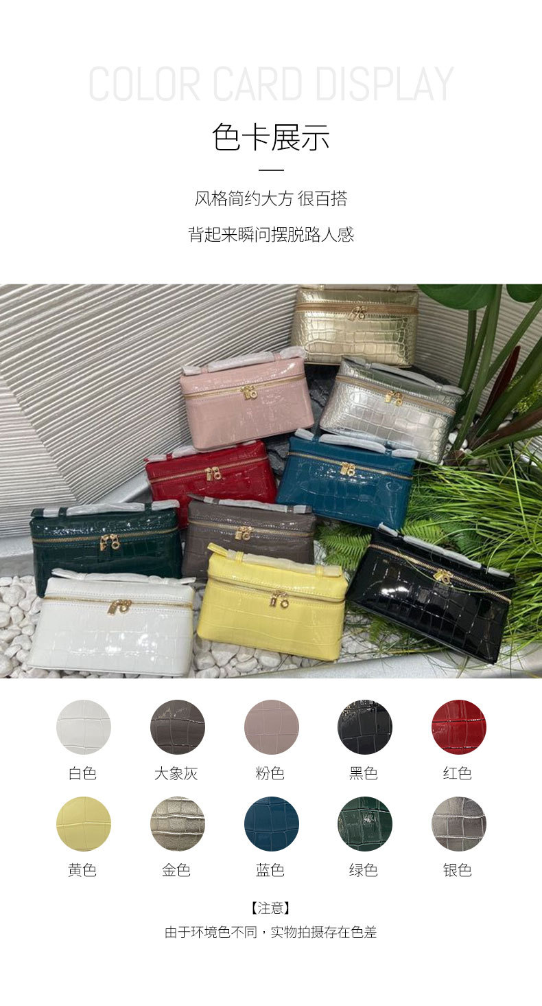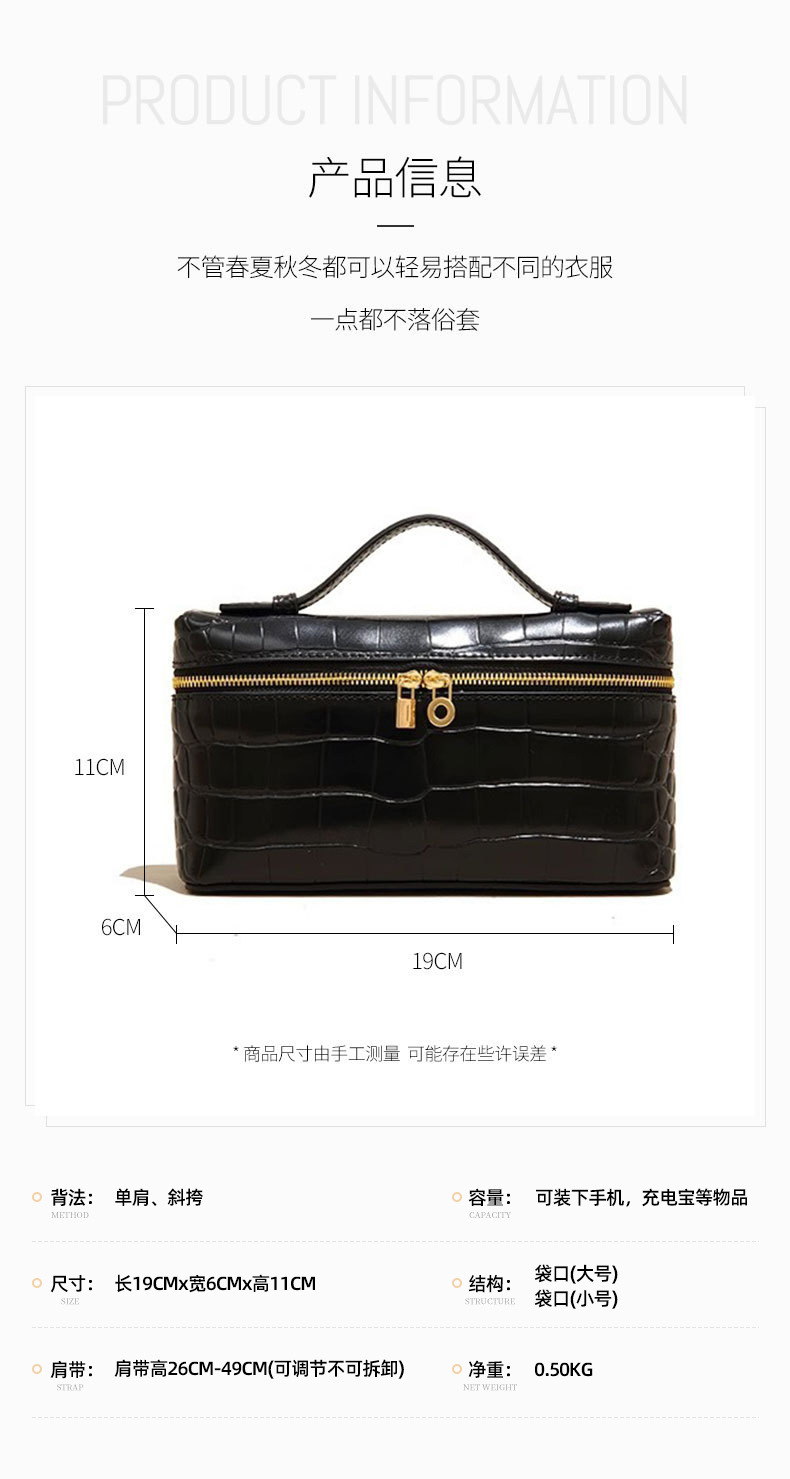 LP19gigi 同型化粧品袋 クロコダイル柄 ボックスバッグ 本革 ランチボックスバッグ ショルダー クロスボディ ポータブル 小さめ スクエアバッグ