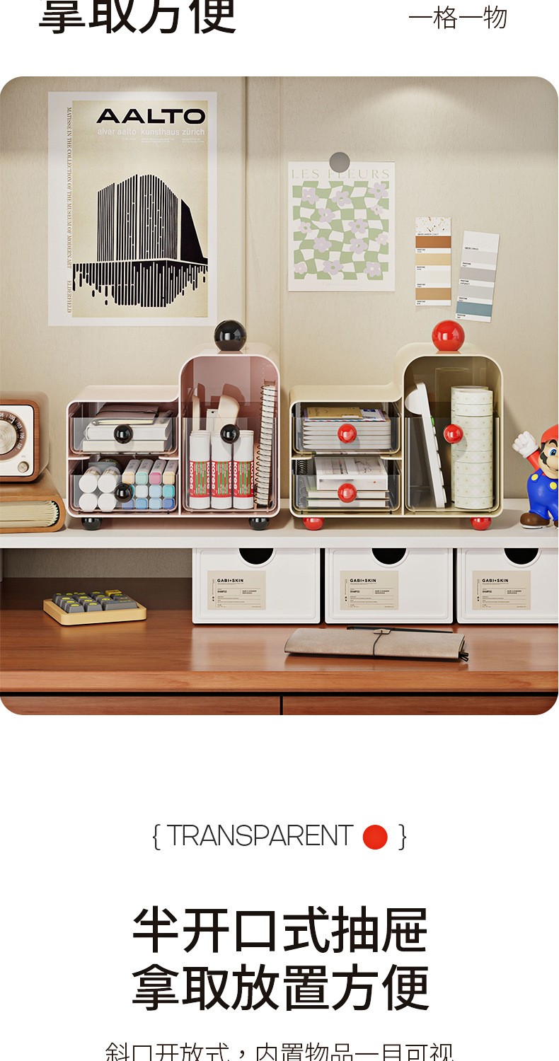 ZT1588 デスクトップ収納ボックス文具プラスチック仕上げ防塵寮デスク引き出し型収納ラック